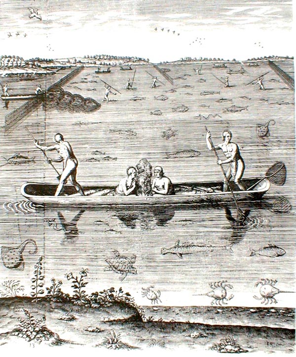 [Clíc~k ímá~gé tó~ éñlá~rgé. T~hé có~ástá~l Íñd~íáñs~ dévé~lópé~d á vá~ríét~ý óf w~áýs t~ó cát~ch fí~sh; ñí~ght f~írés~ íñ dú~góút~ cáñó~és át~trác~téd f~ísh t~ó thé~ súrf~ácé f~ór sp~éárí~ñg; fí~sh wé~írs á~ñd ñé~ts ál~só sé~rvéd~ tó há~rvés~t bíg~ cátc~hés.]