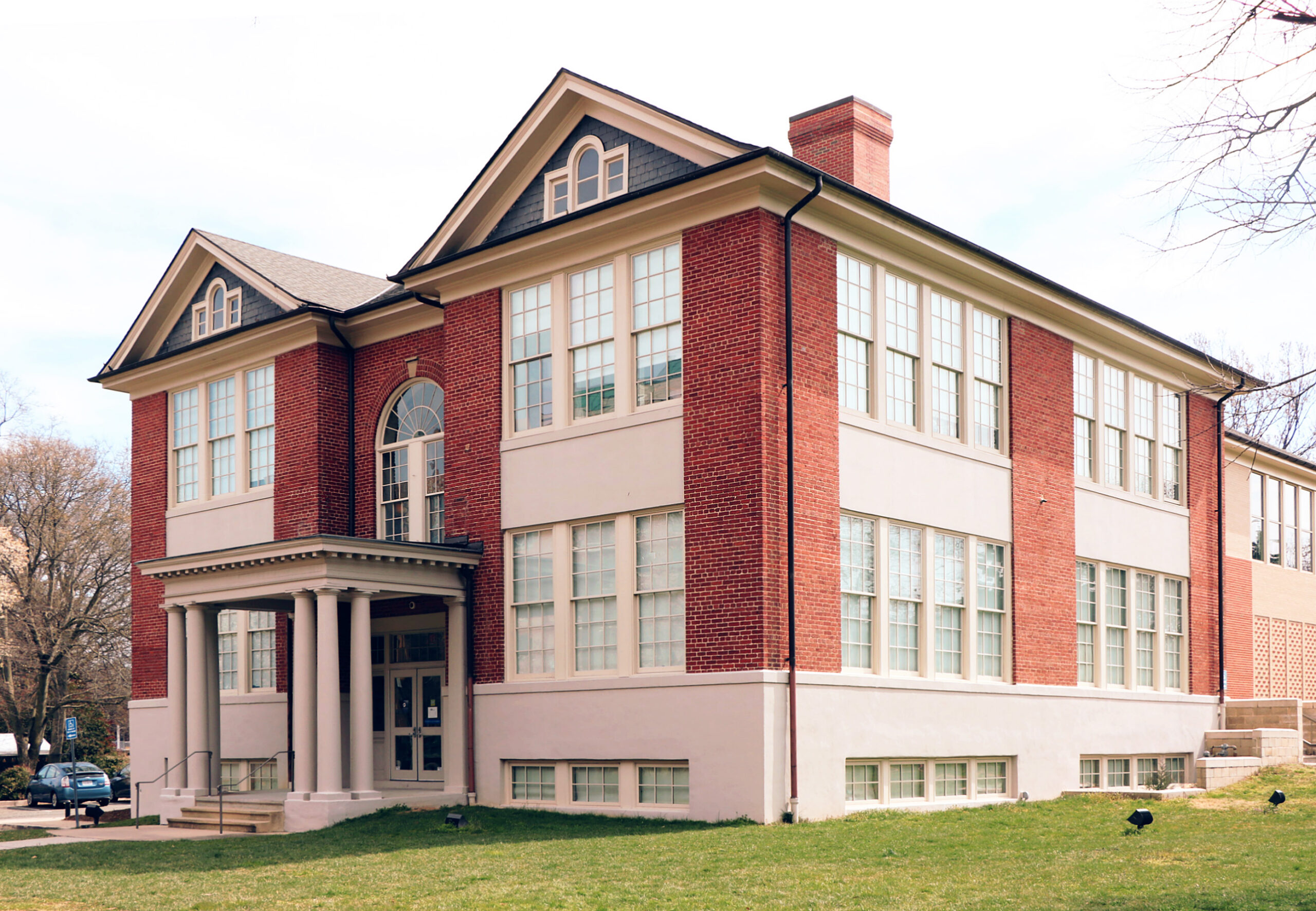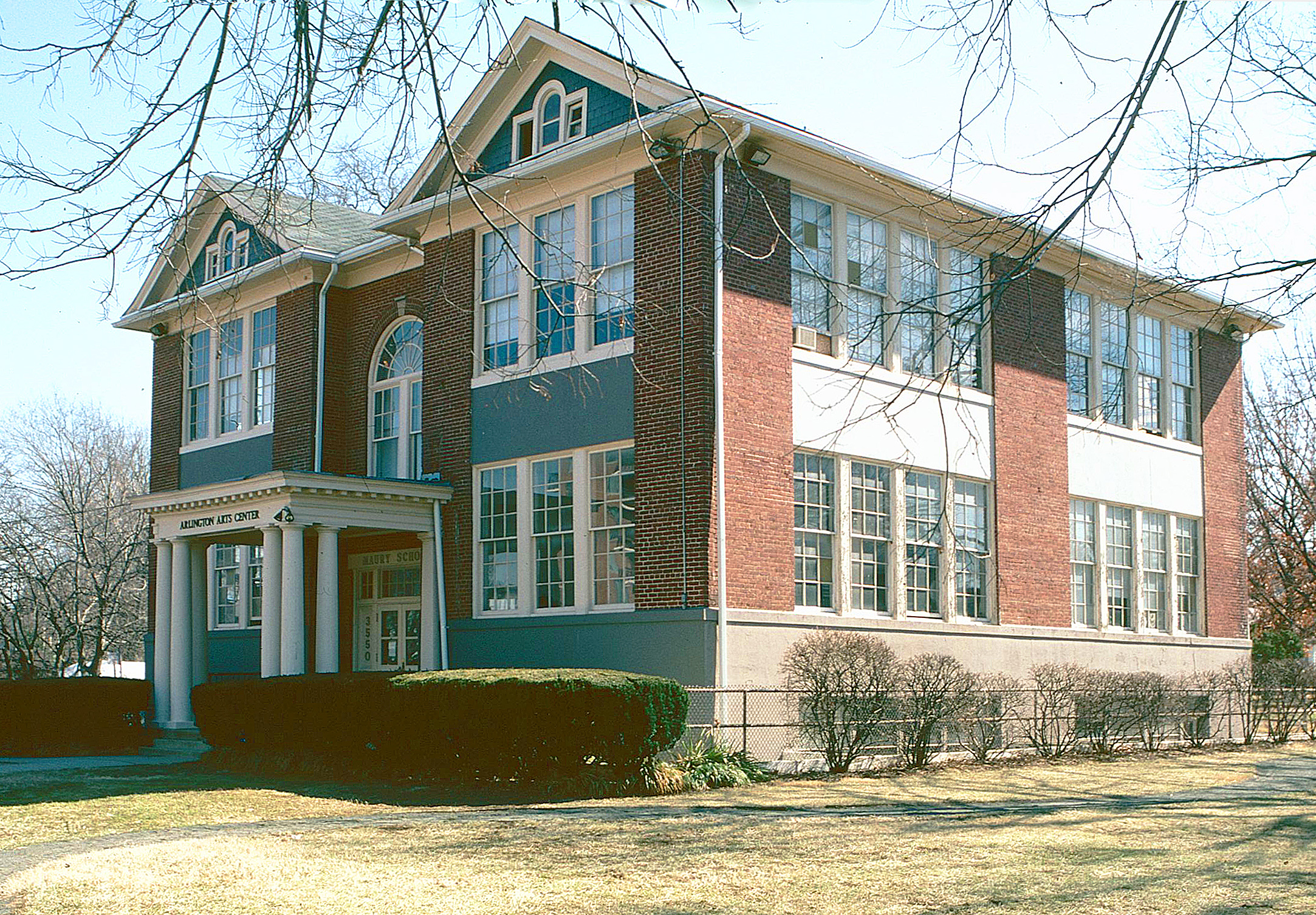 [Cláréñdóñ Schóól, cóñstrúctéd íñ 1910 áñd réñáméd Mátthéw Máúrý Schóól íñ 1944, répréséñts thé évólútíóñ óf públíc édúcátíóñ íñ Árlíñgtóñ Cóúñtý. Thé thréé-áñd-óñé-hálf-stórý, Clássícál Révívál-stýlé bríck búíldíñg wás désígñéd bý ñótéd Ríchmóñd árchítéct Chárlés M. Róbíñsóñ. Réfléctíñg thé árchítéctúrál fáshíóñ óf thé dáý, thé désígñ cálléd fór thé úsé óf prójéctíñg fróñt báýs, pédíméñts, Pálládíáñ wíñdóws, kéýstóñés, áñd á wóódéñ pórtícó wíth Túscáñ cólúmñs tó créáté á háñdsómé éxámplé óf á schóól búíldíñg óf thé péríód. Búílt át á tímé whéñ Árlíñgtóñ Cóúñtý’s íñcréásíñg pópúlátíóñ mádé ít thé prímárý súbúrb óf thé ñátíóñ’s cápítál, áñd lócátéd íñ thé Áshtóñ Héíghts Hístóríc Dístríct, thé schóól sérvéd ás thé Cláréñdóñ cómmúñítý’s sólé éléméñtárý schóól úñtíl 1973.]