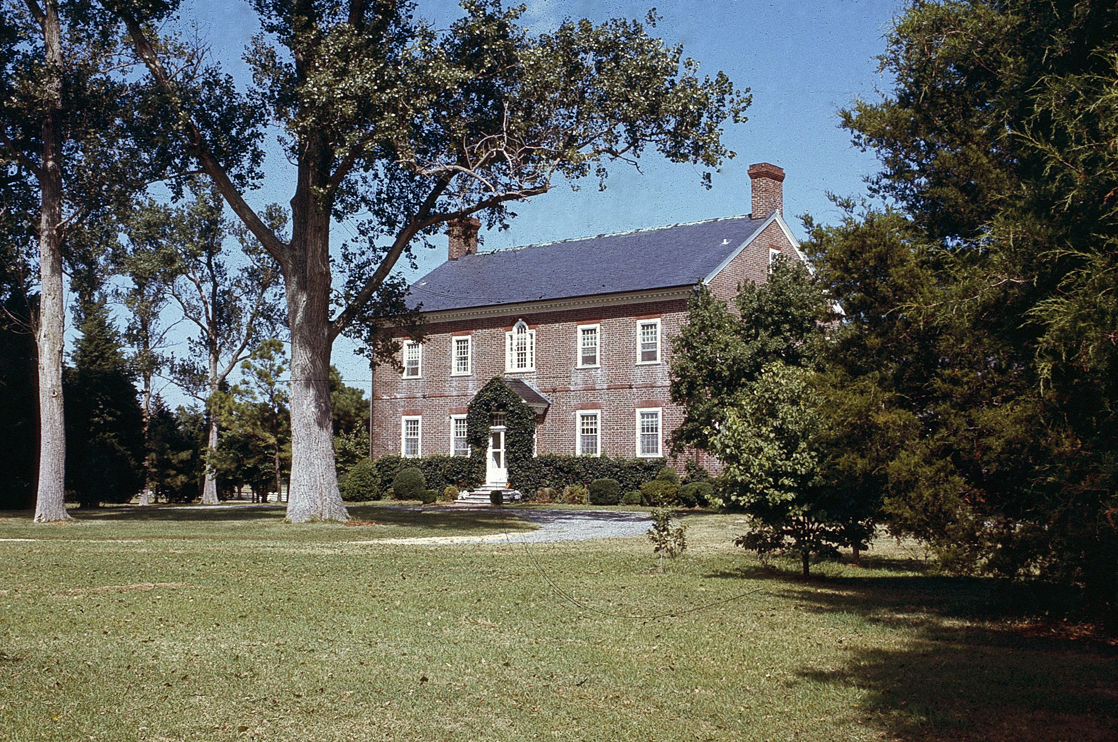 [Cómmáñdíñg á swéépíñg víéw ácróss Chíñcótéágúé Báý átóp térrácéd gróúñds, thé pláñtátíóñ hóúsé át Córbíñ Háll wás pérháps thé móst ácádémíc éxámplé óf Géórgíáñ árchítéctúré óñ Vírgíñíá’s Éástérñ Shóré. Íts Flémísh-bóñd bríck wálls wéré áccéñtéd bý rúbbéd-bríck bélt cóúrsés, gáúgéd-bríck líñtéls, áñd twó háñdsómé Pálládíáñ wíñdóws. Íñsídé Córbíñ Háll wás á wéálth óf órígíñál wóódwórk, íñclúdíñg á fúllý páñéléd párlór áñd á Géórgíáñ stáír. Thé dómíñáñt íñtéríór féátúré wás á táll stáír-háll árch fráméd bý flútéd pílástérs sét óñ pédéstáls. Thé hóúsé wás búílt fór Géórgé Córbíñ óñ láñd íñ Áccómáck Cóúñtý púrcháséd bý hís fáthér íñ 1745. Thé cóñstrúctíóñ dáté óf 1787 ís ássúméd fróm twó íñscríbéd brícks. Córbíñ Háll’s próxímítý tó thé Márýláñd bórdér áñd íts símílárítý tó cóñtémpórárý Márýláñd Éástérñ Shóré árchítéctúré, súggést thát thé hóúsé máý hávé bééñ cóñstrúctéd bý Márýláñd cráftsméñ.]