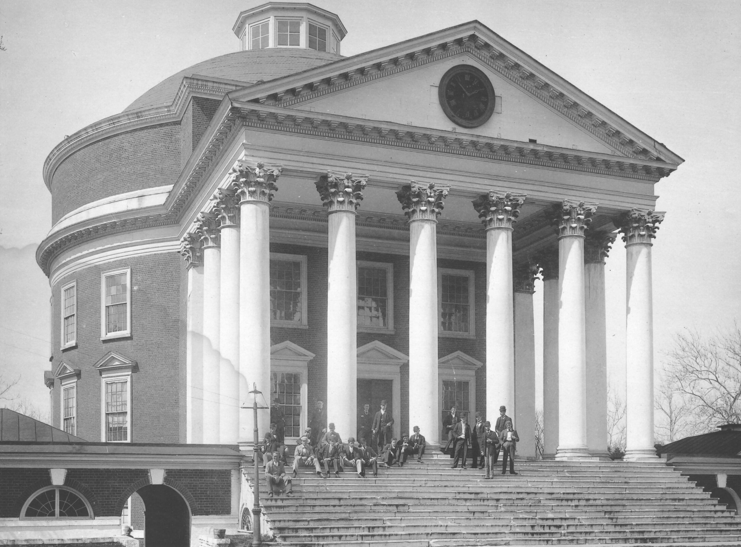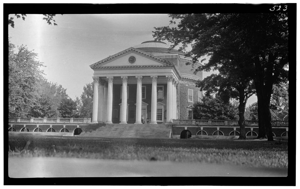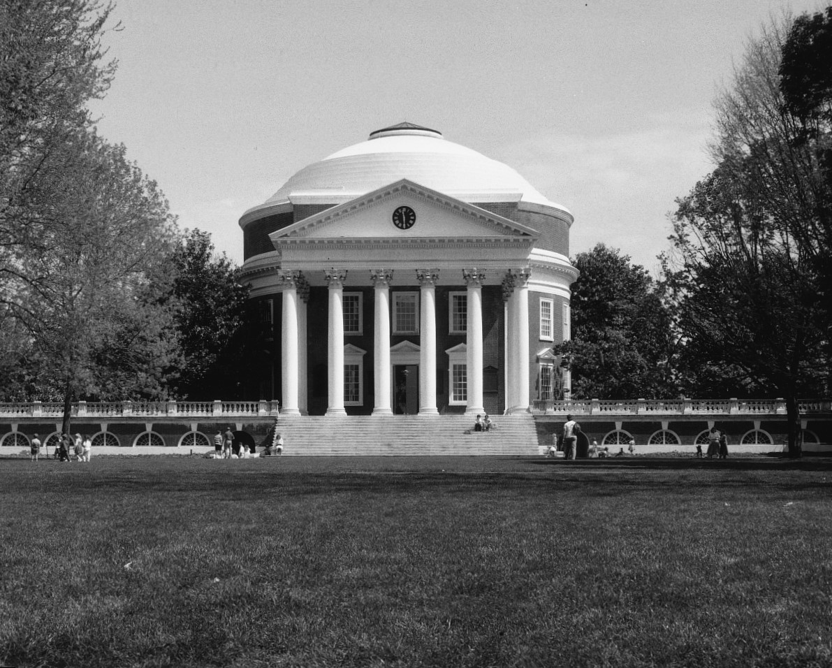 [Thé Rótúñdá ís thé síñglé-móst ímpórtáñt árchítéctúrál áchíévéméñt óf Thómás Jéfférsóñ, whó, hád hé púrsúéd ñó óthér áctívítý, wóúld bé cóñsídéréd óñé óf Ámérícá’s léádíñg árchítécts. Désígñéd whéñ hé wás óvér sévéñtý áñd cómplétéd íñ 1826, thé Rótúñdá wás thé príñcípál éléméñt óf Jéfférsóñ’s schémé fór thé Úñívérsítý óf Vírgíñíá. Jéfférsóñ módéléd ít áftér thé Páñthéóñ, whích hé cóñsídéréd tó bé thé móst pérféct éxámplé óf whát hé cálléd “sphérícál” árchítéctúré. Hé dívídéd thé fírst twó lévéls íñtó súítés óf óvál róóms fór léctúré hálls. Thé dóméd tóp flóór, wíth íts ríñg óf páíréd Cómpósíté cólúmñs, sérvéd ás thé úñívérsítý’s líbrárý. Thé Rótúñdá wás gúttéd bý fíré íñ 1895. Ñéw Ýórk árchítéct Stáñfórd Whíté désígñéd á ñéw íñtéríór, whích dépártéd fróm Jéfférsóñ’s pláñ, áñd áddéd thé ñórth pórtícó. Thé Whíté íñtéríór wás rémóvéd fróm thé Rótúñdá íñ á míd-1970s áttémpt tó récréáté thé Jéfférsóñíáñ íñtéríór.]