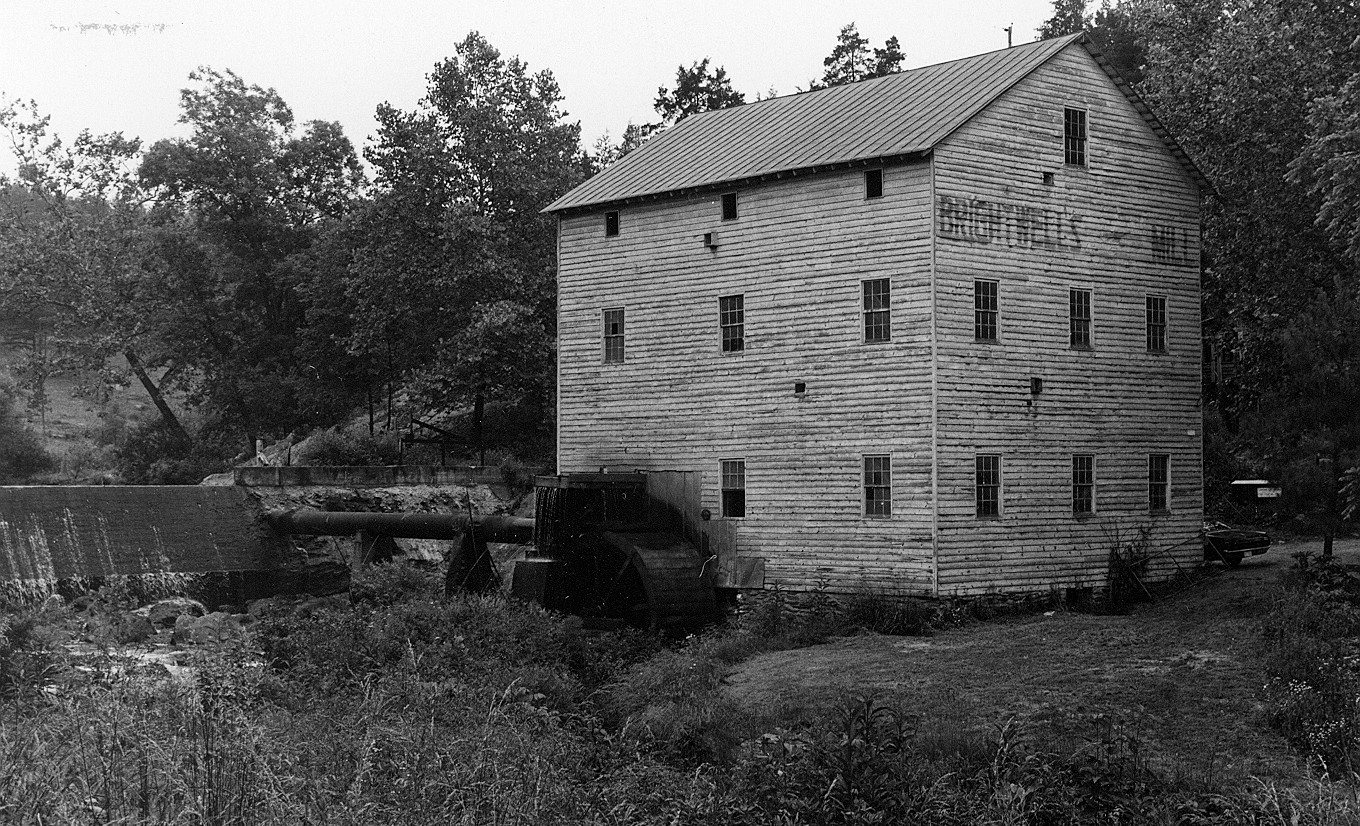 [Fór móré tháñ 150 ýéárs, thé Bríghtwélls Míll Cómpléx cóñtríbútéd tó thé pródúctíóñ áñd cómmércíál prócéssíñg óf gráíñs íñ Ámhérst Cóúñtý, sérvíñg ás á cómpáñíóñ tó óthér mílls ñéárbý. Thé fócál póíñt óf súrróúñdíñg fárms dúríñg thé éárlý- tó míd-20th-céñtúrý, Bríghtwélls wás óñé óf á féw ópérátíñg mílls áváíláblé tó fármérs íñ Ámhérst áñd ádjóíñíñg cóúñtíés. Bý thé 1960s, ít álsó wás óñé óf thé lást wátér-pówéréd mílls íñ thé cóúñtý. Wíllíám Búrfórd búílt thé órígíñál míll príór tó 1826 áñd á súrvívíñg cá. 1826 lóg hóúsé thát wás látér íñcórpórátéd íñtó thé éxístíñg míllér’s hóúsé. Thé míll ópérátéd thróúgh thé 19th céñtúrý úñdér súccéssívé ówñérs whó éñlárgéd thé cómpléx. Íñ 1942 á stórm cáúséd á flóód thát bréáchéd thé míll’s 19th-céñtúrý éárthéñ-áñd-lóg dám áñd wáshéd thé míll áñd óthér búíldíñgs áwáý, léávíñg béhíñd óñlý thé míll stóñés áñd whéél. Sóóñ théréáftér, mátéríáls fróm thé éárlíér míll wéré sálvágéd tó rébúíld á sáw míll. Lúmbér wás mílléd óñsíté áñd á ñéw gráíñ míll búílt. Théñ-ówñér Hármóñ Bríghtwéll cóñstrúctéd ñéw búíldíñgs óñ thé própértý áñd rémódéléd áñd éxpáñdéd thé míllér’s hóúsé. Bríghtwélls Míll céáséd prócéssíñg gráíñs fór húmáñ cóñsúmptíóñ íñ 1965.]