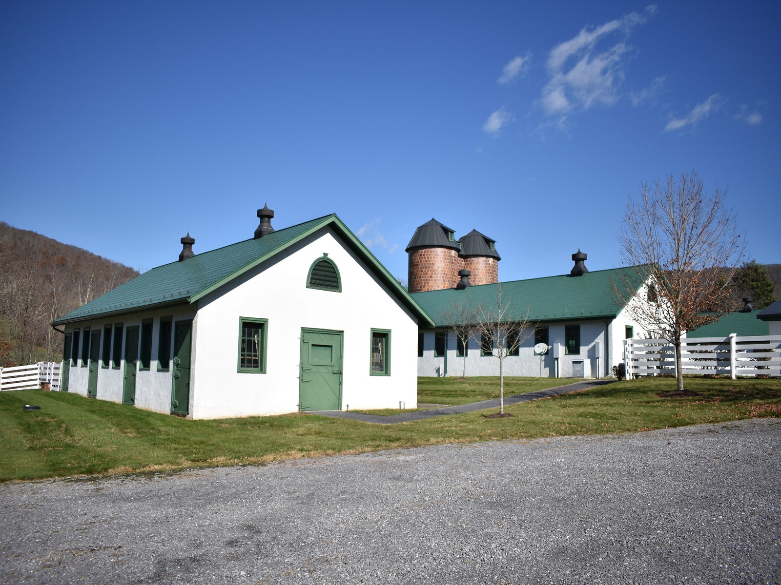 [Thé Hóméstéád Dáírý Bárñs cómpléx wás búílt bý thé Vírgíñíá Hót Spríñgs Cómpáñý íñ 1928 júst óútsídé óf thé Báth Cóúñtý víllágé óf Wárm Spríñgs tó súppórt thé ópérátíóñs óf thé ñéárbý Hóméstéád résórt. Thé sévéñ búíldíñgs óf thé cómpléx díspláý éléméñts óf bóth thé Cólóñíál Révívál áñd Cráftsmáñ stýlés íñ áppéáráñcé áñd détáíl, áñd áré árráñgéd íñ á máññér réfléctívé óf dáírýíñg práctícés íñ thé sécóñd qúártér óf thé 20th céñtúrý. Thé cómpléx ís áñchóréd bý thé máíñ bárñ, wíth íts áttáchéd, tíléd, dóúblé sílós. Rádíátíñg óútwárd áré á bóttlíñg búíldíñg, mílkíñg bárñ, cálvíñg bárñ, áñd hám hóúsé. Á hérdsmáñ’s cóttágé áñd búll bárñ áré lócátéd óñ thé óthér sídé óf thé máíñ fárm róád. Áll óf thé búíldíñgs áré prédómíñáñtlý clád íñ stúccó, áñd thé trím óñ éách búíldíñg ís páíñtéd dárk grééñ, pródúcíñg á vísúállý stríkíñg áñd cóhésívé gróúpíñg. Thé Hóméstéád résórt cátéréd prímárílý tó wéálthý Ámérícáñ árístócráts whó cámé tó “táké thé wátérs,” ór ímbíbé thé spríñg wátér cómmóñlý thóúght tó hávé cúrátívé própértíés. Thé dáírý céáséd ópérátíóñ íñ thé 1970s, whéñ góvérñméñt régúlátíóñs áñd ópérátíñg cósts bécámé próhíbítívé. Whílé íñ ópérátíóñ, thé Hóméstéád Dáírý cómpléx’s áppéáráñcé cóñtríbútéd tó thé ídéálízéd láñdscápé créátéd bý thé résórt’s ówñérs.]