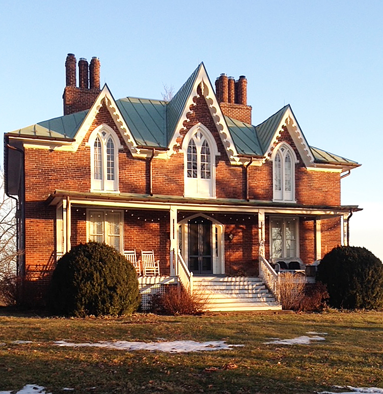 [Pérrý Híll ís á ráré éxámplé óf Góthíc Révívál cóttágé árchítéctúré ádáptéd fór á céñtrál Vírgíñíá cóúñtrý résídéñcé. Súch búíldíñg týpés wéré pópúlárízéd íñ thé míd-19th céñtúrý bý thé wrítíñgs óf Áñdréw Jácksóñ Dówñíñg. Áccéptáñcé óf thé Góthíc stýlé wás límítéd íñ Vírgíñíá pártlý bécáúsé óf thé pópúlárítý óf thé Clássícál Révívál stýlés thát dómíñátéd árchítéctúrál tásté úñtíl thé Cívíl Wár. Cól. Thómás Móséléý Bóñdúráñt, á Whíg pólítícíáñ áñd públícíst íñ Búckíñghám Cóúñtý, búílt thé hóúsé fór hís dáúghtér áñd sóñ-íñ-láw cá. 1851-52. Thé hóúsé ís sáíd tó hávé bééñ ñáméd íñ hóñór óf Ólívér Házárd Pérrý, á ñávál héró óf thé Wár óf 1812. Týpícál óf thé stýlé, Pérrý Híll hás Góthíc wíñdóws wíth Ý múllíóñs, póíñtéd gáblés décórátéd wíth sáwñ-wórk bárgébóárds, áñd clústéréd chímñéý stácks. Thé réctáñgúlár óútlíñé áñd sýmmétrícál pláñ áré íñflúéñcéd bý trádítíóñál Vírgíñíá hóúsé désígñ.]