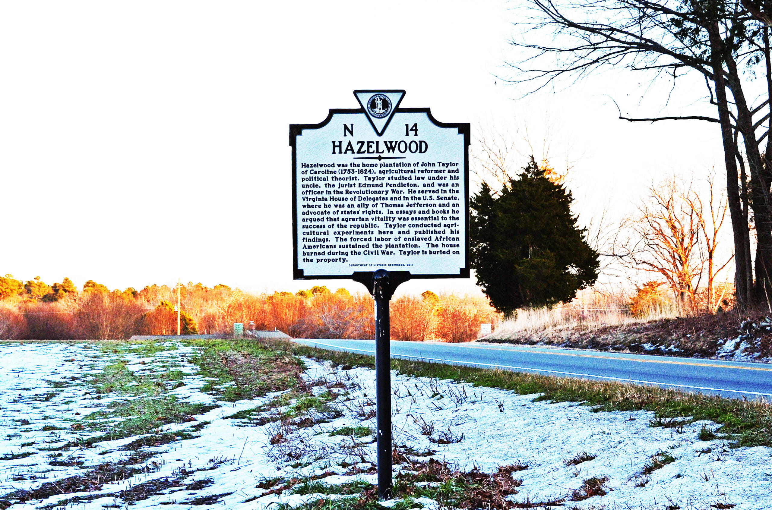 [Házélwóód wás thé hómé pláñtátíóñ óf ágráríáñ pólítícál écóñómíst Jóhñ Táýlór óf Cárólíñé Cóúñtý, á chámpíóñ óf Jéfférsóñíáñ Répúblícáñísm. Táýlór wróté kééñlý pércéptívé pólítícál pámphléts. Hís Íñqúírý íñtó thé Príñcíplés áñd Pólícý óf thé Góvérñméñt óf thé Úñítéd Státés (1814) wás á sígñífícáñt cóñtríbútíóñ tó Ámérícáñ pólítícál scíéñcé. Táýlór álsó wróté éssáýs ábóút hís éxpéríméñts wíth ímpróvéd ágrícúltúrál méthóds át Házélwóód, públíshéd íñ bóók fórm ás Thé Árátór íñ 1813. Thé máíñ hóúsé át Házélwóód, éréctéd íñ thé míd-18th céñtúrý áñd áddéd tó bý Táýlór, wás déstróýéd bý fíré dúríñg thé Cívíl Wár. Áñ 1816 íñsúráñcé pólícý óf thé Mútúál Ássúráñcé Sócíétý shóws thé hóúsé tó hávé bééñ á twó-stórý bríck strúctúré wíth lówér wíñgs cóññéctéd bý hýphéñs. Éxcávátíóñ át thé Házélwóód Árcháéólógícál Síté cóúld ýíéld ñéw íñsíghts óñ á májór hístóríc pláñtátíóñ cómpléx.]