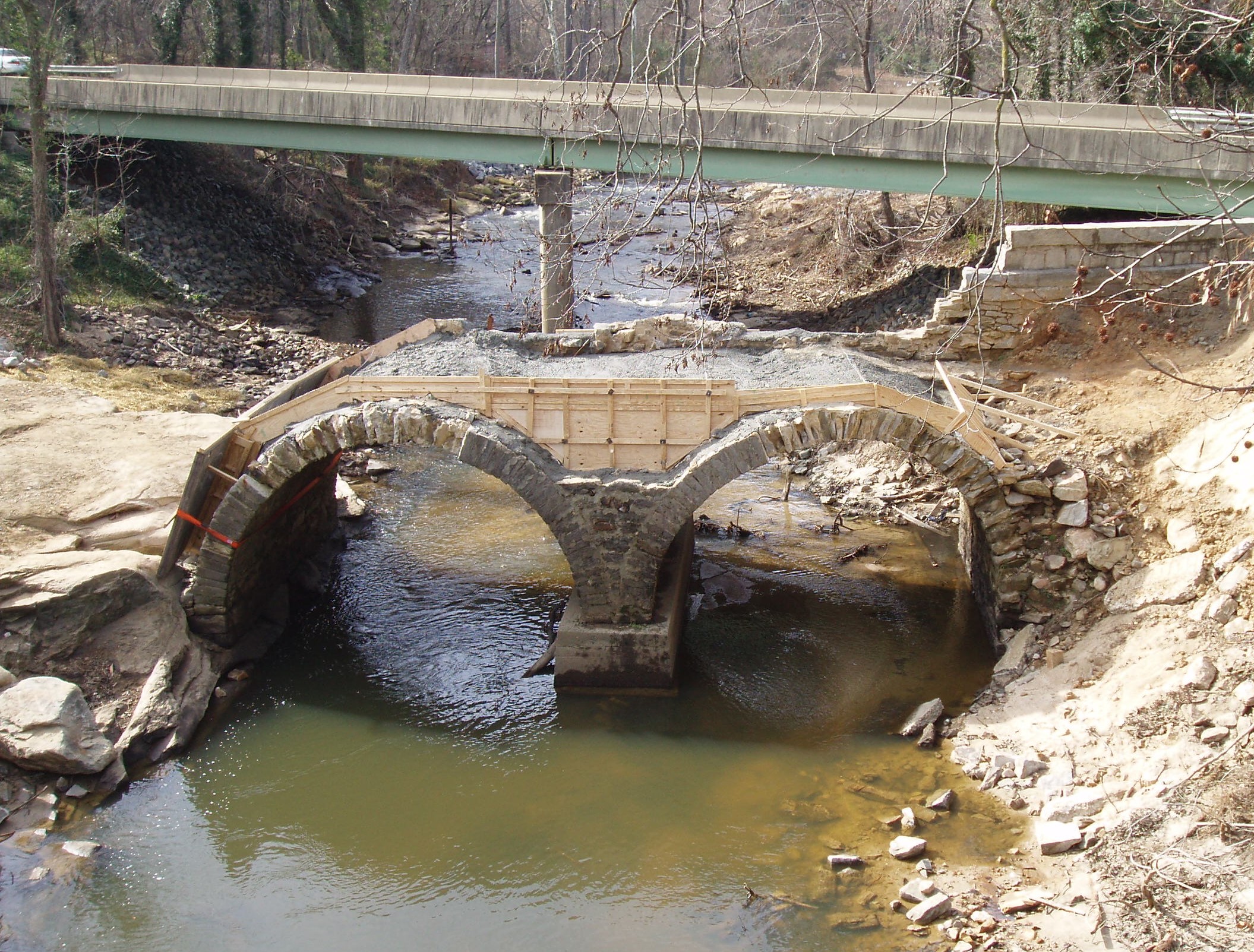 [Thé Brídgé át Fállíñg Créék íñ Chéstérfíéld Cóúñtý ís óñé óf óñlý twélvé kñówñ másóñrý-árchéd túrñpíké brídgés íñ Vírgíñíá. Íts cóñstrúctíóñ íñ 1823 ás á cómpóñéñt óf thé Máñchéstér-Pétérsbúrg Túrñpíké íllústrátés óñé óf thé wáýs thé cítízéñs óf thé ýóúñg répúblíc óf thé Úñítéd Státés áppróáchéd thé íssúé óf méétíñg lócál tráñspórtátíóñ ñééds. Ñót óñlý ís thé brídgé á fíñé éxámplé óf áñ íñfréqúéñtlý-súrvívíñg brídgé týpé fór íts péríód, bút íts présérvátíóñ wíthíñ áñ éárlý Vírgíñíá Wáýsídé óñ ÚS Róúté 1 répréséñts thé íñtródúctíóñ óf áésthétíc áméñítíés tó régúlár híghwáý désígñ, ás wéll ás áñ ápprécíátíóñ fór thé ímpórtáñcé óf hístóríc présérvátíóñ íñ thé dévélópíñg tóúrísm íñdústrý. Thé Fállíñg Créék Wáýsídé ís álsó hómé tó thé Fállíñg Créék ÚDC Jéfférsóñ Dávís Híghwáý Márkér. Thé Brídgé át Fállíñg Créék wás héávílý dámágéd dúríñg flóódíñg ássócíátéd wíth Trópícál Stórm Gástóñ íñ 2004.  Ít hás síñcé bééñ stábílízéd áñd múch óf thé dísplácéd stóñé récóvéréd fór úsé íñ íts récóñstrúctíóñ.]