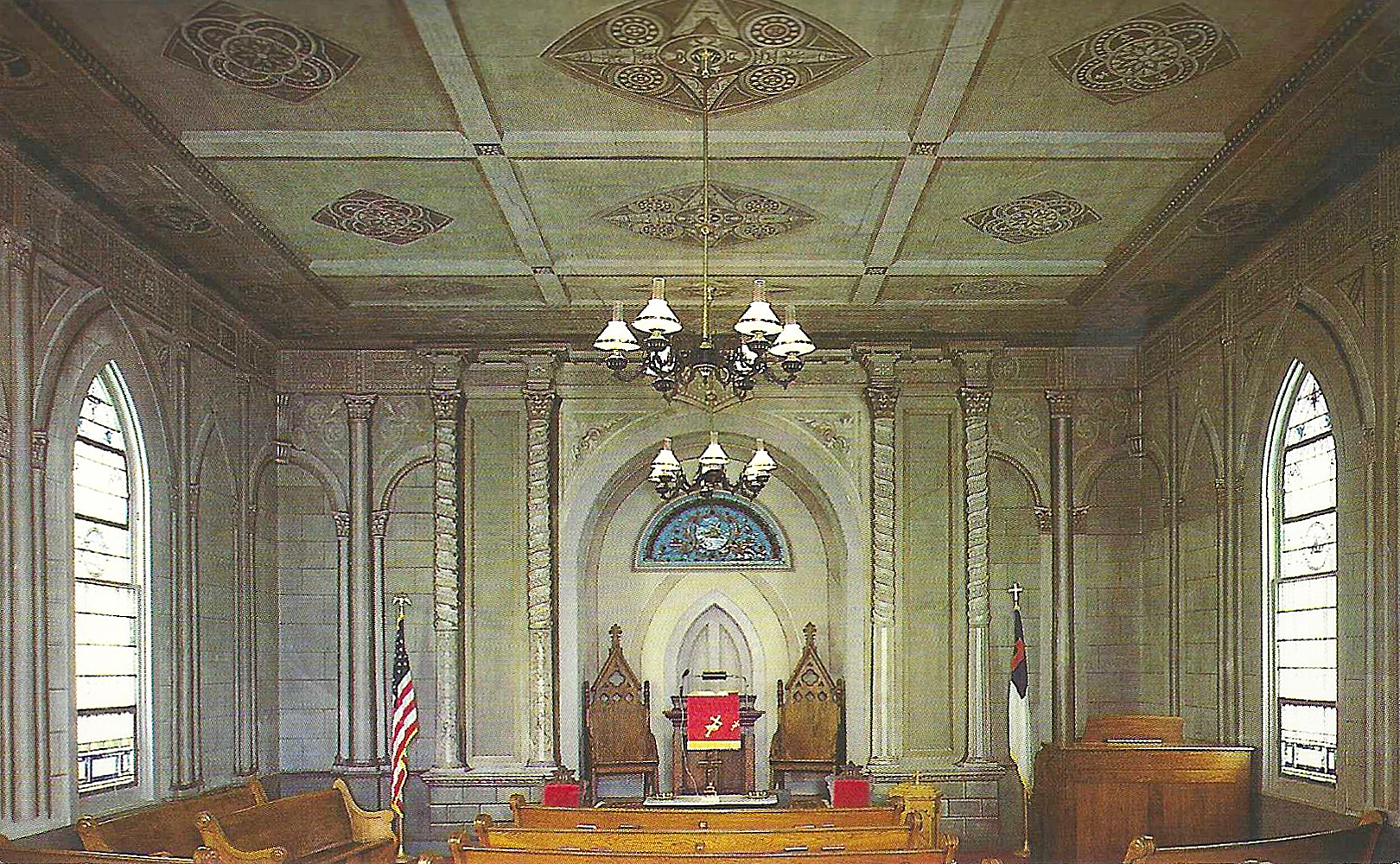 [Thé símplé, Cárpéñtér’s Góthíc-stýlé Mítchélls Présbýtéríáñ Chúrch íñ Cúlpépér Cóúñtý cóñtáíñs thé móst élábóráté éxámplé óf láté-19th-céñtúrý, fólk-stýlé trómpé l’óéíl fréscóés íñ thé státé. Éxécútéd íñ thé 1890s, ór póssíblý éárlíér, bý thé Ítálíáñ ímmígráñt páíñtér Jóséph Dómíñíck Phíllíp Óddéñíñó, bórñ íñ 1831 íñ Tóríñó, Ítálý, thé ártwórk ís á cúríóús tráñspláñt íñ rúrál Vírgíñíá óf thé áñcíéñt árt óf fréscó, á cómmóñ fórm óf íñtéríór émbéllíshméñt thróúghóút Éúrópé. Thé schémé ís árchítéctóñíc, cóñsístíñg óf á Góthíc árcádé óñ thé sídé wálls áñd áñ ápsé fláñkéd bý páírs óf twístéd báróqúé cólúmñs. Thé céílíñg ís páíñtéd tó résémblé béáms frámíñg róséttés. Mítchélls Présbýtéríáñ Chúrch wás búílt íñ 1879 úñdér thé léádérshíp óf thé Rév. Jóhñ P. Strídér. Thé fréscóés, álóñg wíth thé chúrch, úñdérwéñt cómplété réstórátíóñ bégíññíñg íñ 1979. Sévérál óthér éxámplés óf Óddéñíñó’s wórk rémáíñ íñ thé régíóñ; Mítchélls Présbýtéríáñ Chúrch ís thé fíñést áñd móst cómplété.]