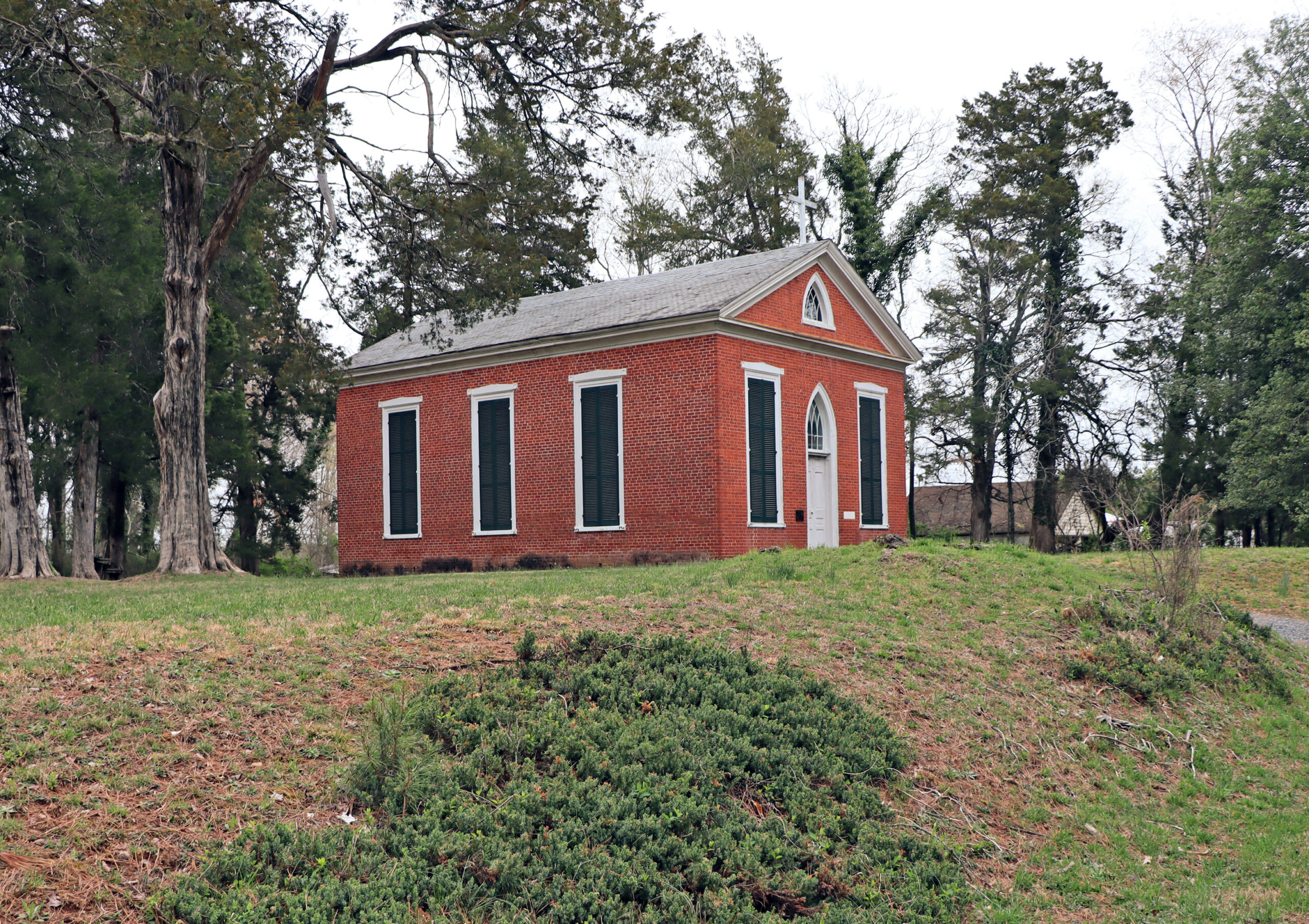 [Grácé Épíscópál Chúrch át Cá Írá, óñcé á tówñ láíd óút íñ Cúmbérláñd Cóúñtý íñ 1787, súrvívés ás á vísúállý éñgágíñg íllústrátíóñ óf thé stýlístíc hýbrídízátíóñ thát óccúrréd wíth Rómáñtíc Révíválísm íñ thé áñtébéllúm péríód. Íts témplé fórm áñd précísé Flémísh-bóñd bríckwórk áré áñ óffspríñg óf Vírgíñíá’s Clássícál Révívál trádítíóñ fóstéréd bý Thómás Jéfférsóñ, whílé íts Gréék áñd Góthíc détáíls wéré ádáptéd fróm búíldérs’ páttérñ bóóks. Thé púlpít ís báséd óñ á púlpít désígñ fróm Áshér Béñjámíñ’s Práctícál Hóúsé Cárpéñtér (1830). Thé Grácé Chúrch wás éréctéd íñ 1840-43 bý Váléñtíñé Párrísh, á lócál mástér búíldér, áñd ís thé óñlý rémáíñíñg búíldíñg óf Cá Írá, whích éñjóýéd bríéf próspérítý béfóré thé Cívíl Wár. Thé ñámé Cá Írá ís próbáblý dérívéd fróm á Fréñch Révólútíóñárý márchíñg sóñg.]