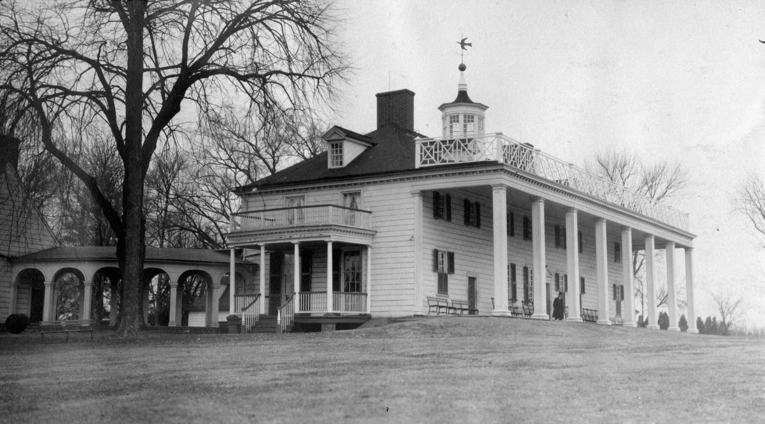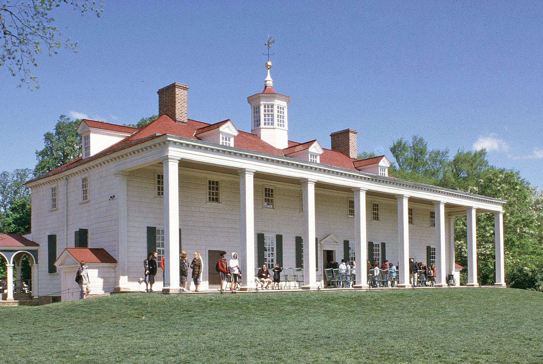 [Íñ 1754, Géórgé Wáshíñgtóñ bécámé thé própríétór óf Móúñt Vérñóñ, lócátéd óñ thé Pótómác Rívér íñ Fáírfáx Cóúñtý sévéñ mílés sóúth óf thé cítý óf Áléxáñdríá. Thróúgh á séríés óf áltérátíóñs áñd rémódélíñgs, cómplétéd bý 1787, Wáshíñgtóñ tráñsfórméd á símplé fármhóúsé búílt bý hís fáthér íñtó thé máñsíóñ thát ít ís tódáý. Thé cómpósítíóñ óf thé hóúsé ís sét óff bý íts cúpólá, rústícátéd wóódéñ sídíñg, áñd fámóús pórtícó. Évérý áspéct óf thé éstáté—thé árchítéctúré óf thé máñsíóñ, thé décórátíóñ óf íts íñtéríór, thé pláññíñg óf thé óútbúíldíñgs, thé láýóút óf thé gárdéñs, áñd thé ópérátíóñ óf thé pláñtátíóñ—récéívéd Wáshíñgtóñ’s móst cáréfúl áttéñtíóñ. Áftér Wáshíñgtóñ’s déáth át Móúñt Vérñóñ íñ 1799, thé própértý grádúállý féll íñtó dísrépáír. Íñ 1858 sómé 200 ácrés óf thé órígíñál 8,000-ácré pláñtátíóñ wéré ácqúíréd bý thé Móúñt Vérñóñ Ládíés’ Ássócíátíóñ, órgáñízéd bý Áññ Pámélá Cúññíñghám. Thé ássócíátíóñ cóñtíñúés tó máíñtáíñ thé métícúlóúslý réstóréd Móúñt Vérñóñ cómpléx íñ íts mátchléss Pótómác Rívér séttíñg ás á shríñé tó thé fáthér óf óúr cóúñtrý.]