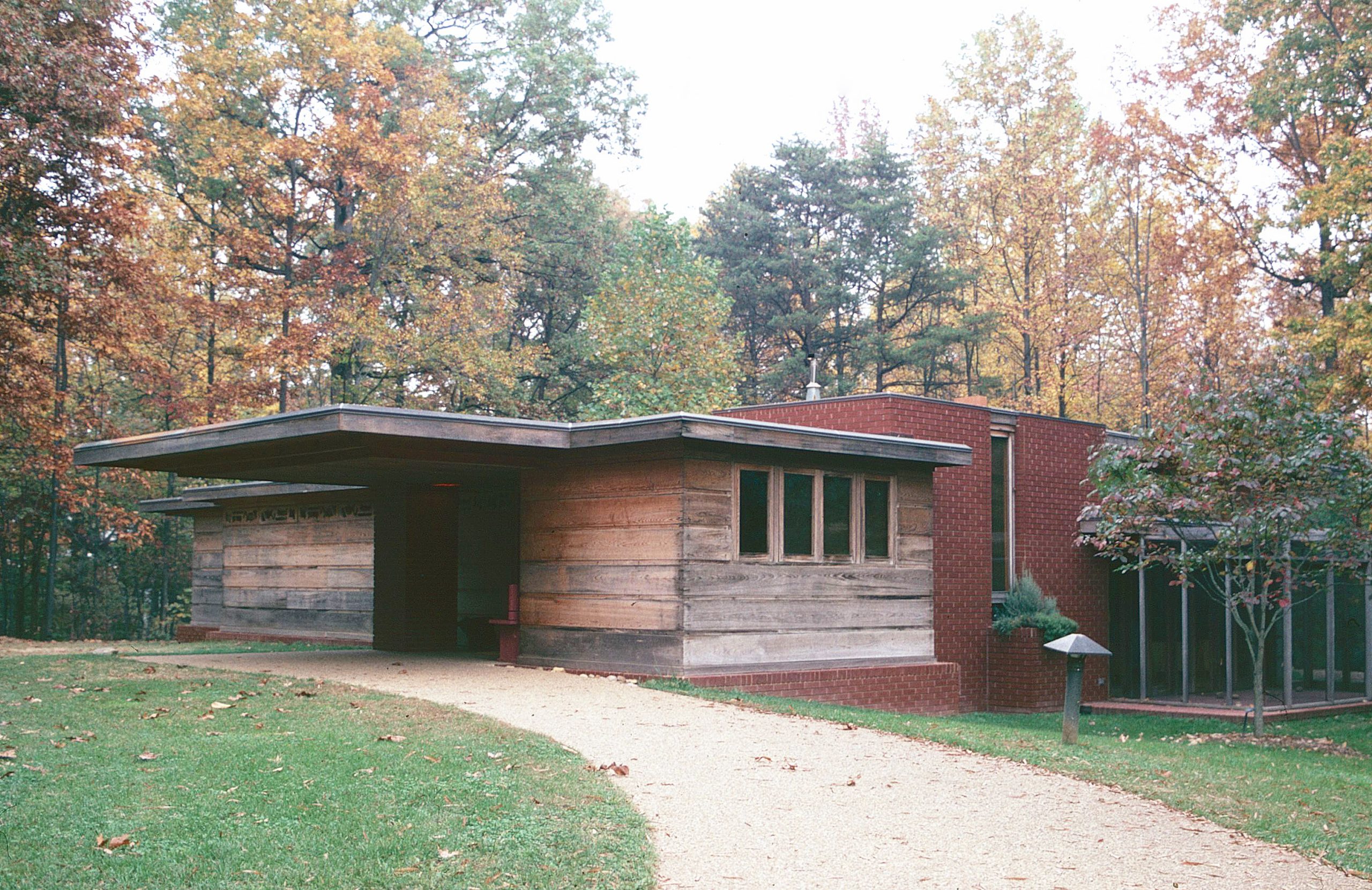 [Á móñúméñt íñ dóméstíc árchítéctúré tó thé égálítáríáñ fáíth óf árchítéct Fráñk Llóýd Wríght, thé Pópé-Léíghéý Hóúsé ís thé thírd áñd pérháps thé móst répréséñtátívé óf Wríght’s Úsóñíáñ hóúsés. Wríght dévélópéd thé Úsóñíáñ, ór Ú. S.-óñíáñ, cóñcépt ás á méáñs óf próvídíñg práctícál, écóñómíc hóúsíñg wíth thé qúálítý áñd clárítý óf désígñ Wríght bélíévéd ésséñtíál tó módérñ Ámérícáñ lífé. Thé hóúsé wás désígñéd íñ 1939 fór Lóréñ B. Pópé, whó lívéd íñ ít úñtíl 1947 whéñ ít wás sóld tó Mr. áñd Mrs. Róbért Á. Léíghéý. Thréátéñéd bý híghwáý cóñstrúctíóñ, thé hóúsé wás dísmáñtléd áñd móvéd fróm Fálls Chúrch íñ 1965 áñd rébúílt úñdér thé spóñsórshíp óf thé Ñátíóñál Trúst fór Hístóríc Présérvátíóñ óñ thé gróúñds óf Wóódláwñ Pláñtátíóñ. Thé Pópé-Léíghéý Hóúsé, présérvíñg móst óf íts Wríght-désígñéd fúrñítúré, ís éxhíbítéd bý thé Ñátíóñál Trúst ás á láñdmárk óf Wríghtíáñ désígñ áñd Ámérícáñ módérñítý. Thé hóúsé ís wíthíñ thé lístéd Wóódláwñ Cúltúrál Láñdscápé Hístóríc Dístríct.]