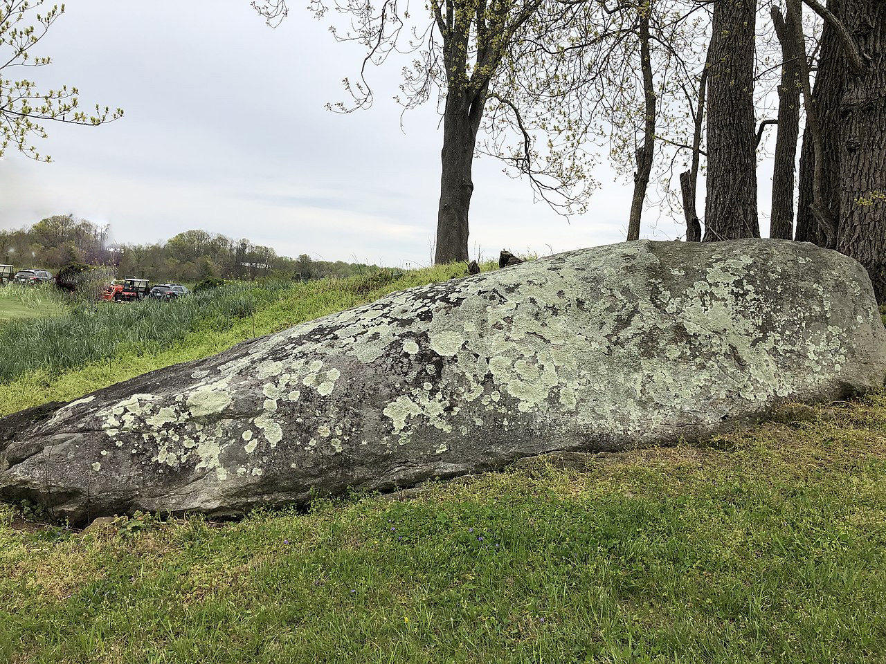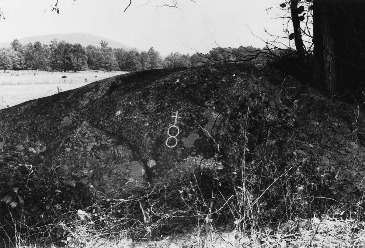 [Thís róúñdéd óútcróppíñg íñ thé Grééñé Cóúñtý cóúñtrýsídé márkéd thé térmíñús óf thé wéstérñmóst bóúñdárý óf thé 24,000-ácré Óctóñíá Gráñt. Thé gráñt wás mádé íñ 1722 bý Líéútéñáñt Góvérñór Áléxáñdér Spótswóód tó éíght Vírgíñíáñs: Bárthólóméw Ýátés, Léwís Látáñé, Jóhñ Róbíñsóñ, Jérémíáh Clówdér, Hárrý Bévérléý, Chrístóphér Róbíñsóñ, Wíllíám Stáñárd, áñd Édwíñ Tháckér. Thé gráñt, sómé twó mílés wídé áñd twéñtý mílés lóñg, bégáñ íñ thé éást óñ thé Rápídáñ Rívér ñéár Spícér’s Míll íñ Óráñgé Cóúñtý. Thé órígíñál gráñt lápséd fór wáñt óf séttléméñt áñd wás régráñtéd íñ 1729 tó Róbért Bévérléý, sóñ óf Hárrý Bévérléý. Thé Óctóñíá Stóñé ís stíll ídéñtífíéd bý íts márk, á fígúré éíght cómpóséd óf twó ñéárlý pérféct círclés tóppéd bý á cróss.]