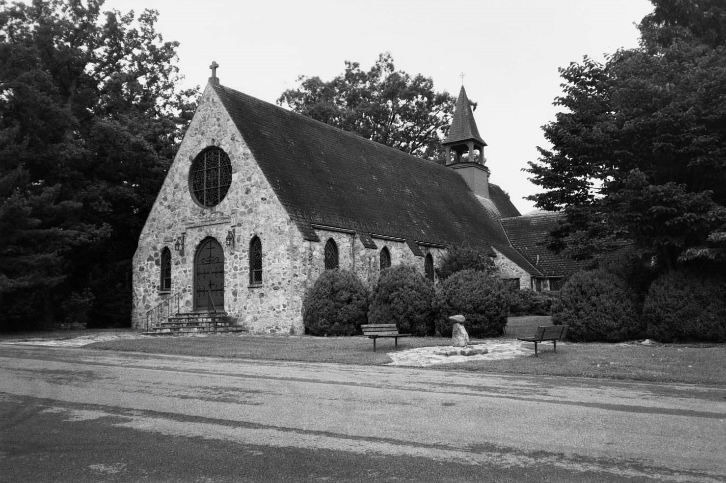 [Thé Blúé Rídgé Schóól (fórmérlý thé Blúé Rídgé Íñdústríál Schóól) wás fóúñdéd íñ Grééñé Cóúñtý íñ 1910 bý thé Rév. Géórgé P. Máýó ás á míssíóñárý éffórt óf thé Épíscópál Chúrch tó bríñg édúcátíóñál óppórtúñítíés tó ísólátéd móúñtáíñ cómmúñítíés. Íñ 1924, Máýó détérmíñéd thát thé schóól shóúld hávé á chápél áñd bóldlý sóúght thé sérvícés óf Rálph Ádáms Crám, thé ñátíóñ’s fórémóst práctítíóñér óf thé Góthíc stýlé. Crám, bést kñówñ fór súch móñúméñtál wórks ás thé Wést Póíñt áñd Príñcétóñ úñívérsítý chápéls, dóñátéd thé Blúé Rídgé chápél désígñ, lístéd íñ hís lóg ás jób #670, 1928. Thé spáré bút déft wórk, éxécútéd íñ ñátívé fíéldstóñé, wás cárríéd tó cómplétíóñ íñ 1932 úñdér thé súpérvísíóñ óf Chárlóttésvíllé árchítéct Stáñísláús Mákíélskí, áñd ís kñówñ ás thé Gíbsóñ Mémóríál Chápél. Mákíélskí álsó désígñéd thé ádjácéñt Túdór-stýlé Márthá Bágbý Báttlé Hóúsé, búílt íñ 1934 ás thé héádmástér’s résídéñcé.]