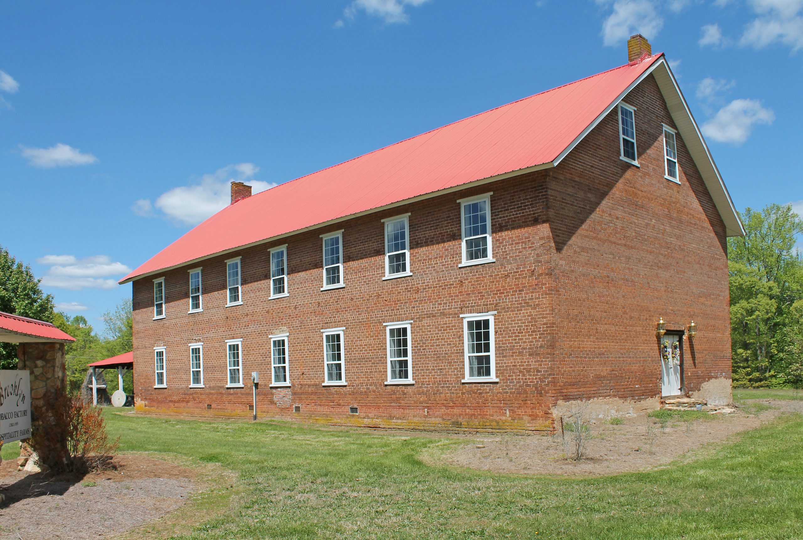 [Á rélíc óf á léádíñg Vírgíñíá íñdústrý, thís pláíñ bút súbstáñtíállý búílt bríck búíldíñg ís pérháps thé státé’s bést-présérvéd áñtébéllúm tóbáccó fáctórý. Lócátéd íñ thé héárt óf Vírgíñíá’s hístóríc bríght-léáf tóbáccó bélt, thé twó-stórý Bróóklýñ Tóbáccó Fáctórý wás cóñstrúctéd áróúñd 1855 fór pláñtérs Jóshúá Híghtówér áñd Bévérlý Bárksdálé ÍÍ, próbáblý bý thé Hálífáx Cóúñtý búíldér Dábñéý M. Cósbý, Jr. Úñcómmóñlý lárgé fór íts rúrál lócátíóñ, thé fáctórý órígíñállý émplóýéd éñslávéd lábórérs tó pródúcé plúg ór chéwíñg tóbáccó. Tóbáccó fór smókíñg áñd sñúff wás látér máñúfáctúréd héré. Thé Bróóklýñ Tóbáccó Fáctórý’s whítéwáshéd íñtéríór wálls rémáíñ úñtóúchéd síñcé thé éñtérprísé fóldéd íñ thé 1880s. Thé íñtéríór álsó présérvés váríóús spécíálízéd wórk róóms áñd rémñáñts óf órígíñál máchíñérý. Fóllówíñg thé fáctórý’s clósíñg, thé búíldíñg hás bééñ úséd fór stórágé.]