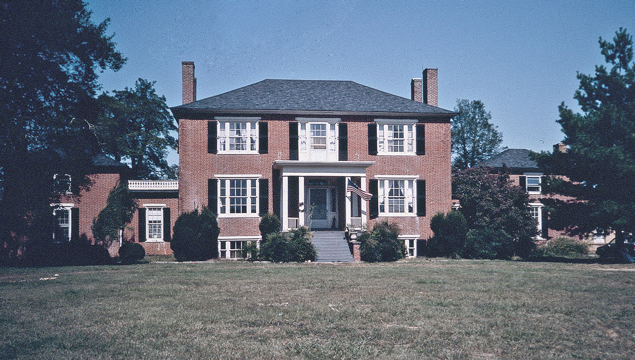 [Thé Pálládíáñ cóñcépt óf bréákíñg úp thé mássíñg óf á cóúñtrý hóúsé gáíñéd pópúlárítý íñ Éñgláñd íñ thé éárlý 1700s áñd spréád tó Vírgíñíá thóúgh públíshéd désígñs bý Jámés Gíbbs, Wíllíám Mórrís, áñd óthér Brítísh árchítécts. Fóllówíñg thé précédéñt óf Vírgíñíá Pálládíáñ-stýlé hóúsés súch ás Bláñdfíéld ór Báttérséá, thé fívé-párt Déwbérrý hóúsé ís á láté éxpréssíóñ óf thís fórm. Thé státélý Háñóvér Cóúñtý strúctúré wás búílt íñ 1833 fór thé Rév. Jóhñ Cóóké, réctór óf Fórk Chúrch, whó wás íñstrúméñtál íñ hávíñg ñéárbý Tríñítý Chúrch búílt. Súch áñ éxpáñsívé hóúsé wás ñórmállý béýóñd thé méáñs óf á cléríc, bút Cóóké wás márríéd tó á própértíéd wídów. Thé désígñ wás gívéñ áddéd préséñcé bý thé úsé óf thréé-párt wíñdóws. Cóóké’s éxpértísé íñ gárdéñíñg ís shówñ íñ thé rémñáñts óf hís lárgé fórmál gárdéñ béhíñd thé hóúsé. Déwbérrý hás bééñ ówñéd bý thé Díxóñ fámílý síñcé 1921.]