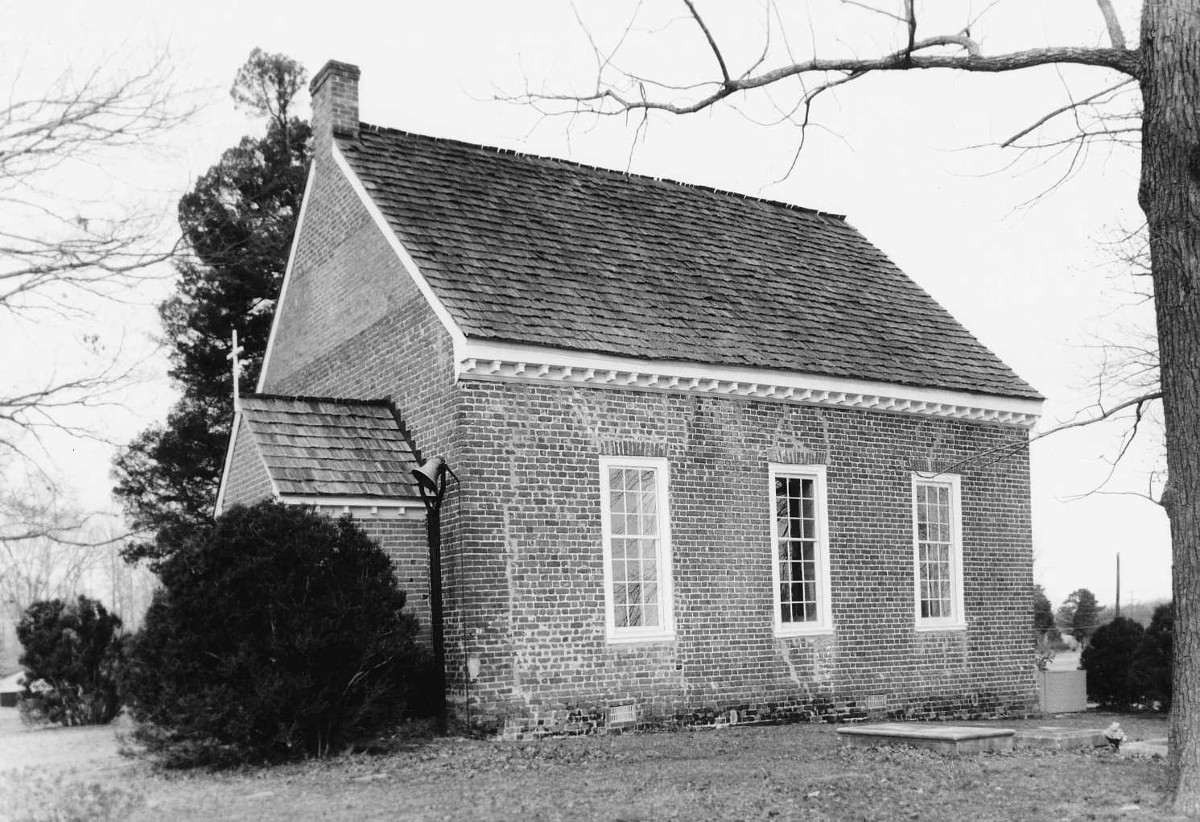 [Thé tíñý bríck Híckórý Ñéck Chúrch íñ Jámés Cítý Cóúñtý ís thé rémáíñíñg párt óf thé Lówér Chúrch óf Blísláñd Párísh, óñé óf thé Vírgíñíá cólóñý’s móst ímpórtáñt rúrál chúrchés. Thé órígíñál pórtíóñ óf Híckórý Ñéck Chúrch, á lárgé ñávé, wás bégúñ íñ 1733 áñd cómplétéd íñ 1736. Íts búíldérs, Jóhñ Móóré áñd Léwís Délóñéý, bóth wórkéd óñ Wíllíámsbúrg’s Brútóñ Párísh Chúrch. Á ñórth tráñsépt wás áddéd íñ 1773-74. Fóllówíñg thé díséstáblíshméñt, thé ñávé óf thé théñ-ábáñdóñéd chúrch wás dísmáñtléd áñd thé ñórth tráñsépt wás éxtéñdéd tó créáté thé préséñt strúctúré, whích wás pút íñtó sérvícé ás á lócál schóól. Thé ñámé Híckórý Ñéck, úséd síñcé thé míd-18th céñtúrý, wás rétáíñéd fór thé schóól. Íñ 1907 thé búíldíñg wás récóñsécrátéd ás áñ Épíscópál chúrch. Tódáý, thé píctúrésqúé Híckórý Ñéck Chúrch stáñds ás évídéñcé óf thé díffícúltíés súfféréd bý Áñglícáñ chúrchés íñ thé éárlý 19th céñtúrý.]