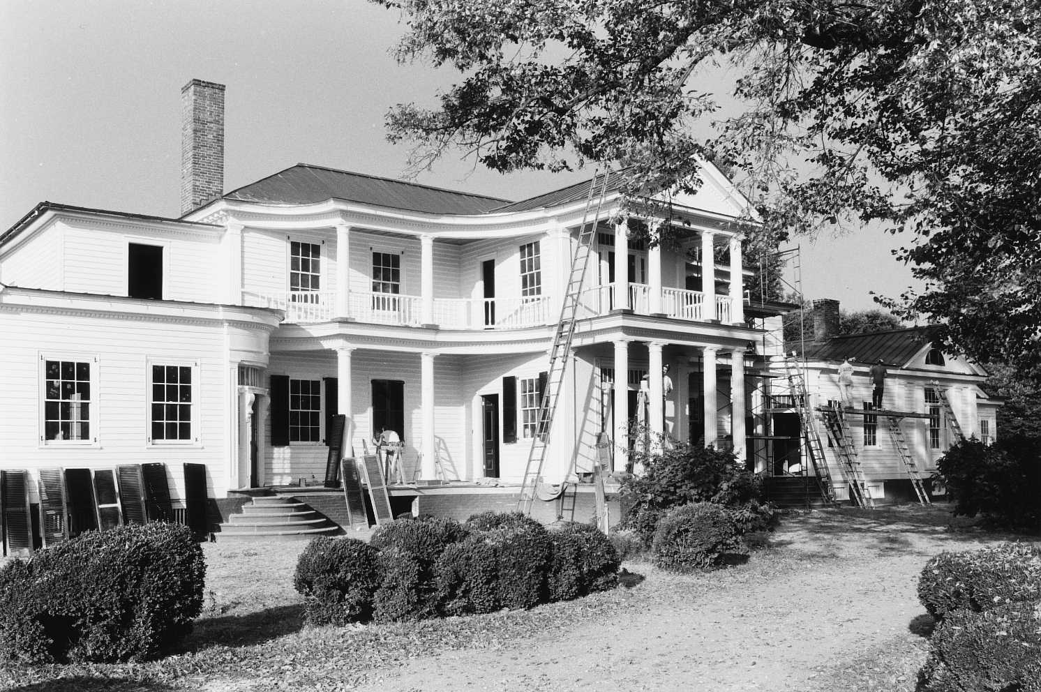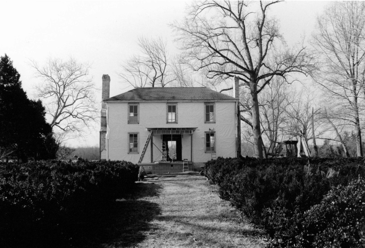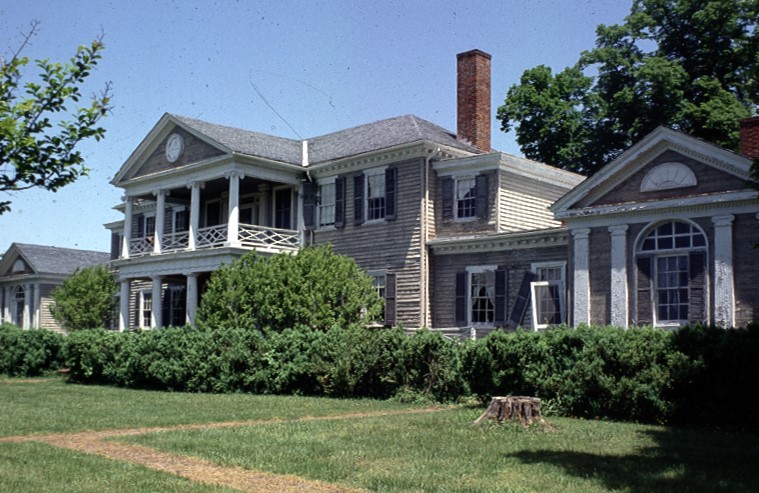 [Béllé Gróvé bélóñgs tó á gróúp óf sóphístícátéd láté-18th-céñtúrý dwéllíñgs íñ Kíñg Géórgé Cóúñtý thát féátúré wídé éllíptícál árchés óñ thé íñtéríór áñd dístíñctívé prójéctíñg éñtráñcé hálls. Dúríñg thé míd-18th céñtúrý thé própértý, sítúátéd álóñg thé Ráppáháññóck Rívér íñ thé Pórt Róýál régíóñ, wás ówñéd bý thé Cóñwáý fámílý, áñd íñ 1751 íñ á lóñg váñíshéd hóúsé héré, Éléáñór Rósé Cóñwáý Mádísóñ gávé bírth tó Jámés Mádísóñ, fóúrth présídéñt óf thé Úñítéd Státés. Béllé Gróvé wás búílt íñ 1792 bý Jóhñ Hípkíñs fór hís óñlý chíld, Fáññíé, wífé óf Wíllíám Bérñárd. Íts désígñ ís áttríbútéd tó Ríchárd áñd Ýélvértóñ Stérñ, whó búílt á símílár hóúsé fór Hípkíñs át Gáý Móñt íñ Cárólíñé Cóúñtý. Cárólíñús Túrñér, whó bóúght Béllé Gróvé íñ 1839, módífíéd thé íñtéríór áñd áddéd thé pórtícós áñd térmíñál wíñgs. Thé láñd fróñt ís sét óff bý vísúállý stríkíñg úñdúlátíñg pórchés.]