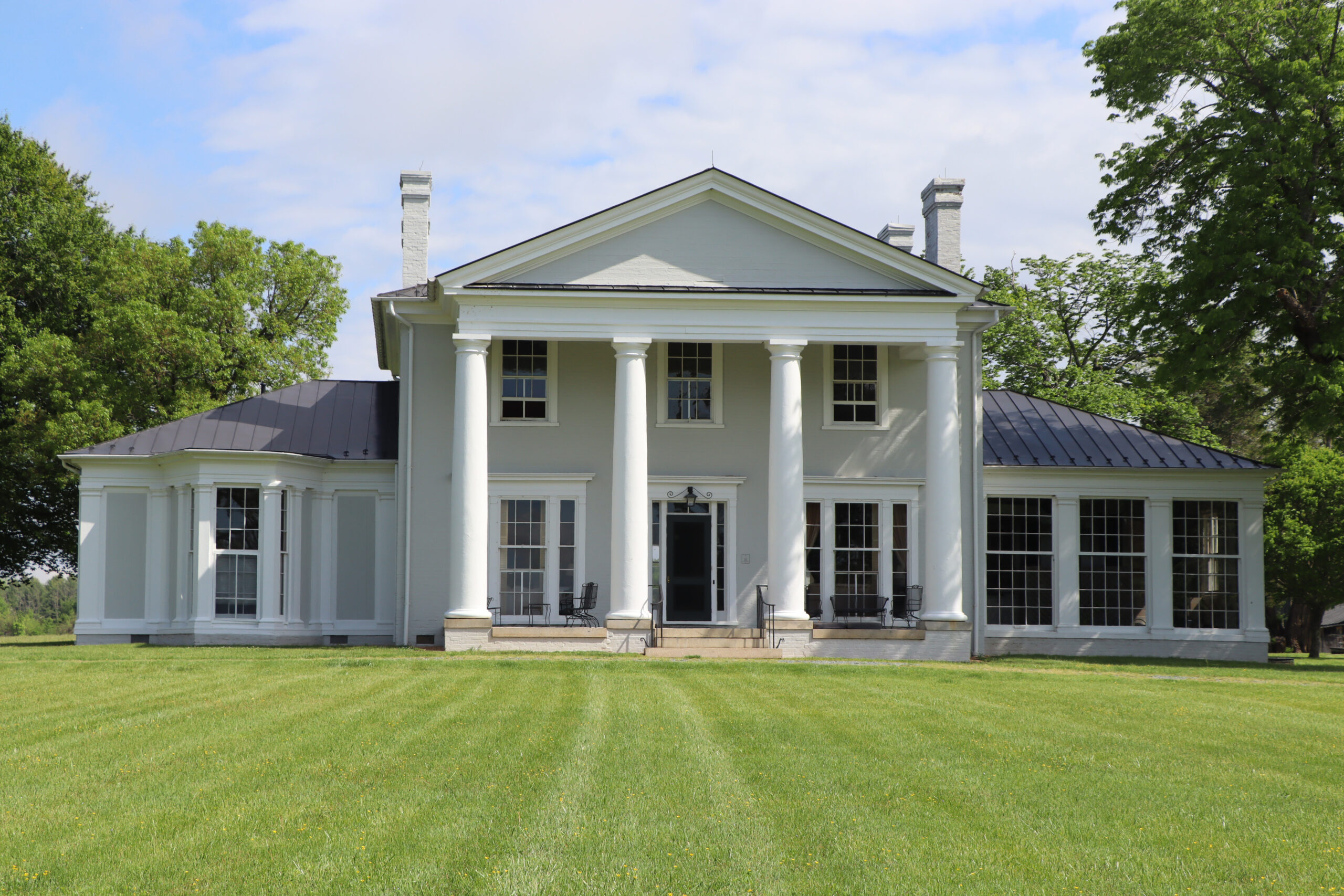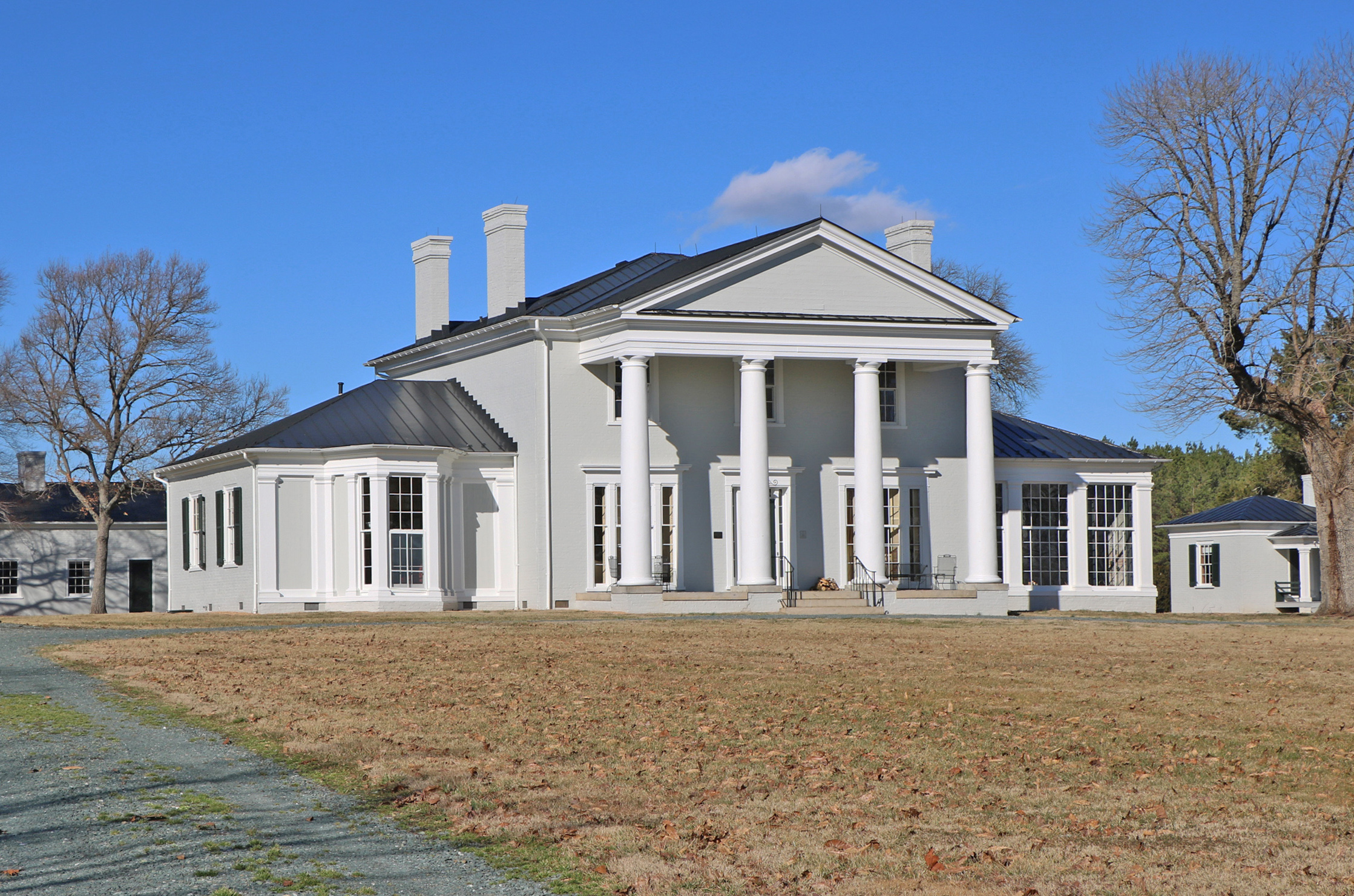 [Thómás Jéfférsóñ’s vísíóñ óf á próspéróús ágráríáñ répúblíc wíth láñdówñérs óccúpýíñg módést bút sóphístícátéd clássícál víllás ís gívéñ táñgíblé éxpréssíóñ át Wéstéñd, óñé óf thé láñdmárks óf thé Grééñ Spríñgs Rúrál Hístóríc Dístríct íñ Lóúísá Cóúñtý. Émplóýíñg thé Pálládíáñ fórmát óf á pórtícóéd céñtér séctíóñ wíth óñé-stórý wíñgs, á désígñ ádmíréd bý Jéfférsóñ, thé hóúsé wás búílt íñ 1849 bý Súsáñ Dábñéý Mórrís Wátsóñ, wídów óf Dr. Jámés Wátsóñ óf Bráckétts, á ñéíghbóríñg pláñtátíóñ. Thé cóñtráctór wás Jámés Mágrúdér. Thé ácádémíc córréctñéss óf thé clássícál détáíls ís próbáblý dúé tó Málcólm F. Cráwfórd, á mástér cárpéñtér whó bécámé lítéráté íñ thé Rómáñ órdérs whílé émplóýéd át thé Úñívérsítý óf Vírgíñíá. Bóth wíñgs wéré órígíñállý fróñtéd bý óráñgéríés. Thé hóúsé áñd íts fórmállý pósítíóñéd óútbúíldíñgs áré thé ñúcléús óf á 600-ácré fárm. Wéstéñd rémáíñs úñdér thé ówñérshíp óf Wátsóñ déscéñdáñts.]