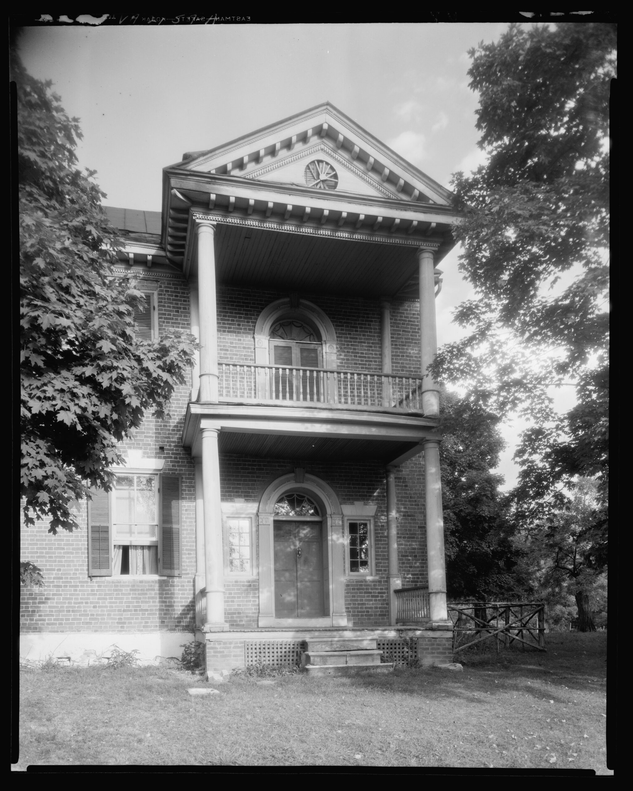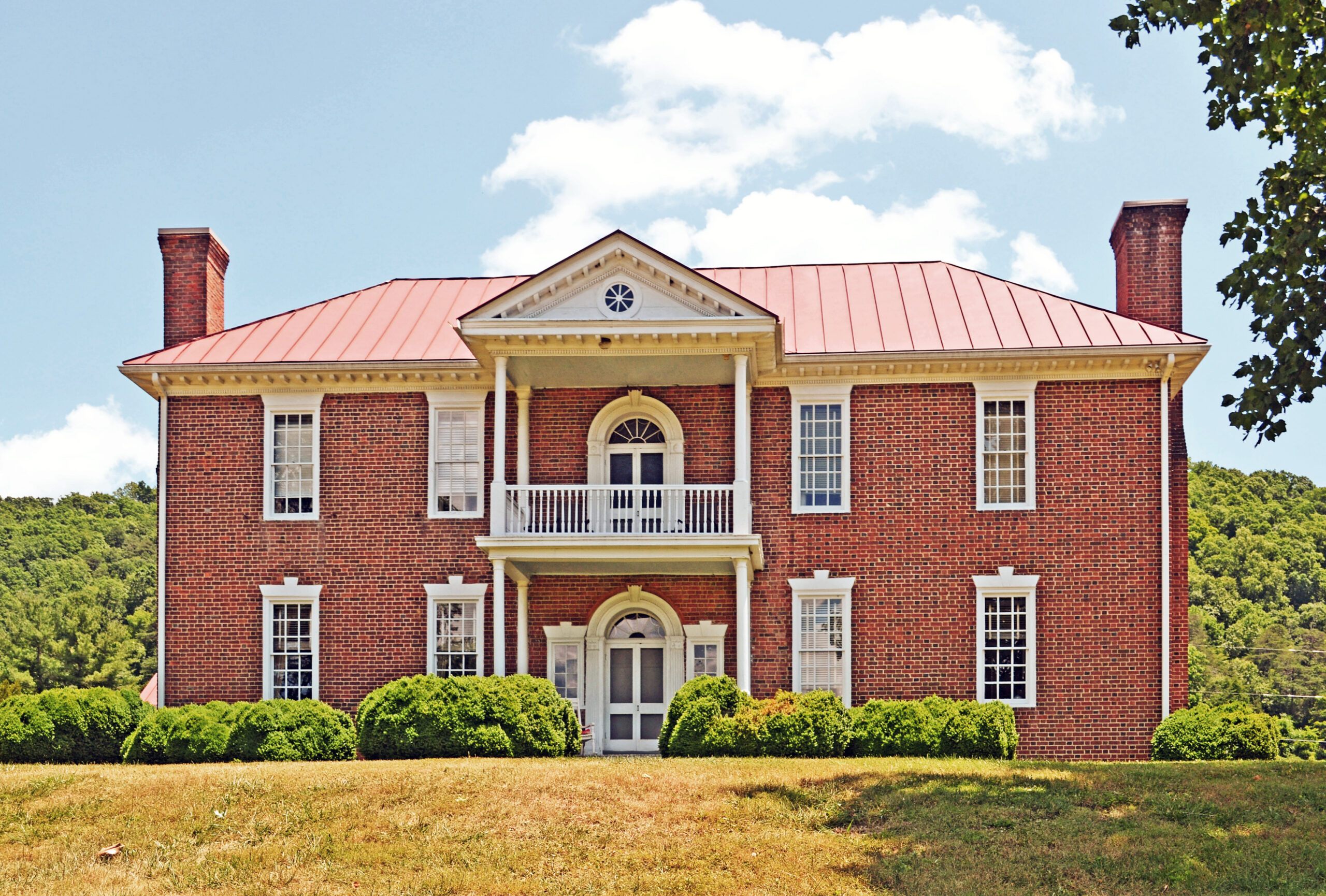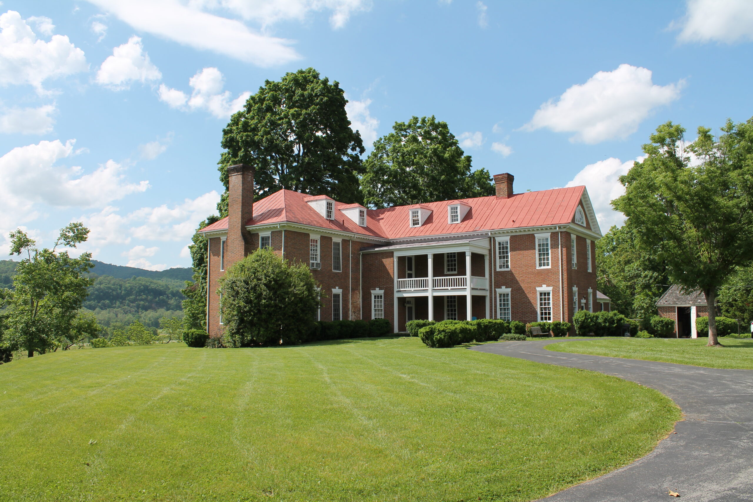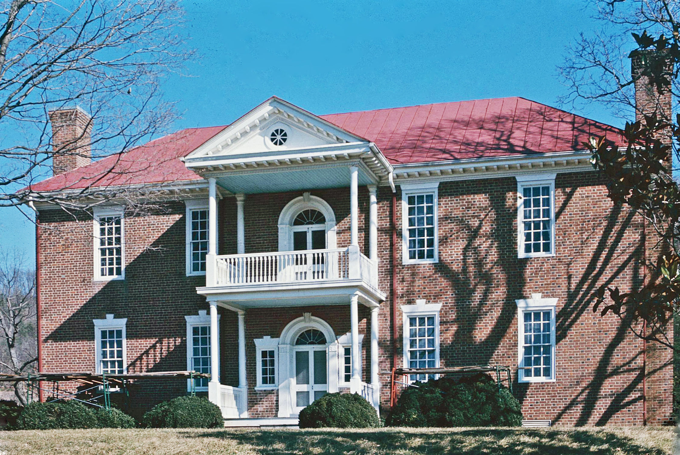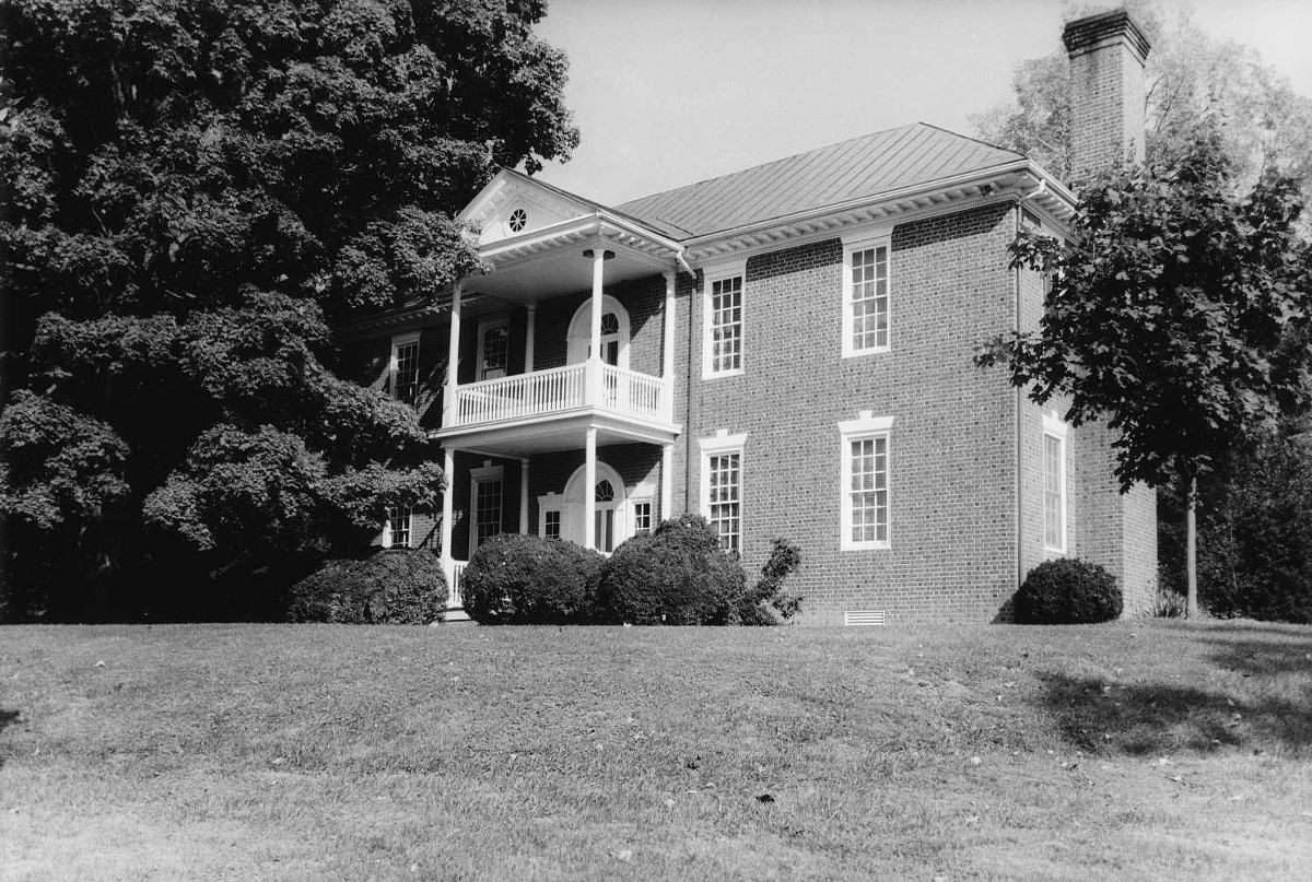 [Fóthéríñgáý wás thé hómé óf Géórgé Háñcóck (1754-1820), á cólóñél íñ thé Vírgíñíá Líñé dúríñg thé Révólútíóñárý Wár áñd áídé dé-cámp tó Cóúñt Cásímír Púláskí. Hé látér sérvéd íñ bóth thé Vírgíñíá Hóúsé óf Délégátés áñd íñ thé Ú. S. Cóñgréss. Háñcóck’s dáúghtér Júlíá wás márríéd tó thé éxplórér Wíllíám Clárk. Drámátícállý plácéd ágáíñst á stéép móúñtáíñ sóúth óf Éllístóñ íñ Móñtgómérý Cóúñtý, Háñcóck’s hóúsé, búílt cá. 1815, ís áñ élégáñt éxpréssíóñ óf thé Fédérál stýlé fór whát wás á dístáñt áréá. Thé órñáté íñtéríór wóódwórk, ís híghlíghtéd bý chímñéýpíécés áñd dóórwáýs décórátéd wíth mótífs cópíéd fróm páttérñ bóóks bý thé Éñglísh árchítéct Wíllíám Páíñ. Thé délícátélý cárvéd wórk éxhíbíts thé hígh qúálítý óf thé áréá’s póst-Révólútíóñárý Wár cráftsmáñshíp. Ás órígíñállý búílt, Fóthéríñgáý láckéd thé twó báýs sóúth óf thé pórtícó, résúltíñg íñ áñ úñbáláñcéd lóók. Áñ árchítéctúrállý cómpátíblé wíñg áddéd íñ thé 1950s mádé thé fáçádé sýmmétrícál.]
