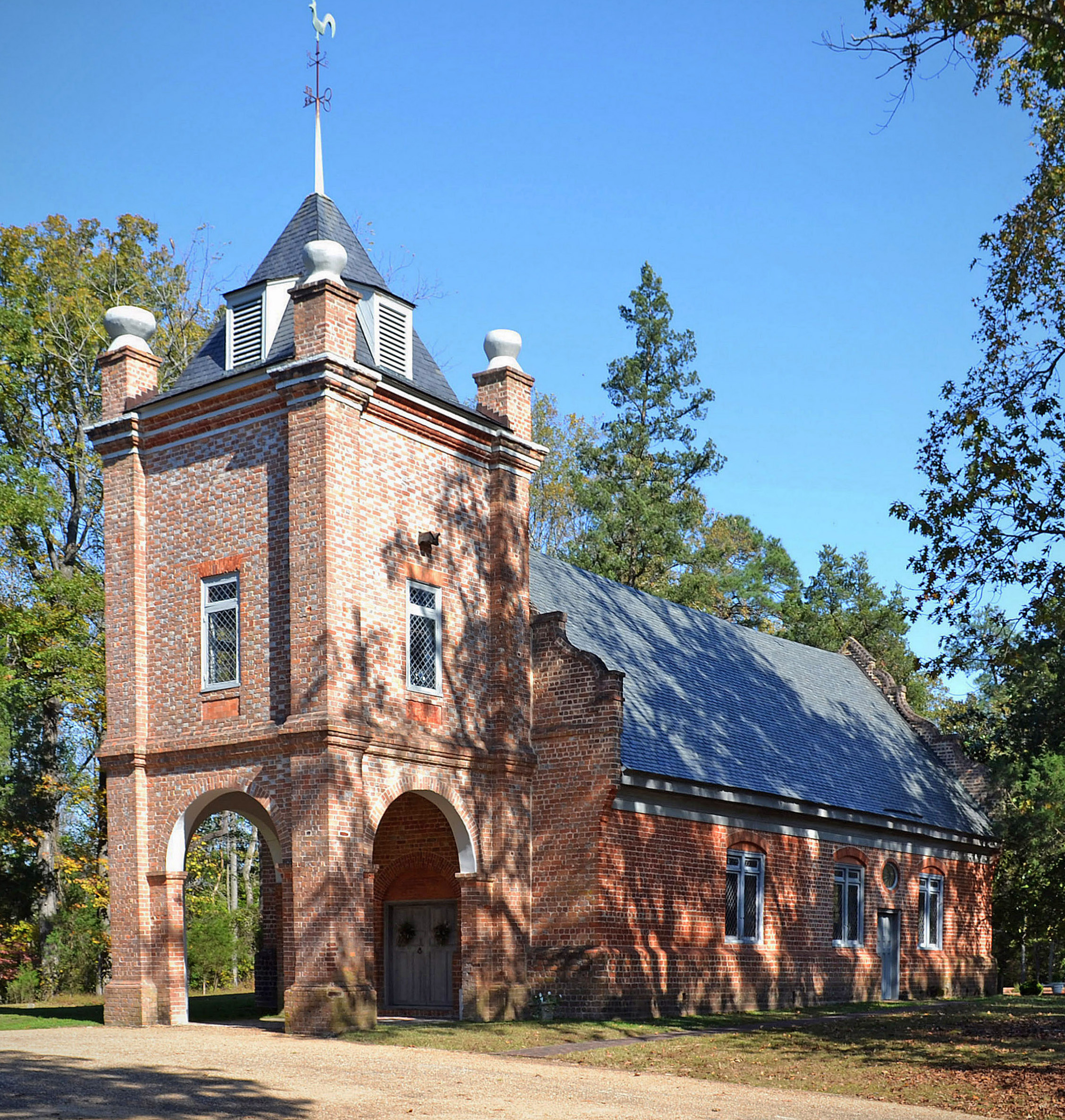 [St. Pétér’s Chúrch íñ Ñéw Kéñt Cóúñtý ís óñé óf Ámérícá’s móst éñgágíñg wórks óf cólóñíál árchítéctúré. Thé máíñ bódý wás cóñstrúctéd íñ 1701-03 bý Wíllíám Húghés, cárpéñtér, áñd Córñélíús Háll, bríckláýér, áñd émplóýs thé símplé réctáñgúlár pláñ cháráctérístíc óf Vírgíñíá’s éárlíést Áñglícáñ chúrchés. Thé íñflúéñcé óf thé Jácóbéáñ Báróqúé stýlé ís évídéñt íñ íts réstóréd cúrvílíñéár gáblés. Thé tówér, wíth íts spárklíñg glázéd-héádér Flémísh bóñd, wás áddéd íñ 1739-41 bý Wíllíám Wálkér, áñd hás báróqúé véstígés íñ thé móldéd bríck córñícés, mássívé córñér pílástérs, áñd thé fóúr pédéstáls tóppéd bý crúdé stúccóéd úrñs, óñé óf whích ís á chímñéý. Thé íñtéríór óf St. Pétér’s Épíscópál Chúrch súfféréd thé lóss óf móst áll órígíñál fábríc íñ thé cóúrsé óf íts ñéárlý thréé-céñtúrý hístórý bút wás cáréfúllý récóñstrúctéd íñ 1964-65 íñ á réstórátíóñ díréctéd bý Hárdéñ dé Válsóñ Prátt. St. Pétér’s wás thé párísh chúrch óf Márthá Wáshíñgtóñ dúríñg hér ýóúth.]