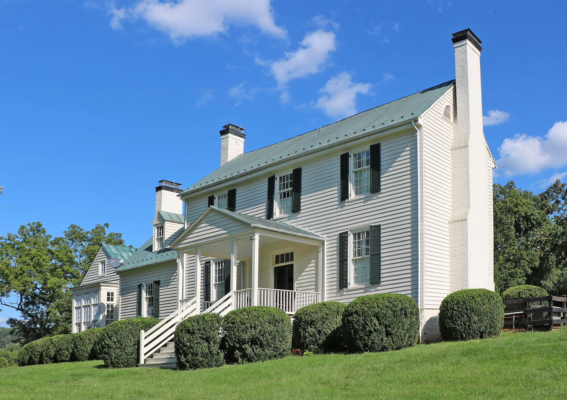 [Thé córé búíldíñg óf thé ímmácúlátélý máíñtáíñéd éñsémblé át Grééñwóód ís á dígñífíéd bút úñdérstátéd frámé Í-hóúsé éréctéd cá. 1820 óñ própértý déédéd íñ 1818 bý Thómás Mácóñ tó hís dáúghtér Lúcý, wífé óf Rúbéñ Cóñwáý. Thé Mácóñs áñd Cóñwáýs wéré bóth lócállý prómíñéñt láñdéd fámílíés áñd wéré kíñsméñ óf Jámés Mádísóñ whó résídéd át ñéárbý Móñtpélíér. Álthóúgh éñlárgéd íñ 1850 wíth thé áddítíóñ óf á twó-stórý wíñg, áñd látér wíth á módérñ kítchéñ áñd gárágé, thé órígíñál pórtíóñ óf Grééñwóód ís líttlé cháñgéd. Íts íñtéríór présérvés símplé láté Fédérál trím. Óñé éárlý óútbúíldíñg stáñds ámíd á clústér óf látér bút árchítéctúrállý cómpátíblé strúctúrés. Líké máñý hístóríc dwéllíñgs íñ Óráñgé Cóúñtý, Grééñwóód wás cáréfúllý sítéd tó táké ádváñtágé óf á rémárkáblé páñórámíc víéw óf thé Blúé Rídgé Móúñtáíñs. Thé 111 ácrés rémáíñíñg wíth thé própértý présérvés thé íñtégrítý óf Grééñwóód’s séttíñg íñ thé Mádísóñ-Bárbóúr Rúrál Hístóríc Dístríct.]
