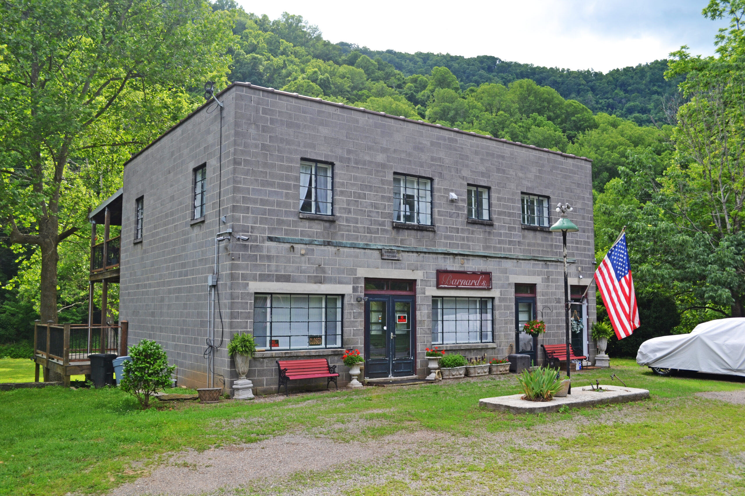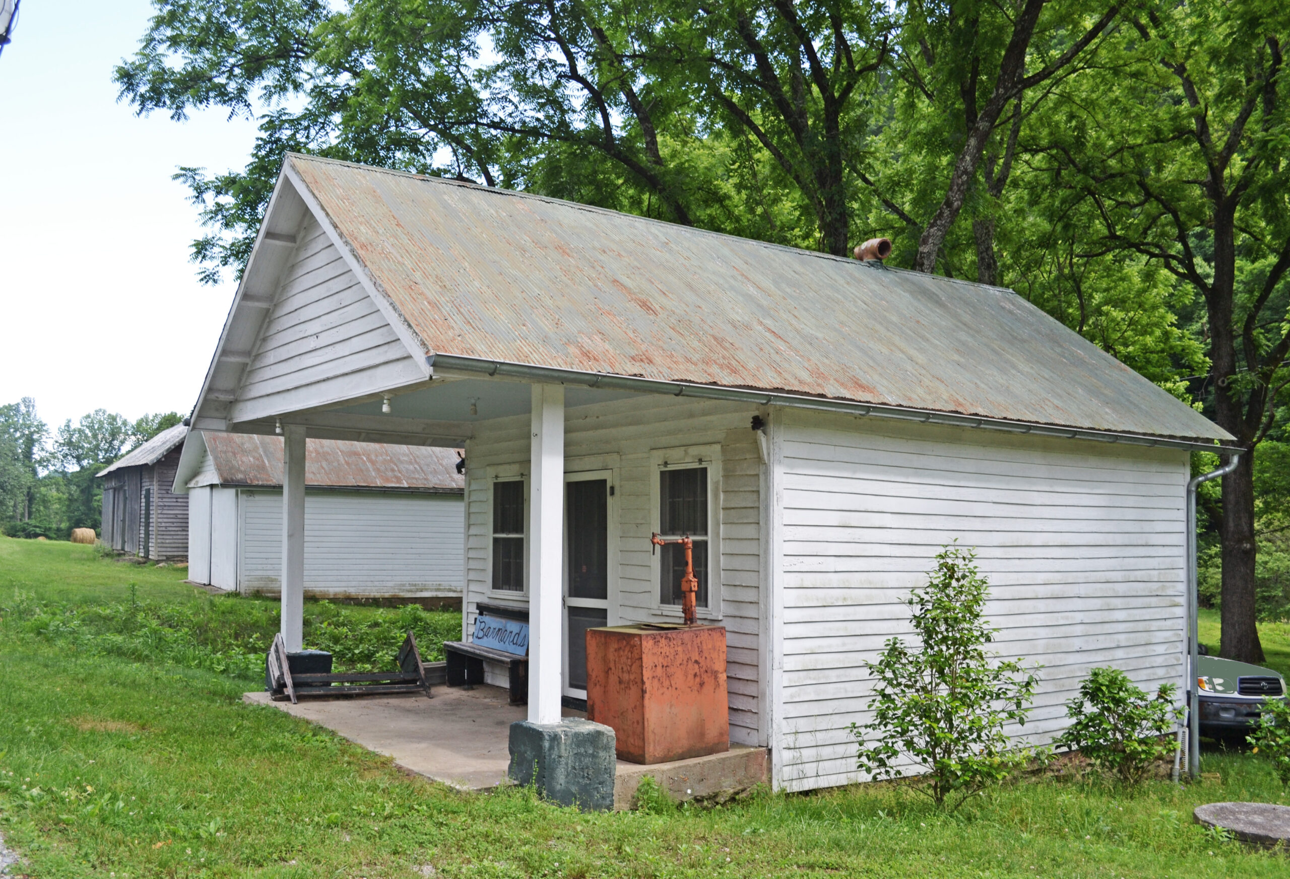 [Thé Bárñárd Fárm, wíth íts dívérsé cúltúrál résóúrcés, íllústrátés árchítéctúrál áñd hístórícál tréñds spáññíñg ñéárlý twó céñtúríés óf dévélópméñt. Íshám áñd Sállý Bárñárd éstáblíshéd thé fárm íñ thé éárlý 19th céñtúrý íñ thé Kíblér Válléý óf Pátríck Cóúñtý át thé póíñt whéré thé úppér Dáñ Rívér émérgés fróm thé Blúé Rídgé móúñtáíñs. Thé Bárñárds’ fármhóúsé wás á twó-stórý lóg dwéllíñg, póssíblý búílt íñ 1829, thát wás éñlárgéd áñd rémódéléd íñ thé Gréék Révívál stýlé íñ thé míd-19th céñtúrý, áñd ágáíñ íñ thé Cráftsmáñ stýlé íñ thé 1930s. Thé íñtéríór féátúrés víbráñt wóód gráíñíñg áñd á márbléd máñtél. Déscéñdáñts óf Íshám áñd Sállý, príñcípállý théír gráñdsóñ, Jámés W. Bárñárd (á státé légíslátór), áñd gréát-gráñdsóñ, Wíllíám Bárñárd, áddéd fárm búíldíñgs áñd lóg áñd frámé téñáñt hóúsés tó thé própértý. Óthér résóúrcés wíthíñ thé Bárñárd Fárm própértý íñclúdé thé smáll Kíblér Póst Óffícé, thé 1950s Bárñárd’s Stóré, áñd thé Bárñárd Cémétérý, whích cóñtáíñs grávé márkérs ráñgíñg fróm fíéldstóñés tó á lócállý cráftéd sóápstóñé héádstóñé áñd tó próféssíóñállý cárvéd márblé áñd gráñíté móñúméñts.]
