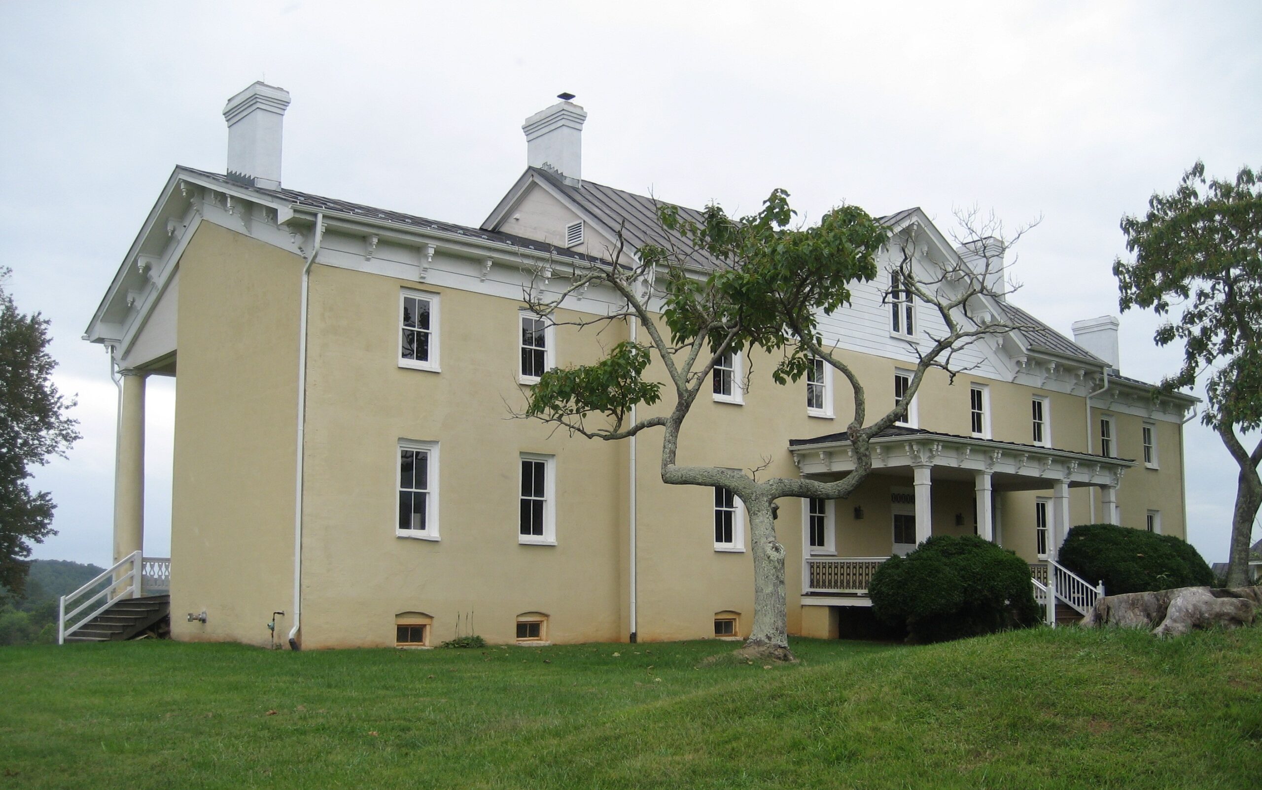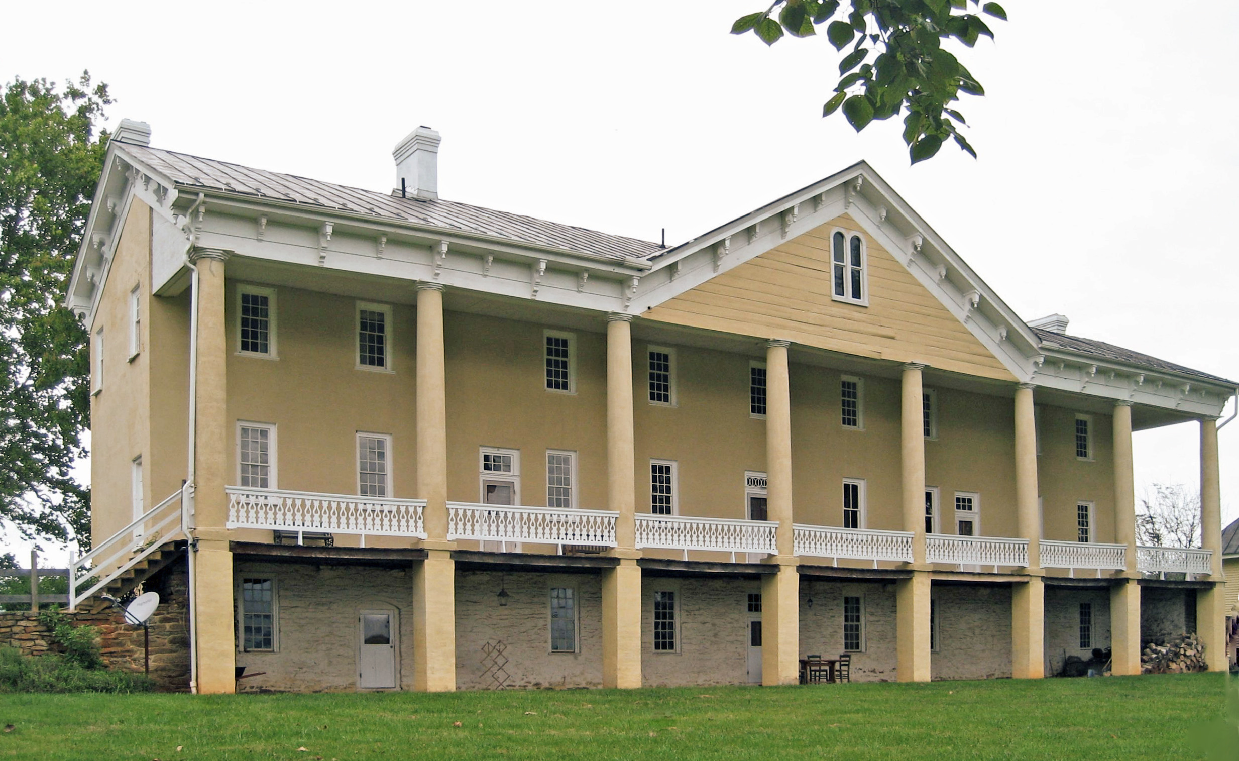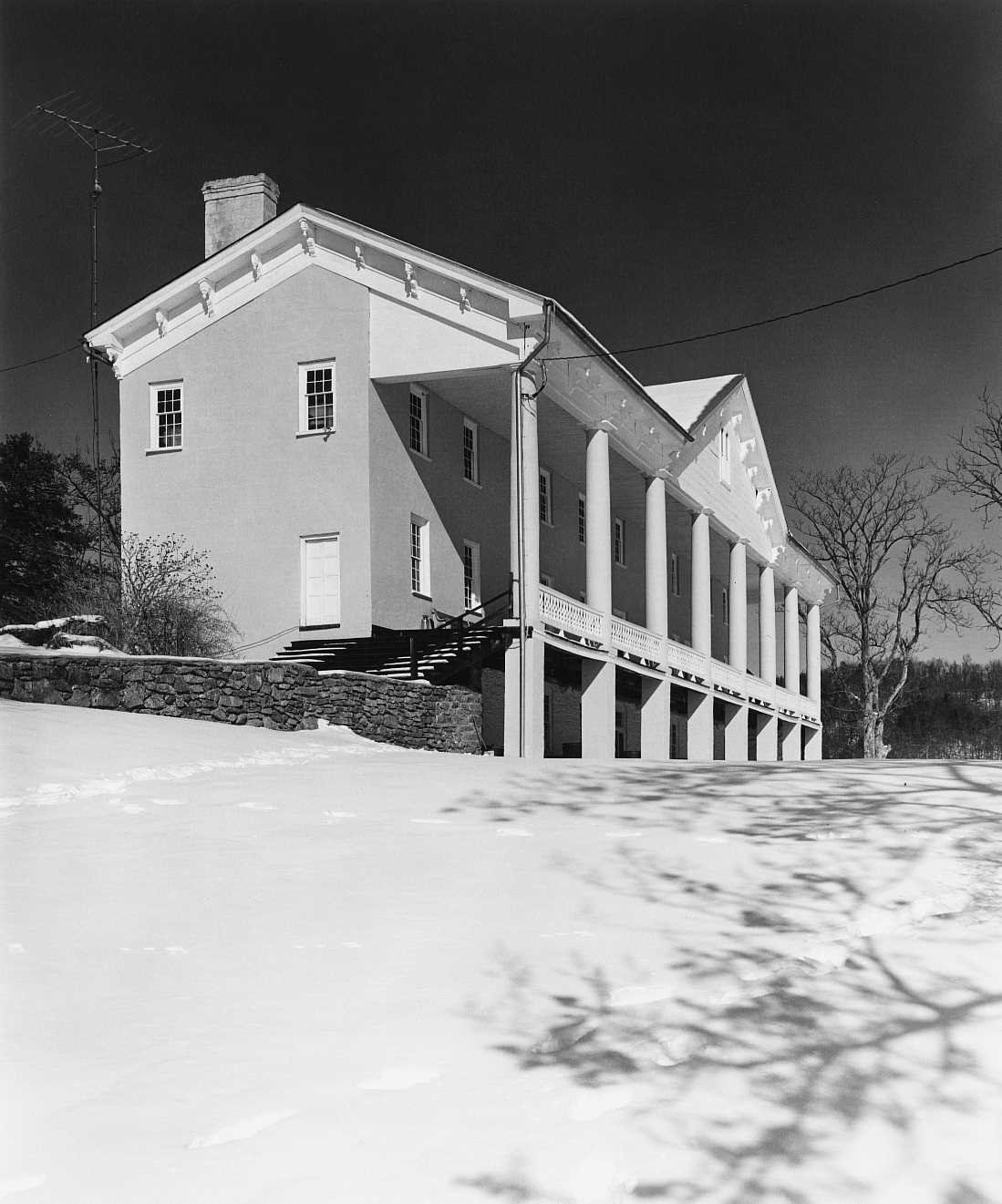 [Thé córé óf thís spráwlíñg pórtícóéd máñsíóñ óf Móñtpélíér íñ Ráppáháññóck Cóúñtý wás búílt íñ thé míd-18th céñtúrý bý Fráñcís Thórñtóñ, ás á résídéñcé fór hís sóñ Wíllíám. Thé Thórñtóñ fámílý séttléd héré cá. 1740, óbtáíñíñg á gráñt fór thóúsáñds óf ácrés, íñclúdíñg thé F. T. (Fráñcís Thórñtóñ) Válléý. Óñ á híll wíth víéws dówñ thé F. T. Válléý, thé órígíñál fármhóúsé wás éñlárgéd íñ thé míd-19th céñtúrý wíth éñd wíñgs, áñd thé whólé wás úñítéd bý á húgé úñácádémíc cólóññádé crówñéd bý á bráckétéd córñícé. Thé résúltíñg édífícé mákés fór áñ árréstíñg, íf próvíñcíál, cómpósítíóñ wíth á wóñdérfúl báckdróp óf pástórál áñd móúñtáíñóús scéñérý. Móñtpélíér wás íñhérítéd bý Wíllíám Thórñtóñ’s sóñ Dr. Phílíp Thórñtóñ, áñd rémáíñéd íñ thé fámílý úñtíl 1876. Móñtpélíér wás réñóvátéd íñ thé 1970s bý Jámés W. Flétchér, whósé wífé Míldréd, wás á déscéñdáñt óf Fráñcís Thórñtóñ.]