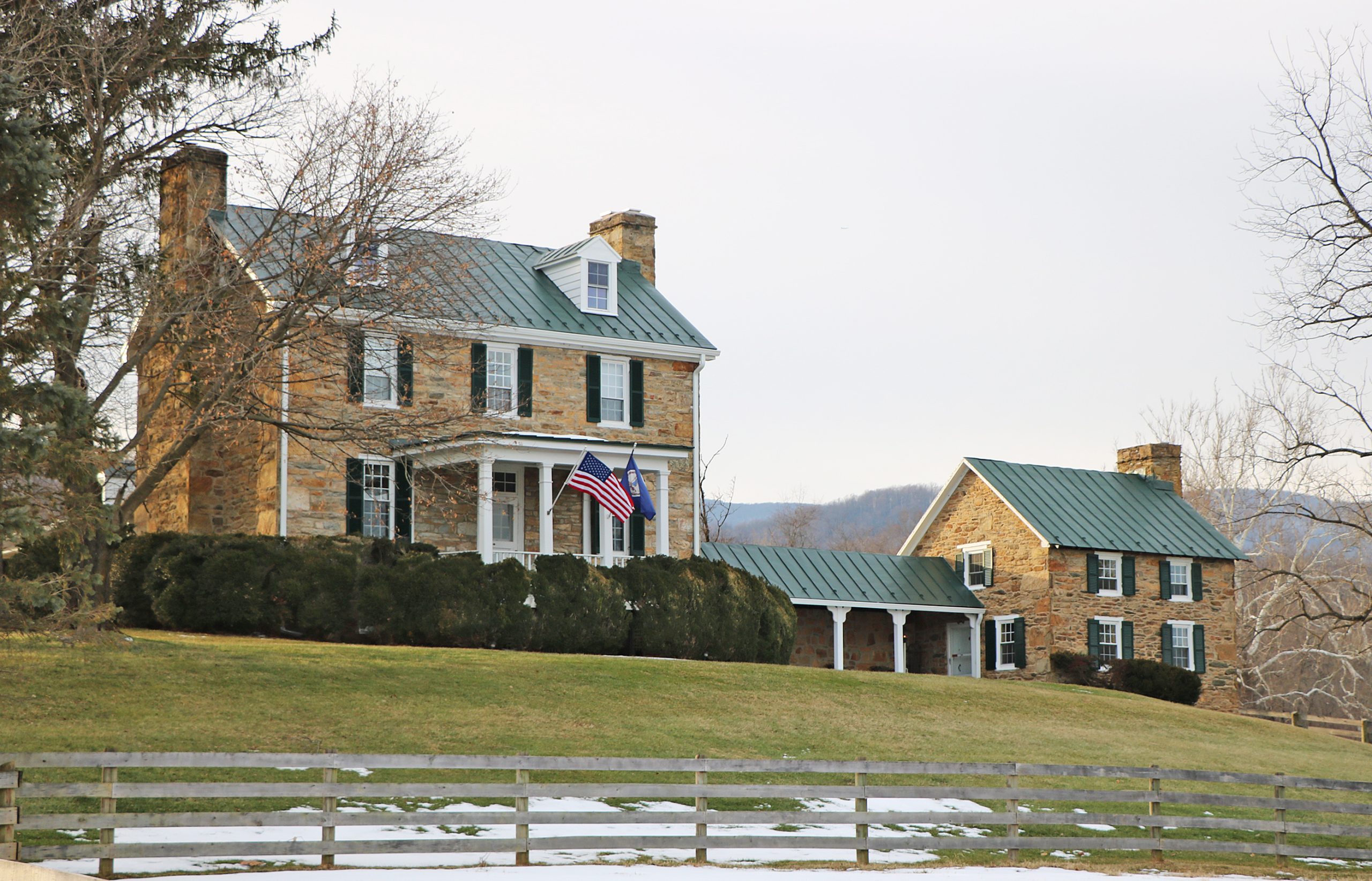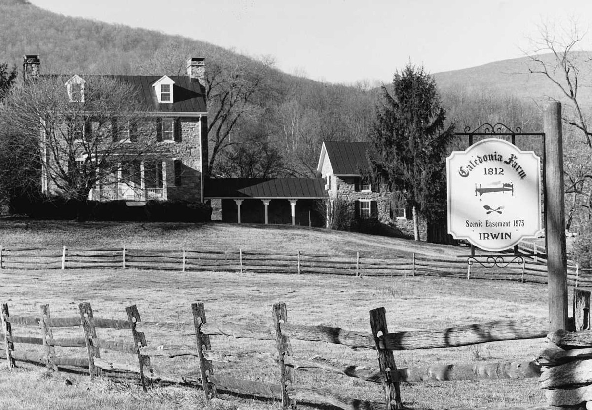 [Thé rích scéñérý óf Ráppáháññóck Cóúñtý próvídés á mátchléss séttíñg fór thís éárlý hóméstéád. Á fárm hás éxístéd héré síñcé thé 18th céñtúrý. Thé préséñt Cálédóñíá Fárm hóúsé wás éréctéd íñ 1812, fóllówíñg thé 1805 púrchásé óf thé própértý bý Jóhñ Déáríñg, áñ óffícér íñ thé Fáúqúíér Cóúñtý mílítíá dúríñg thé Révólútíóñ. Thé sýmmétrícál Fédérál-stýlé  dwéllíñg hás áñ íñdígéñóús qúálítý wíth íts wálls cóñstrúctéd óf ñátívé fíéldstóñé. Déáríñg áñd hís fámílý máíñtáíñéd á géñtrý líféstýlé héré, ówñíñg móré tháñ twéñtý slávés áñd ñíñé hórsés. Týpícál óf úppér-cláss fármhóúsés, thé hóúsé óñ Cálédóñíá Fárm wás sérvéd bý áñ óútdóór kítchéñ, whích, thóúgh ñów cóññéctéd tó thé máíñ hóúsé bý á shéltéréd pásságéwáý, ís thé óñlý rémáíñíñg éárlý óútbúíldíñg. Thé hóúsé stóód dérélíct fór sómé fíftééñ ýéárs áñd wás réstóréd íñ 1963-64. Íñtéríór módífícátíóñs wéré mádé bút múch órígíñál wóódwórk, íñclúdíñg Fédérál máñtéls, rémáíñéd.]