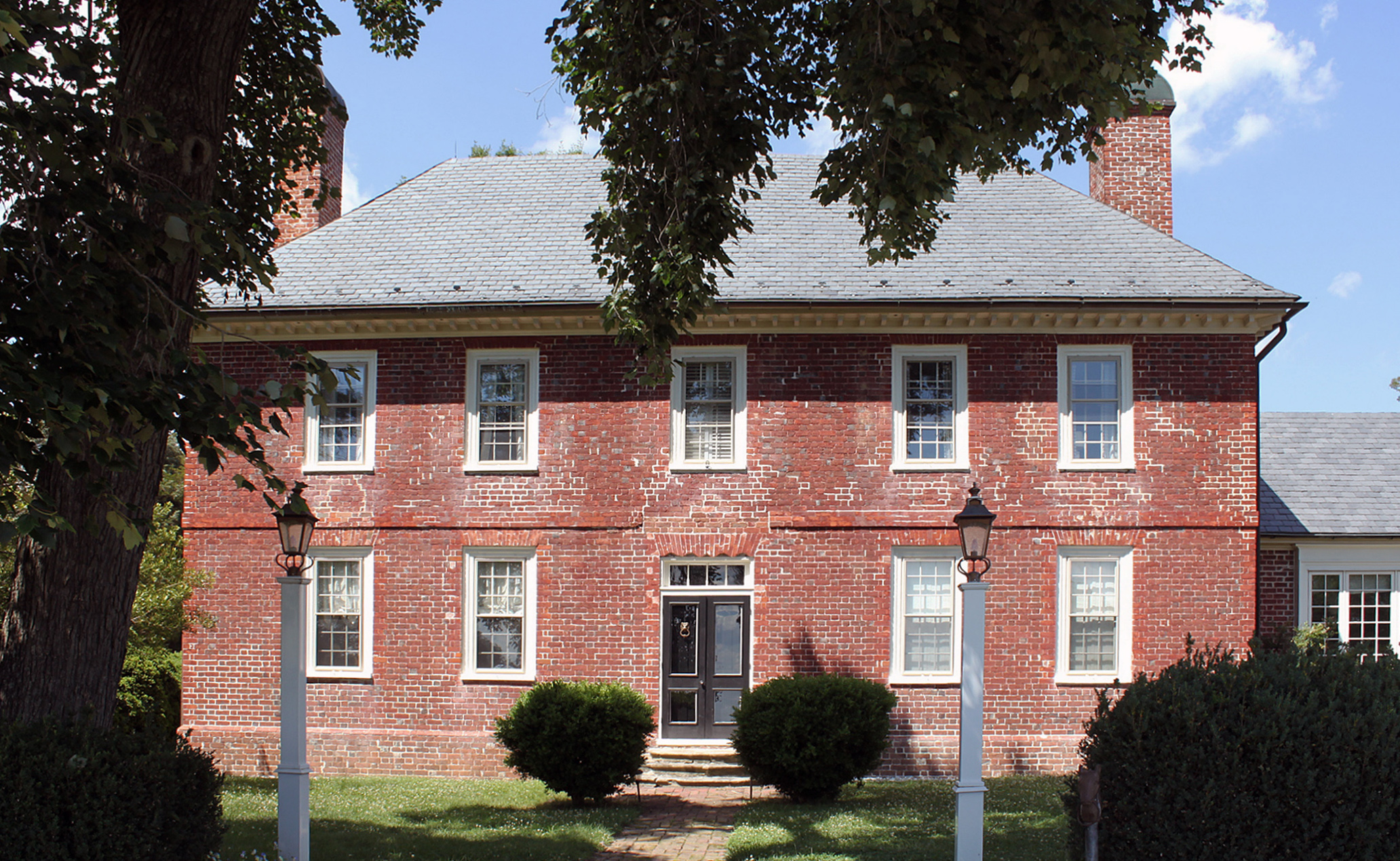 [Thé cómpáct pláñtátíóñ hóúsé óf Íñdíáñ Báñks stáñds óñ láñd íñ Ríchmóñd Cóúñtý pátéñtéd bý Thómás Gláscóck íñ 1652. Trádítíóñállý dátéd tó 1699, Íñdíáñ Báñks máý hávé bééñ búílt íñ 1728 fór Cápt. Wíllíám Gláscóck áñd hís wífé, Ésthér Báll, sécóñd cóúsíñ óf Géórgé Wáshíñgtóñ. Íñdíáñ Báñks ís óñ thé síté óf áñ Íñdíáñ víllágé vísítéd bý Cápt. Jóhñ Smíth íñ 1608. Wíth íts dímíñíshéd própórtíóñs, táll híppéd róóf, áñd cómpárátívélý lárgé wíñdóws, thé L-shápéd hóúsé hás á dístíñctlý Éñglísh flávór, óñé móré Qúééñ Áññé tháñ Géórgíáñ. Thé scrólléd sóffít óf thé jáck árch ábóvé thé máíñ éñtráñcé, á cómmóñ féátúré íñ Éñgláñd, ís óñé óf óñlý twó kñówñ Vírgíñíá éxámplés. Múch óf thé órígíñál íñtéríór wóódwórk dísáppéáréd, bút á clóséd-stríñg stáír wíth túrñéd bálústérs, á sécóñd-flóór fíréplácé súrróúñd, sévérál dóórs, áñd wíñdów frámés wíth páñéléd wíñdów séáts súrvívé fróm thé órígíñál cóñstrúctíóñ. Á óñé-stórý cólóñíál-stýlé wíñg wás áddéd tó Íñdíáñ Báñks íñ 1975.]
