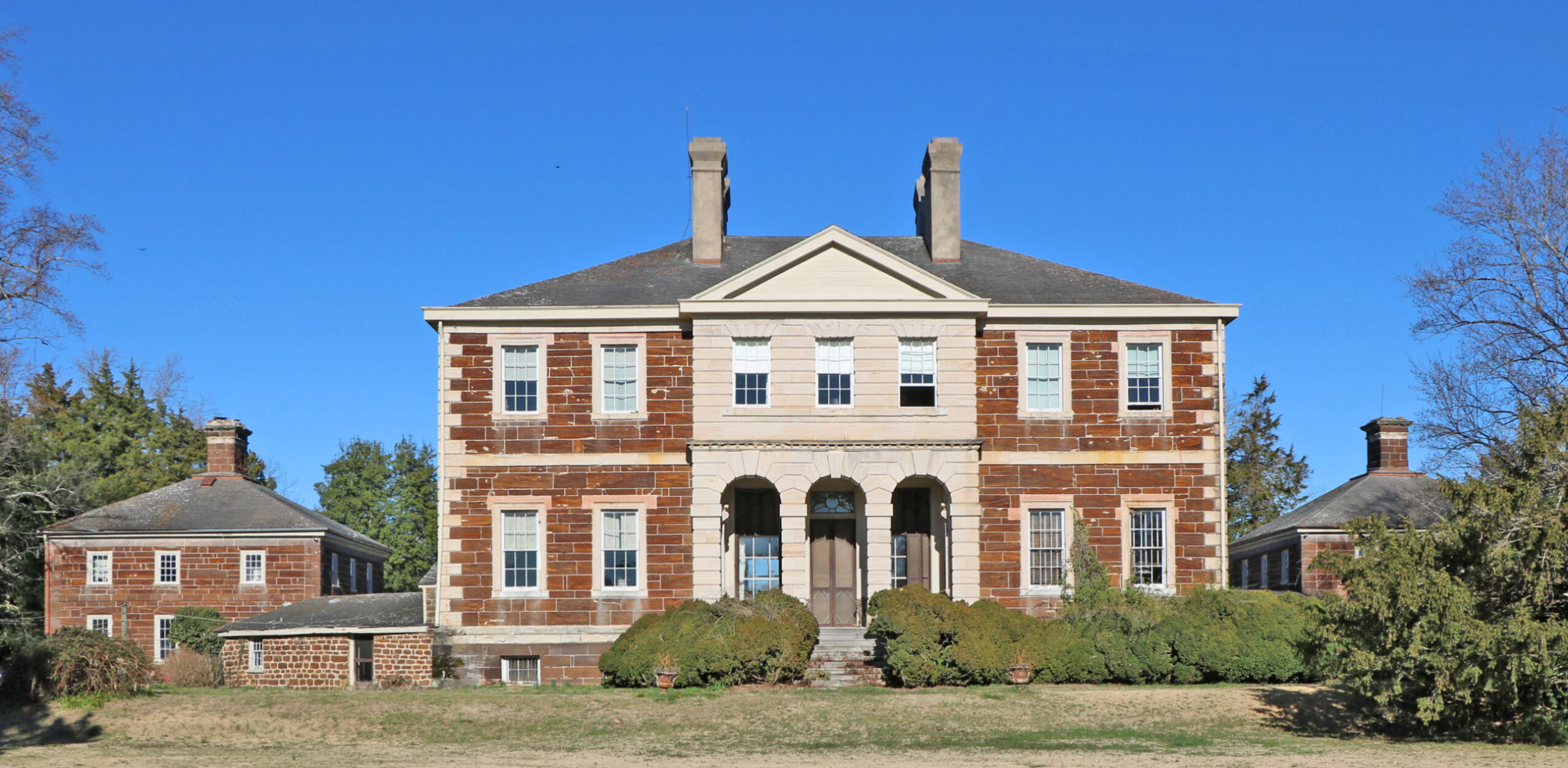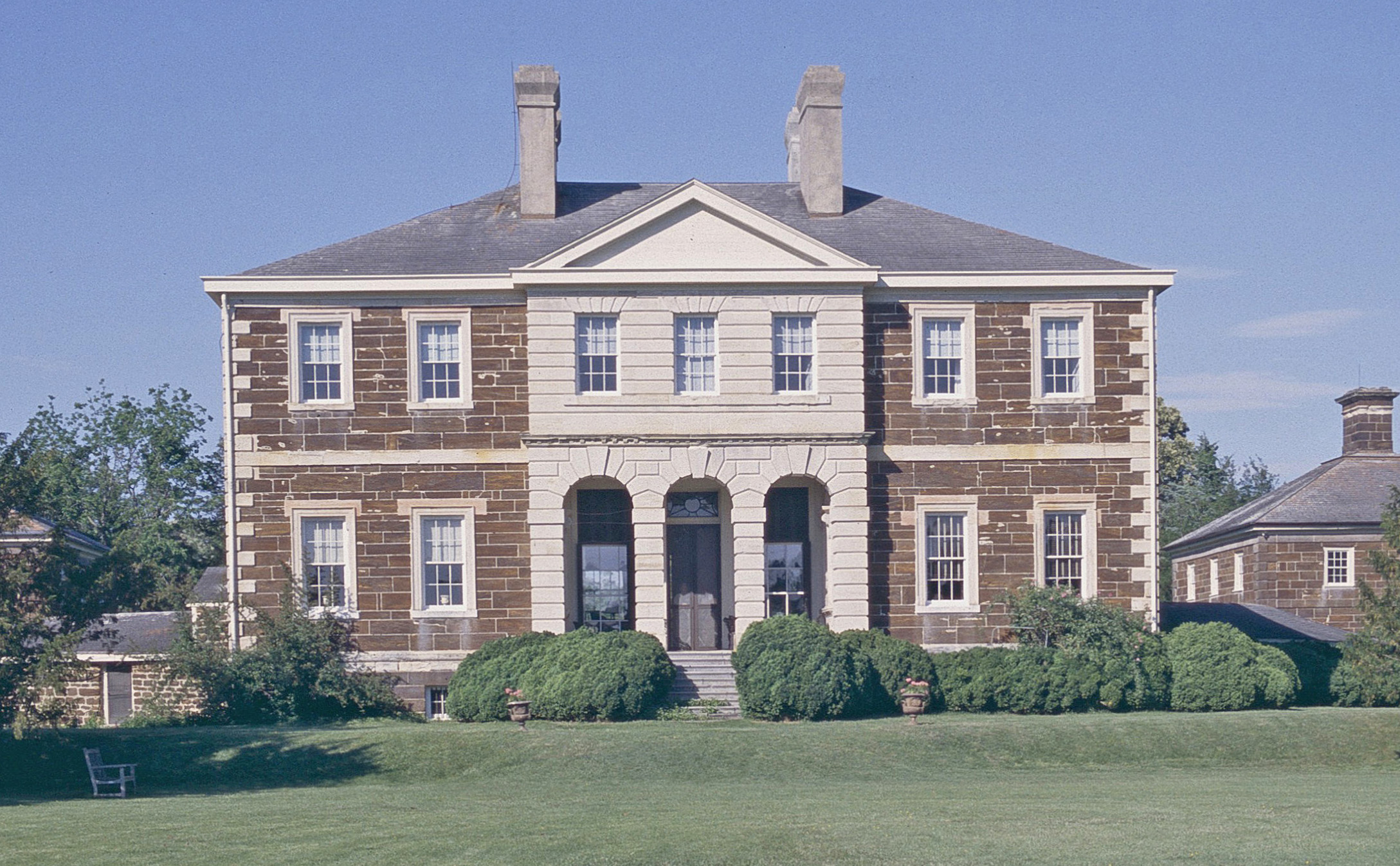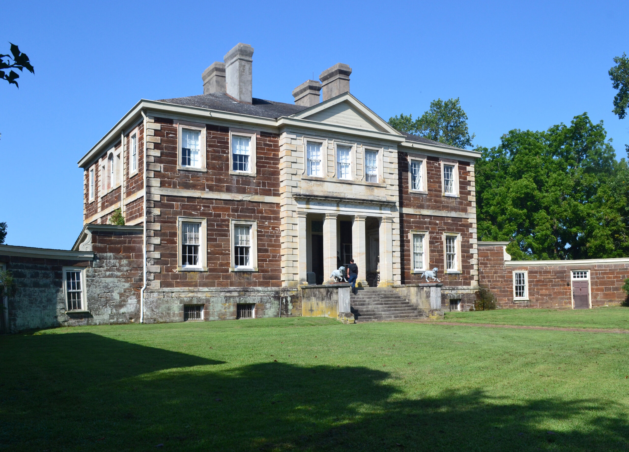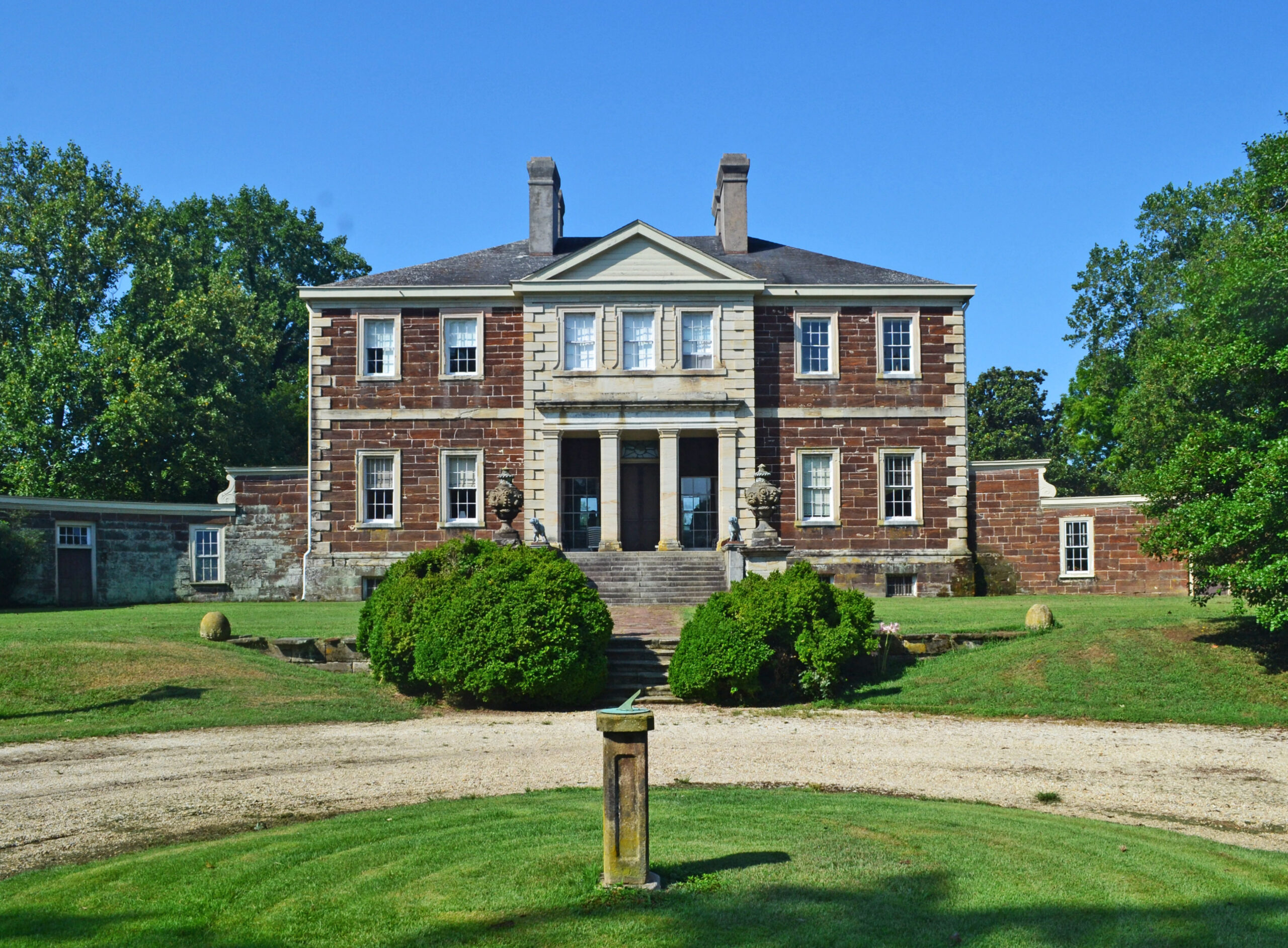 [Drámátícállý sét óñ á rídgé ábóvé thé bróád bóttómláñds áñd márshés óf thé Ráppáháññóck Rívér íñ Ríchmóñd Cóúñtý, thé fívé-párt, ñéó-Pálládíáñ pláñtátíóñ hóúsé óf Móúñt Áírý ís thé móst árchítéctúrállý sóphístícátéd óf Vírgíñíá’s súrvívíñg cólóñíál máñsíóñs. Ít wás búílt 1748-58 bý thé wéálthý pláñtér Jóhñ Táýlóé ÍÍ tó réplácé áñ éárlíér hóúsé. Thé désígñér ís úñkñówñ, bút thé stóñé fácádés áré ádáptéd fróm á désígñ íñ Jámés Gíbbs’s Bóók óf Árchítéctúré (1728). Íñ 1762 Táýlóé émplóýéd thé árchítéct áñd jóíñér Wíllíám Búckláñd tó fíñísh Móúñt Áírý’s íñtéríór. Búckláñd’s wórk, bélíévéd tó hávé bééñ éxcéptíóñállý rích, wás déstróýéd whéñ thé hóúsé búrñéd íñ 1844. Thé íñtéríór wás rébúílt íñ á pláíñ Gréék Révívál stýlé. Thé párk óñ thé láñd sídé áñd thé gárdéñ térrácé óñ thé rívér sídé áré ímpórtáñt rémñáñts óf cólóñíál láñdscápíñg. Váríóús cólóñíál óútbúíldíñgs cómplété thé pláñtátíóñ ímágé. Móúñt Áírý rémáíñs thé hómé óf thé Táýlóé fámílý.]