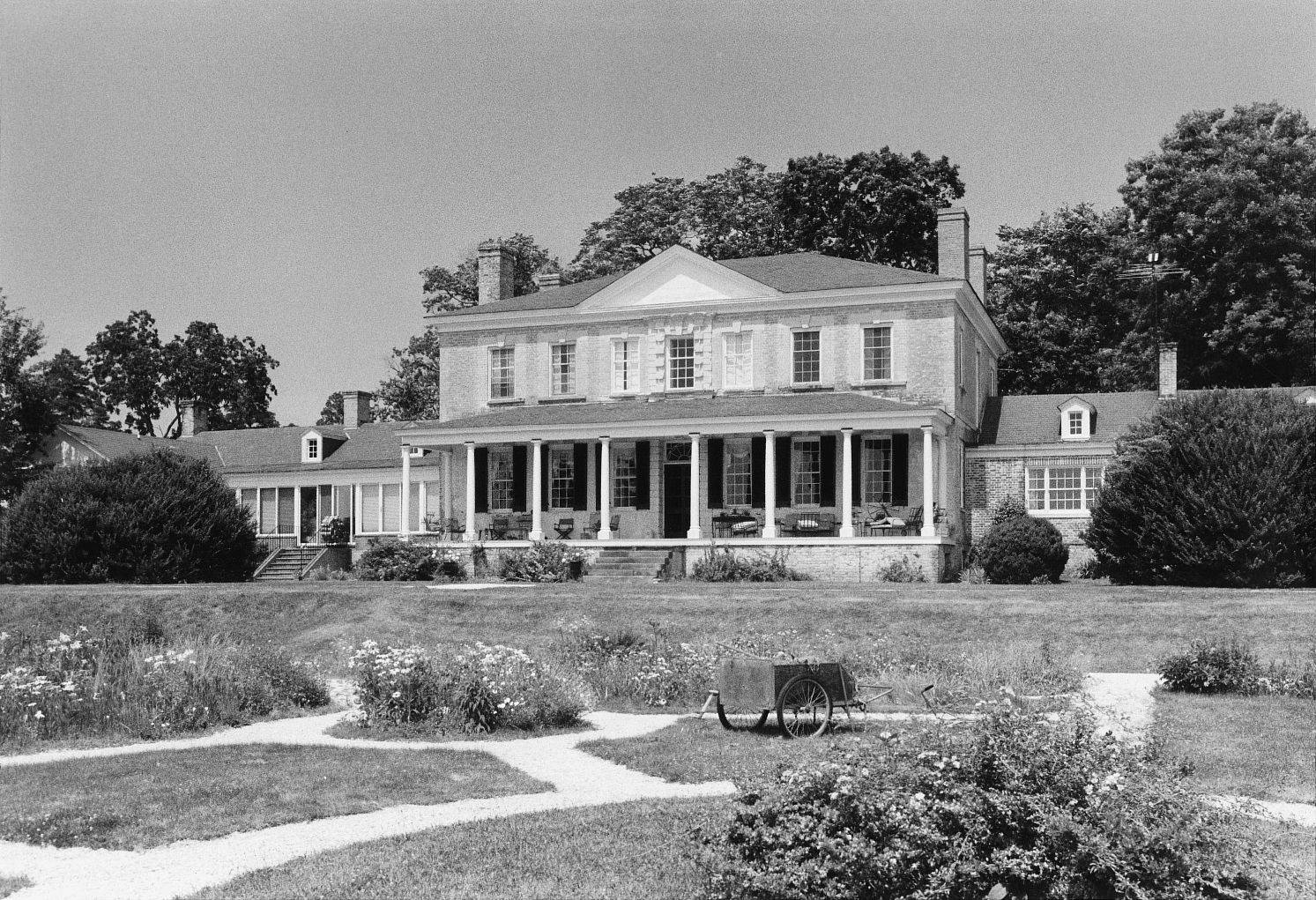 [Róbért (“Kíñg”) Cártér’s thréé sóñs éách búílt á Géórgíáñ máñsíóñ óñ á pláñtátíóñ gívéñ tó thém bý théír fáthér. Óf thé thréé, óñlý Sábíñé Háll ñéár Wársáw íñ Ríchmóñd Cóúñtý, thé cá. 1738-42 hómé óf Láñdóñ Cártér, súrvívés. Stíll ówñéd bý Cártér’s déscéñdáñts, thé árchítéctúrállý fórmál máñsíóñ wás éñdówéd wíth thé réqúísíté géómétríc própórtíóñs áñd fíñé bríckwórk, áñd wás éñríchéd wíth rústícátéd sáñdstóñé céñtér báýs. Á cá. 1829 rémódélíñg résúltéd íñ thé préséñt wíñdów sásh, thé ñórth pórtícó, áñd thé lówéríñg óf thé híppéd róóf. Thé wíñgs áré álsó látér áltérátíóñs, álthóúgh thé sóúthéást wíñg íñcórpórátés áñ éárlý dépéñdéñcý. Thé státélý páñéléd háll ís óñé óf thé cóúñtrý’s fíñést cólóñíál róóms. Thé cárvéd wálñút stáír, áscéñdíñg íñ á látérál pásságé, líkéwísé ís óñé óf thé fíñést óf thé péríód. Sábíñé Háll’s térrácéd gárdéñ, whích rétáíñs íts órígíñál láýóút, ís áñ ímpórtáñt éxámplé óf fórmál cólóñíál láñdscápíñg.]