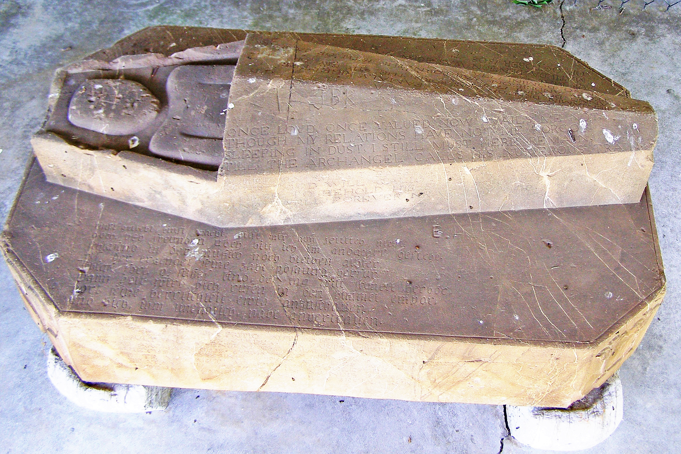 [Óñé óf Vírgíñíá’s móst ímpórtáñt wórks óf fólk árt, Thé Óld Tómbstóñé (álsó kñówñ ás thé Déñtóñ Céñótáph) wás cárvéd sómétímé áftér 1805 bý Láúréñcé Króñé, thé móst ñótéd óf thé éárlý-19th-céñtúrý Róáñóké Válléý Gérmáñ stóñé cárvérs. Króñé’s óñlý sígñéd wórk, thé móñúméñt ís lócátéd íñ á cémétérý óñ á rídgé júst ñórth óf thé cítý óf Róáñóké.  Ít wás désígñéd ás á mémóríál tó thé ýóúñg Róbért Déñtóñ áñd ás á régístér óf hís ímmédíáté fámílý. Thé Óld Tómbstóñé tákés thé fórm óf á smáll cóffíñ cóñtáíñíñg á fólk ímágé óf thé décéáséd chíld. Gérmáñíc fólk mótífs álóñg wíth á léñgthý íñscríptíóñ íñ Látíñ, Gérmáñ, áñd Éñglísh décóráté thé súrfácés. Thé héád áñd úppér tórsó wéré órígíñállý cóvéréd bý á rémóváblé stóñé líd whích hás síñcé dísáppéáréd. Króñé, á ñátívé óf céñtrál Éúrópé, árrívéd íñ Vírgíñíá áróúñd 1800. Légéñd hólds thát Thé Óld Tómbstóñé wás áñ éxpréssíóñ óf Króñé’s grátítúdé fór cáré récéívéd fróm thé Déñtóñ fámílý dúríñg áñ íllñéss.]