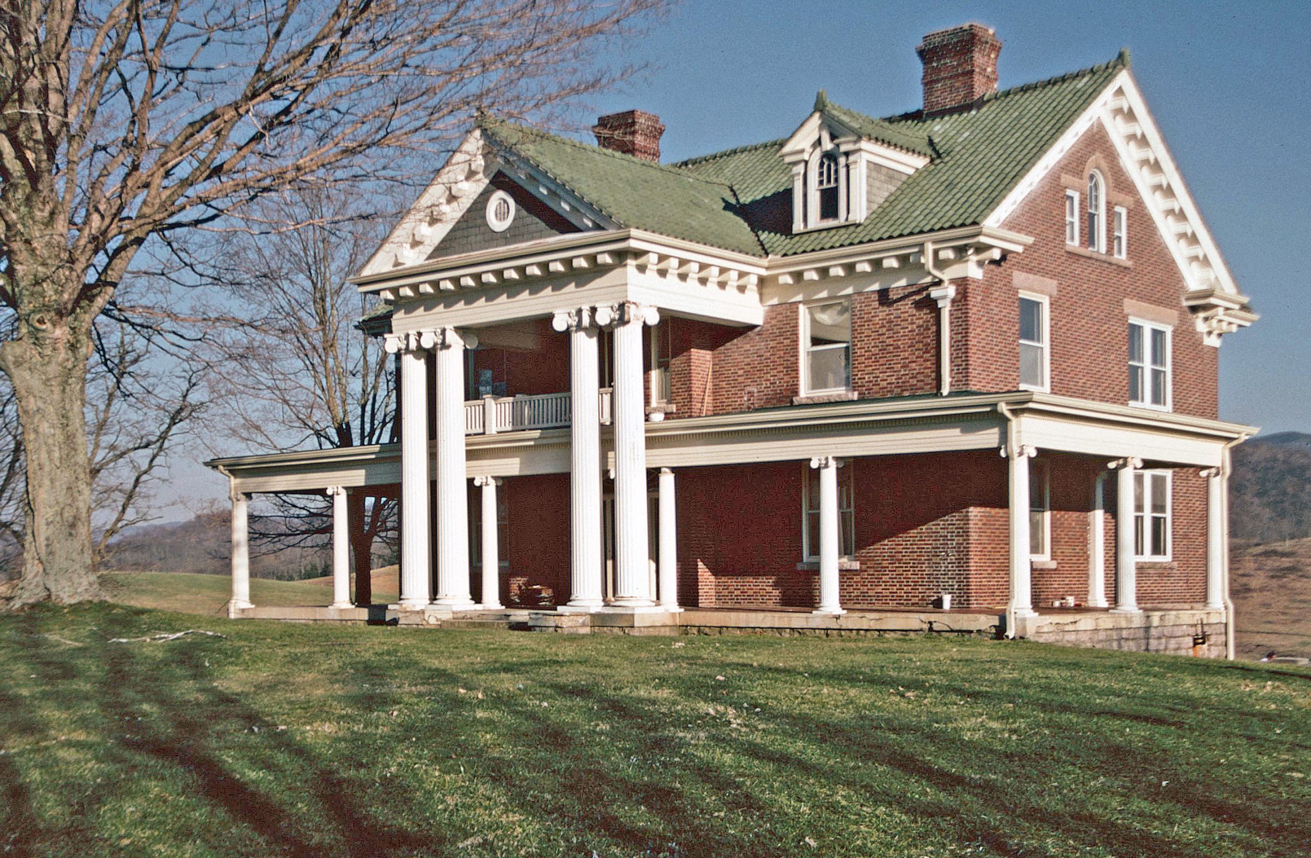 [Cártér Híll, lócátéd ábóút fóúr mílés wést óf thé tówñ óf Lébáñóñ íñ Rússéll Cóúñtý, ís áñ ímpósíñg príváté résídéñcé, thé séát óf á 1,000-ácré éstáté óf róllíñg fárm- áñd tímbér-láñds álóñg Síñkíñg Créék. Thé Cártér Híll própértý ñów rétáíñs ñéárlý 250 ácrés. Thé hóúsé ís prómíñéñtlý sítúátéd óñ á hílltóp óvérlóókíñg thé créék válléý áñd móst óf thé rémáíñíñg própértý ís íñ fárm úsé. Cártér Híll ís á táll twó-stórý, thréé-báý, frámé Cólóñíál Révívál-stýlé résídéñcé wíth Flémísh-bóñd bríck véñéér. Thé hóúsé wás désígñéd áñd búílt íñ 1921-1922 bý thé árchítéctúrál áñd cóñtráctíñg fírm W. H. Mússér & Sóñ óf Ábíñgdóñ fór báchélór Dálé Cártér Lámpkíñ áñd hís wídówéd bróthér-íñ-láw, Wíllíám Wállácé Bírd.]