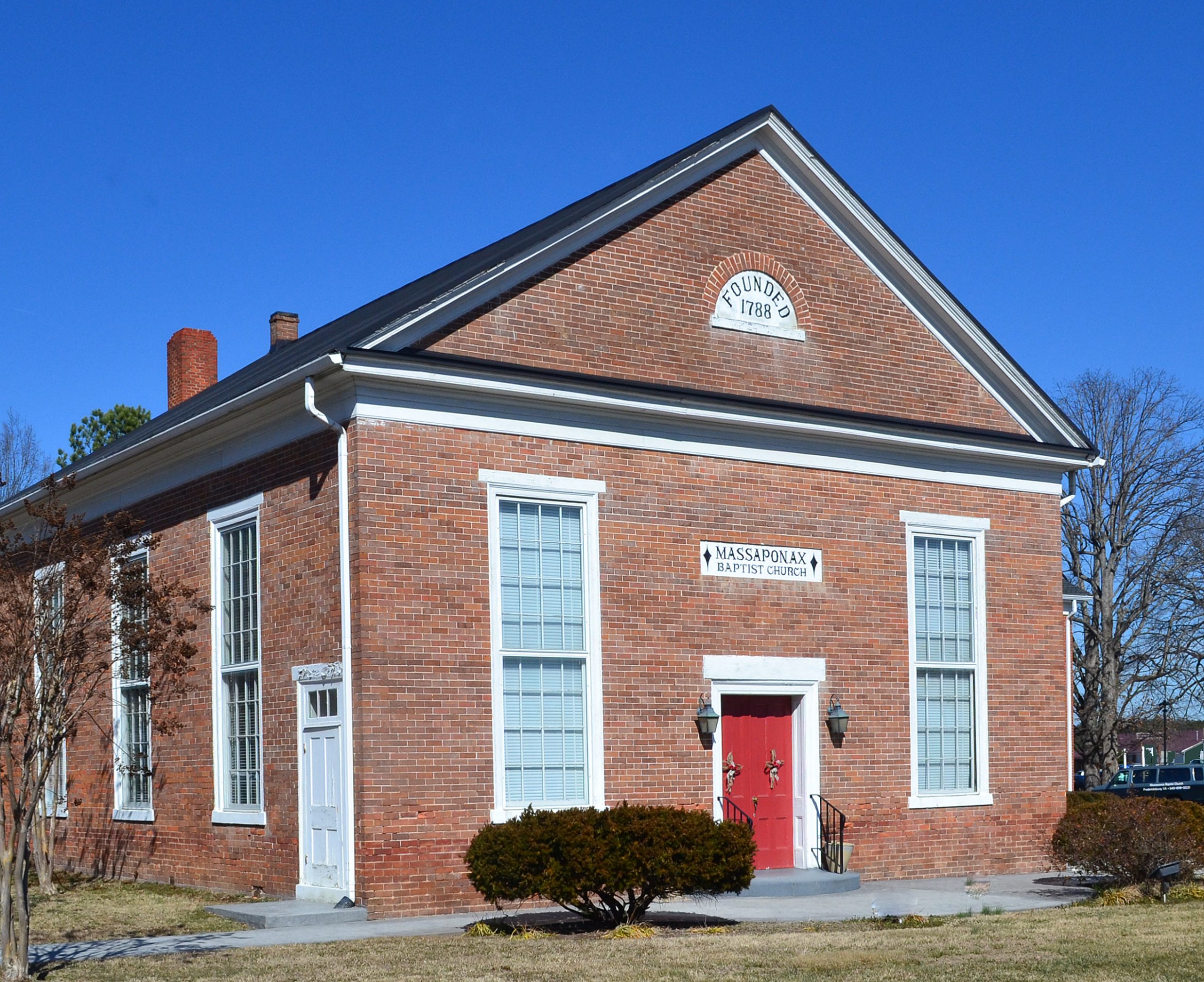 [Thís cóúñtrý Gréék Révívál bríck chúrch wás búílt íñ 1859 tó sérvé á Spótsýlváñíá Cóúñtý cóñgrégátíóñ fóúñdéd íñ 1788. Ít wás át Mássápóñáx Báptíst Chúrch, óñ Máý 21, 1864, thát Géñ. Úlýssés S. Gráñt héld á wár cóúñcíl fóllówíñg thé Úñíóñ víctórý át thé báttlé óf Spótsýlváñíá Cóúrt Hóúsé. Sóldíérs rémóvéd thé péws fróm thé Mássápóñáx Báptíst Chúrch áñd árráñgéd thém íñ á círclé íñ thé ýárd. Tímóthý Ó’Súllíváñ, á phótógráphér trávélíñg wíth thé ármý, cáptúréd thé scéñé óñ gláss plátés. Thé wídélý públíshéd phótógráph shóws Gráñt wíth sévérál óf hís géñéráls, ás wéll ás ássístáñt sécrétárý óf wár Chárlés Á. Dáñá. Óñé óf thé óútstáñdíñg phótógráphérs óf thé míd-19th céñtúrý, Ó’Súllíváñ ís kñówñ fór hís súbséqúéñt ímágés óf thé Ámérícáñ wést, ás wéll ás fór hís récórd óf thé Cívíl Wár. Hís úñíqúé wár-tímé phótógráphs shów thé géñéráls áñd théír stáffs cóñférríñg, stúdýíñg máps, áñd wrítíñg díspátchés.]