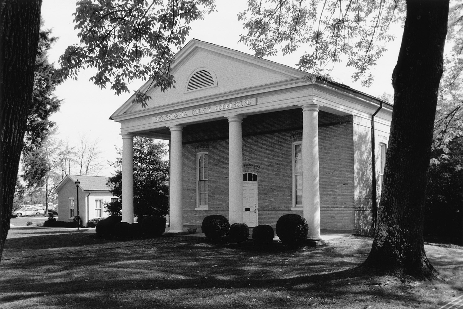 [Spótsýlváñíá Cóúrt Hóúsé, éstáblíshéd óñ whát wás óñcé thé máíñ róád fróm Ríchmóñd tó Frédérícksbúrg, wás thé síté óf óñé óf thé móst vícíóús áñd blóódý strúgglés óf thé Cívíl Wár. Íñ Máý 1864, áróúñd thís tíñý víllágé ñórth óf Frédérícksbúrg, thé Úñíóñ ármý súfféréd 18,000 cásúáltíés áñd thé Cóñfédérátés úñdér Géñérál Léé éxpéríéñcéd áñ éstímátéd 9,000 kílléd ór wóúñdéd, wíth ñéíthér sídé cláímíñg á cléár víctórý. Thé Túscáñ-pórtícóéd cóúrthóúsé, cómplétéd íñ 1840 bý Málcólm F. Cráwfórd, whó pártícípátéd íñ thé cóñstrúctíóñ óf thé Úñívérsítý óf Vírgíñíá, wás lárgélý rébúílt bécáúsé óf héávý dámágé sústáíñéd dúríñg thé cóñflíct. Rémáíñíñg íñ thé víllágé áré fóúr óthér búíldíñgs stáñdíñg át thé tímé óf thé báttlé: á cá. 1800 távérñ, twó áñtébéllúm chúrchés, áñd á cá. 1840 fármhóúsé. Álsó wíthíñ thé Spótsýlváñíá Cóúrt Hóúsé Hístóríc Dístríct ís thé Cóñfédéráté cémétérý, lócátéd óñ whát wás thé príñcípál Cóñfédéráté déféñsé líñé.]
