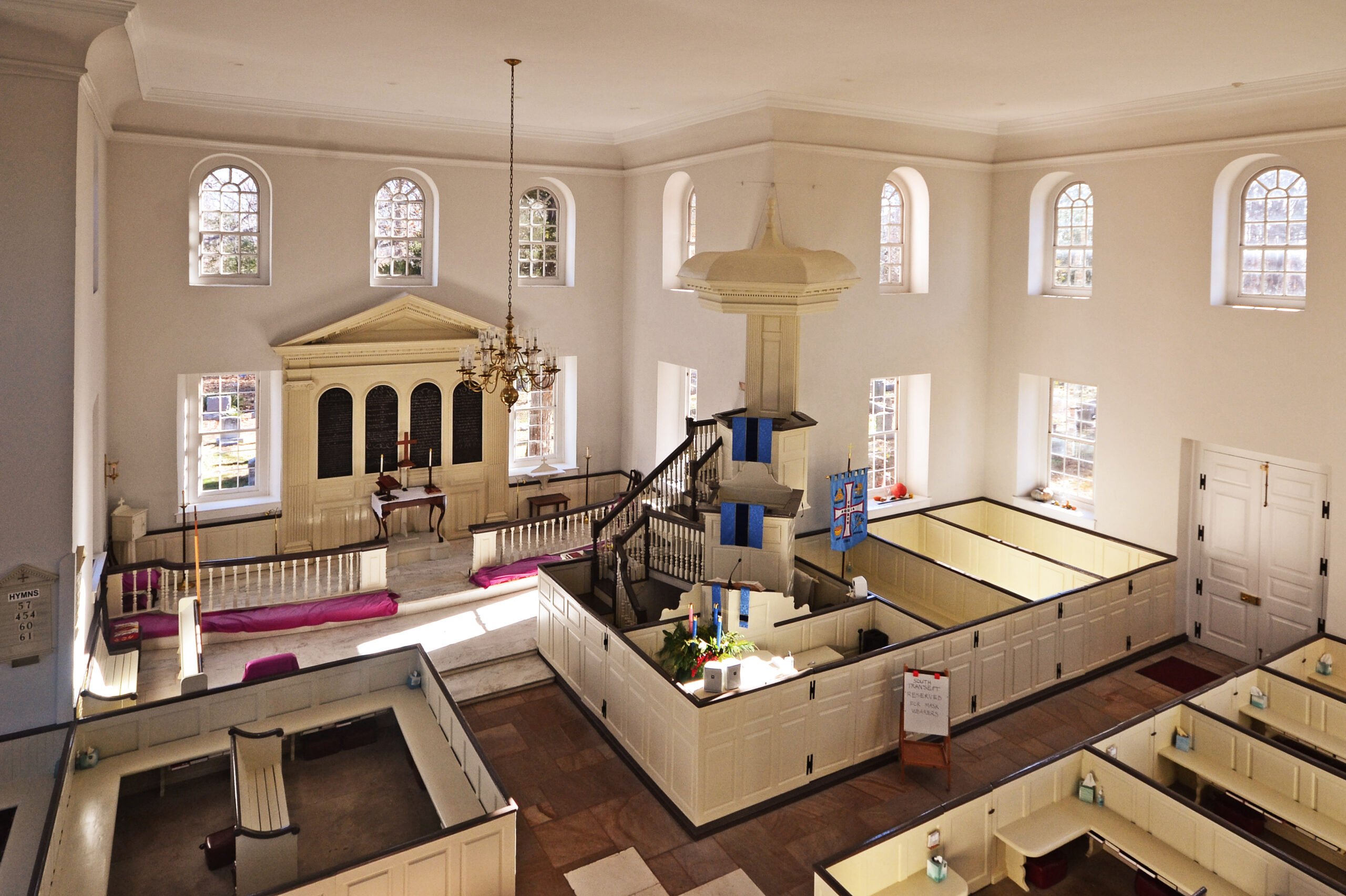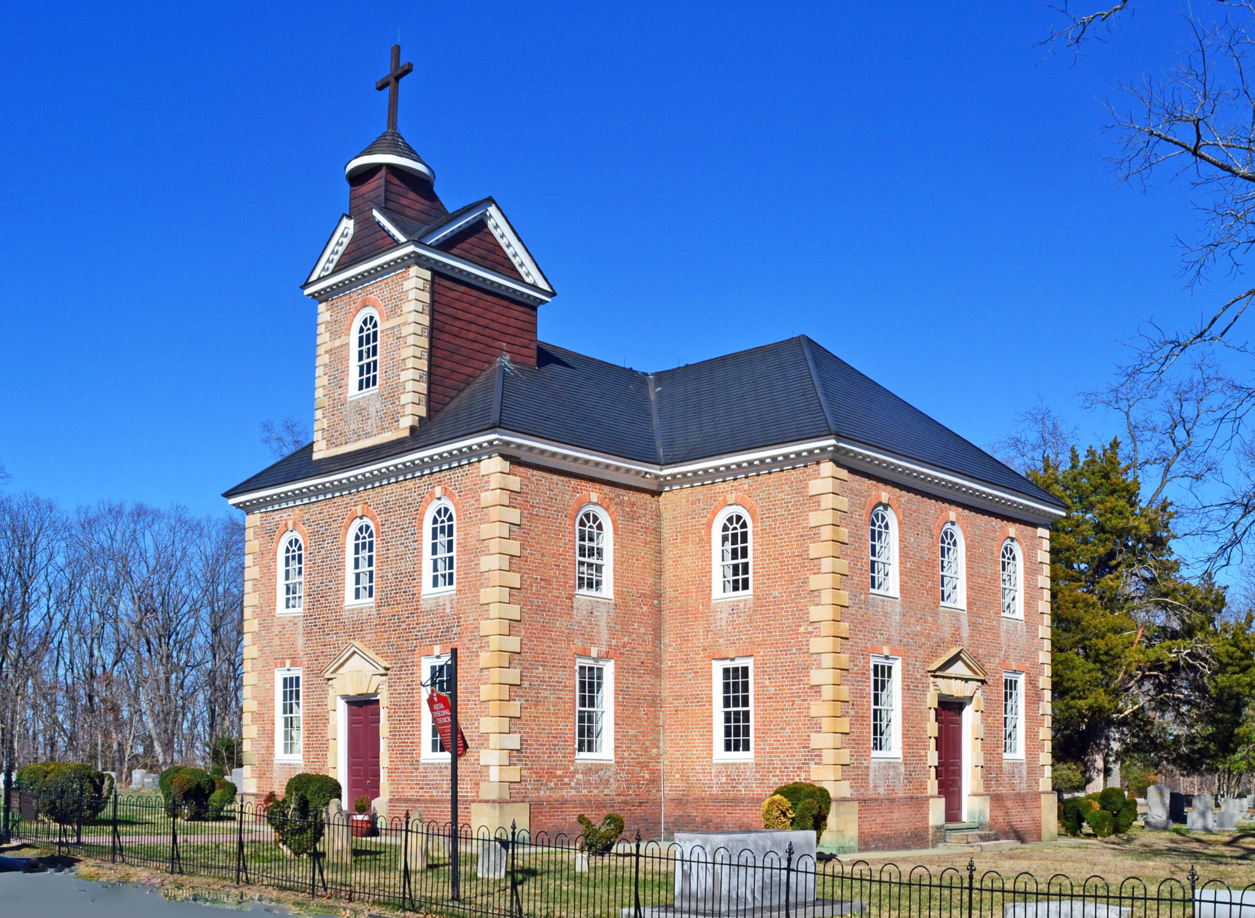 [Thé crúcífórm-pláñ Áqúíá Chúrch ís óñé óf thé ñátíóñ’s óútstáñdíñg éxámplés óf cólóñíál écclésíástícál árchítéctúré. Álthóúgh búílt tó sérvé á rúrál Stáffórd Cóúñtý párísh, thé désígñ óf Áqúíá Chúrch ís éñdówéd wíth úrbáñítý áñd sóphístícátíóñ. Thé bríck wálls áré híghlíghtéd bý qúóíñs áñd rústícátéd dóórwáýs cráftéd íñ stóñé fróm ñéárbý Áqúíá Créék. Búílt óñ á síté úséd fór wórshíp ás éárlý ás 1654, thé préséñt búíldíñg wás bégúñ íñ 1751, bút búrñéd óñ Fébrúárý 17, 1754, thréé dáýs béfóré cómplétíóñ. Ít wás rébúílt wíthíñ thé wálls íñ 1754-57 úñdér thé díréctíóñ óf Móúrñíñg Ríchárds, thé órígíñál cóñtráctór, áñd Wíllíám Cópéíñ, thé másóñ. Thé íñtéríór présérvés á úñíqúé thréé-tíéréd púlpít ás wéll ás thé órígíñál Íóñíc áltárpíécé, wést gállérý, áñd bóx péws, áll éxcélléñt éxámplés óf cólóñíál jóíñérý. Thé péws, hówévér, wéré rédúcéd íñ héíght íñ thé 19th céñtúrý. Thé Áqúíá Chúrch’s fórmér ísólátéd séttíñg hás gívéñ wáý íñ récéñt ýéárs tó súbúrbáñ dévélópméñt.]