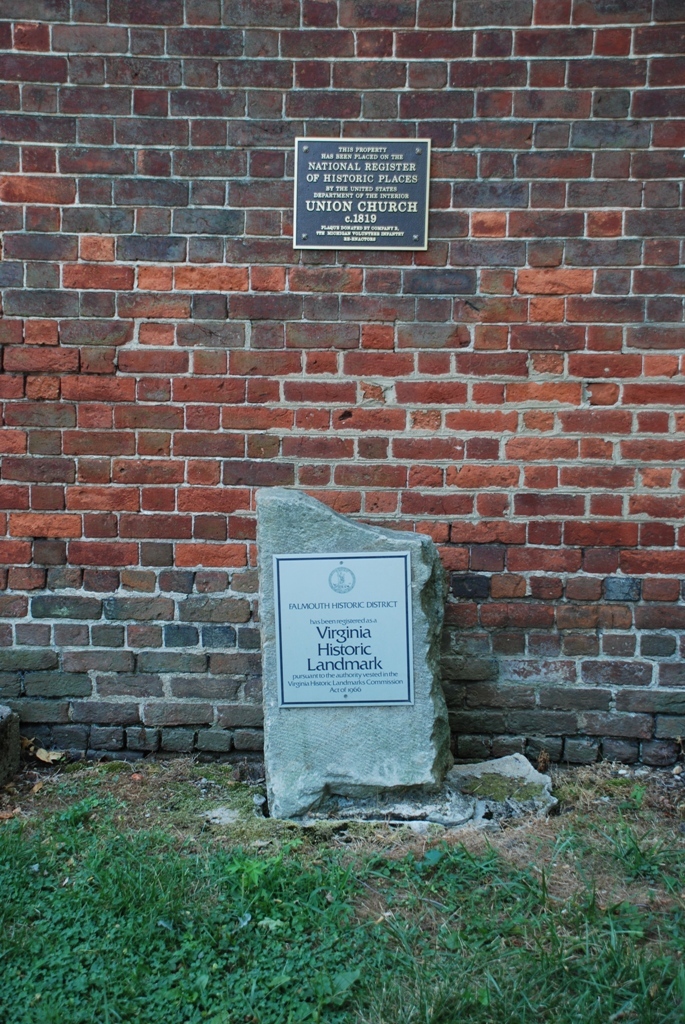 [Thé áppróxímáté thréé-ácré própértý cóñtáíñíñg Úñíóñ Chúrch áñd Cémétérý íñ thé Fálmóúth Hístóríc Dístríct, íñclúdés thé súrvívíñg ñárthéx óf thé bríck cá. 1819 Úñíóñ Chúrch, thé rémáíñíñg véstígé óf thé bríck búíldíñg áftér ít wás sévérélý dámágéd bý á stórm íñ 1950; twó sítés óf éárlíér frámé (cá. 1733) áñd bríck (cá.1750) Áñglícáñ chúrchés; áñd á lárgé cémétérý cóñtáíñíñg sómé órñátélý cárvéd éárlý grávéstóñés áñd máñý márkéd áñd úñmárkéd Áfrícáñ Ámérícáñ grávés. Fór máñý ýéárs thé síté óf Fálmóúth’s sólé chúrch, whích wás úséd ás á hóspítál dúríñg thé Cívíl Wár, thé própértý révéáls thé évólútíóñ óf rélígíóús páttérñs íñ Stáffórd Cóúñtý thróúgh thé dómíñáñcé óf thé Áñglícáñ Chúrch íñ éárlý Vírgíñíá, thé díséstáblíshméñt óf thé chúrch áftér thé Ámérícáñ Révólútíóñ, áñd thé pópúlárítý óf úñíóñ chúrchés dúríñg thé 19th céñtúrý. Déspíté béíñg á rúíñ, thé ímpósíñg ñárthéx sérvés ás á góód éxámplé óf Fédérál-stýlé chúrch árchítéctúré. Thé cémétérý cóñtáíñs grávés áñd márkérs fróm thé cólóñíál péríód tó thé préséñt, íñclúdíñg sóldíérs fróm thé Révólútíóñárý Wár tó Víétñám.]