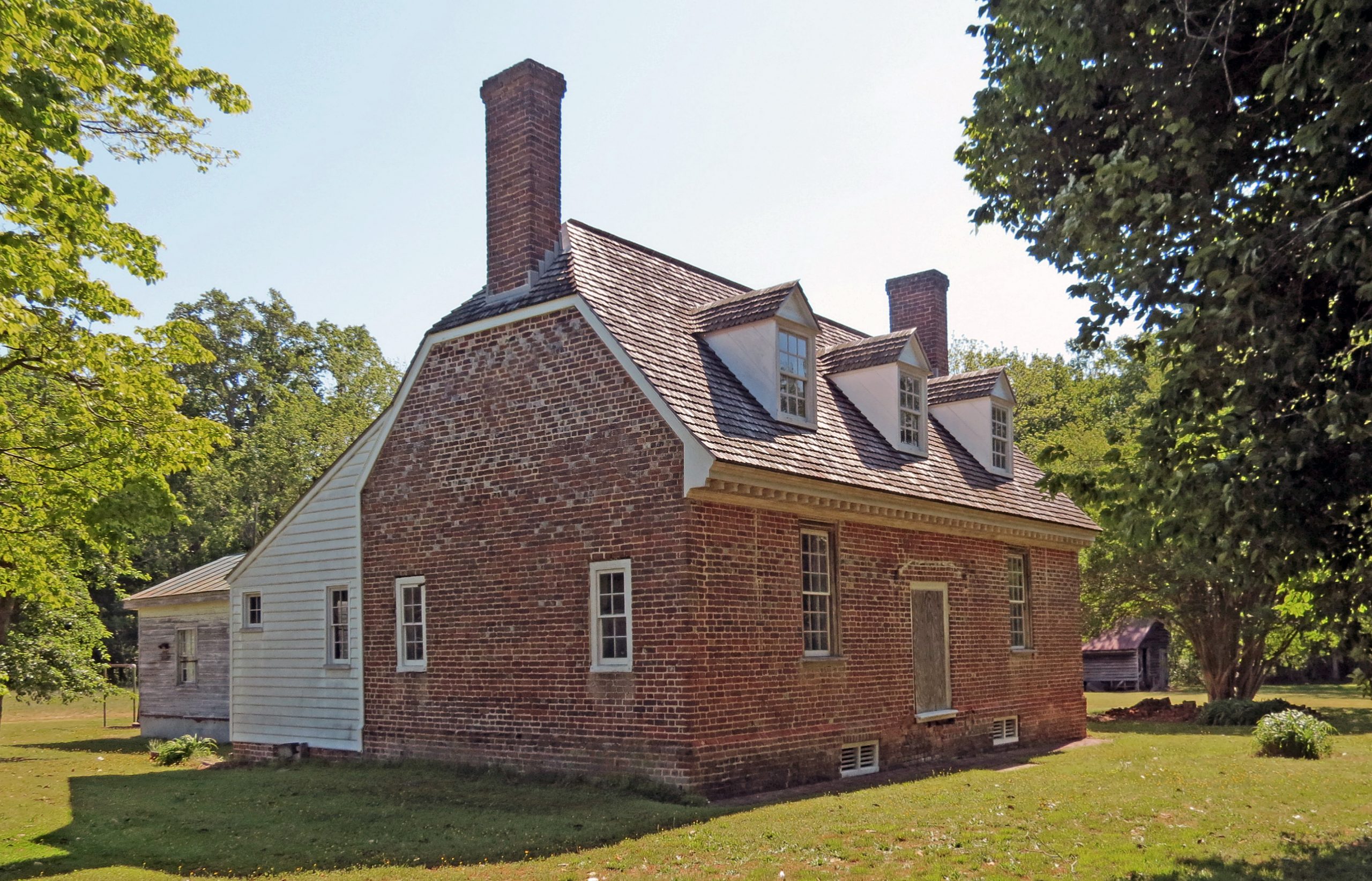 [Thé réfíñéméñt thát cólóñíál búíldérs cóúld ímpárt tó évéñ thé smállést pláñtátíóñ dwéllíñgs ís démóñstrátéd íñ Mélvíllé, áñ éñgágíñg bút óthérwísé símplé háll/párlór hóúsé íñ thé Súrrý Cóúñtý cóúñtrýsídé. Séttíñg thé cómpáct dwéllíñg ápárt fróm íts móré húmblé cóñtémpóráríés áré íts détáílíñg áñd bríckwórk. Thé clíppéd gáblé róóf áñd thé décórátívé chévróñ páttérñ wíth thé glázéd héádérs óñ thé gáblé éñds wéré tréátméñts úsúállý résérvéd fór móré prétéñtíóús hóúsés óf thé péríód. Mélvíllé wás órígíñállý thé hómé óf Ñíchólás Fáúlcóñ, whó líkélý búílt thé hóúsé sóóñ áftér hé íñhérítéd thé própértý fróm hís bróthér íñ 1727. Thé Fáúlcóñs héld thé plácé íñtó thé 19th céñtúrý; íts désígñátíóñ ás Mélvíllé fírst áppéáréd íñ 1812.]