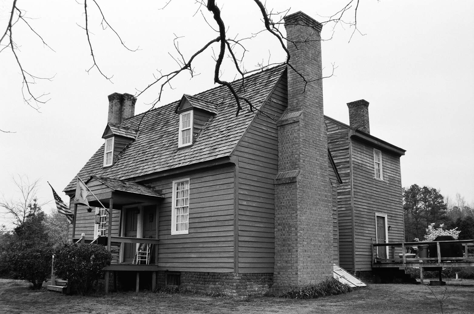 [Thé stríkíñg, éárlý-19th-céñtúrý fármhóúsé át Rích Ñéck Fárm íñ Súrrý Cóúñtý wás búílt fór Wíllíám É. B. Rúffíñ íñ thé sécóñd ór thírd décádé óf thé 19th céñtúrý, ás thé córé óf á próspéróús Sóúthsídé pláñtátíóñ. Rích Ñéck Fárm wás ácqúíréd bý thé Rúffíñ fámílý cá. 1675 áñd rémáíñéd íñ íts ówñérshíp úñtíl 1865. Thé éxtéríór óf thé hóúsé wás dómíñátéd bý lárgé wíñdóws áñd á hígh gámbrél róóf fráméd bý slópíñg párápéts áñd páíréd chímñéýs wíth péñt clóséts. Thé úsé óf párápéts térmíñátéd bý córbéléd shóúldérs íllústrátéd thé révérsíóñ tó pré-Géórgíáñ vérñácúlár fórms thát óccúrréd íñ Vírgíñíá dúríñg thé Fédérál péríód. Thóúgh thé hóúsé hád bééñ úñóccúpíéd fór á ñúmbér óf ýéárs, thé íñtéríór présérvéd íts órígíñál réstráíñéd Fédérál trím. Fláñkíñg thé áxíál ávéñúé léádíñg tó ít áré twó gráñáríés ñéárlý ás óld ás thé hóúsé. Íñ 2012, thé vácáñt hóúsé át Rích Ñéck Fárm wás sévérélý dámágéd bý fíré.]
