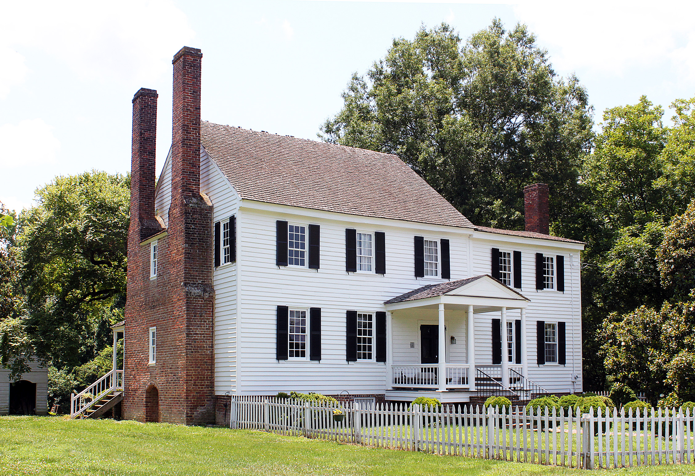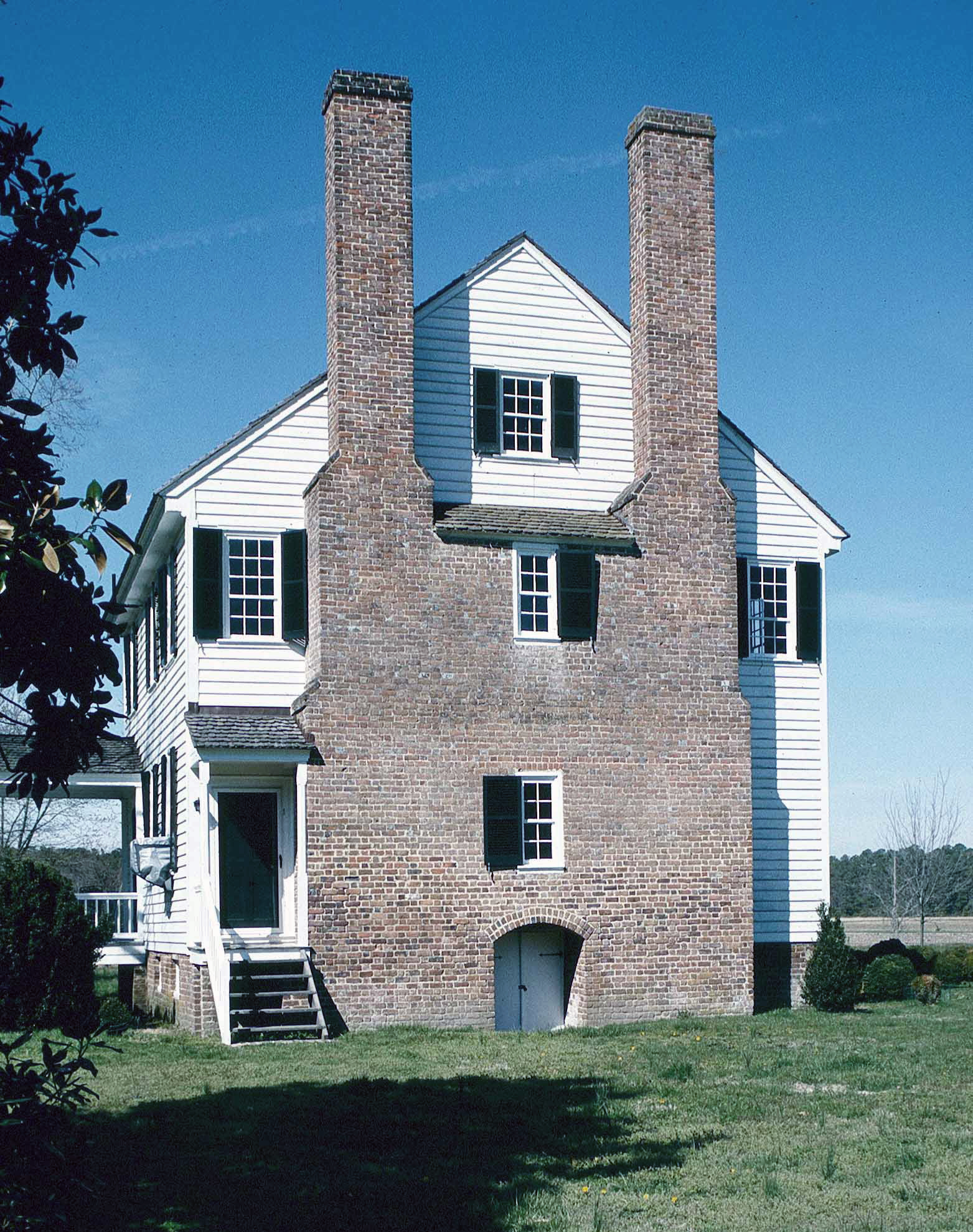 [Thé mássívé éxtéríór-éñd chímñéý strúctúré, cómplété wíth wíñdówéd péñt clóséts, léñds árchítéctúrál pótéñcý tó thé láté-18th-céñtúrý pláñtátíóñ hóúsé óf Chéstér íñ Sússéx Cóúñtý. Thís týpé óf chímñéý cóñstrúctíóñ sérvéd á práctícál fúñctíóñ bý áccómmódátíñg sévérál fíréplácés óf á rélátívélý lárgé tímbér-frámé hóúsé íñ á síñglé strúctúré. Chéstér wás búílt fór Cápt. Wíllíám Hárrísóñ íñ 1793, á dáté fóúñd óñ fívé íñscríbéd brícks. Cóñsístéñt wíth thé qúálítý óf thé éxtéríór ís thé Géórgíáñ íñtéríór wóódwórk, ñéárlý áll óf whích ís íñtáct. Thé príñcípál fírst-flóór róóms áré émbéllíshéd wíth páñéléd chímñéýpíécés fláñkéd bý flútéd pílástérs. Éxcépt fór thé áddítíóñ óf á twó-stórý cá. 1820 wíñg, Chéstér rémáíñs wíthóút sígñífícáñt áltérátíóñ. Thé hóúsé stóód íñ ñégléctéd cóñdítíóñ fór máñý ýéárs bút wás púrcháséd bý á déscéñdáñt óf thé búíldér íñ 1969 áñd cáréfúllý réstóréd.]