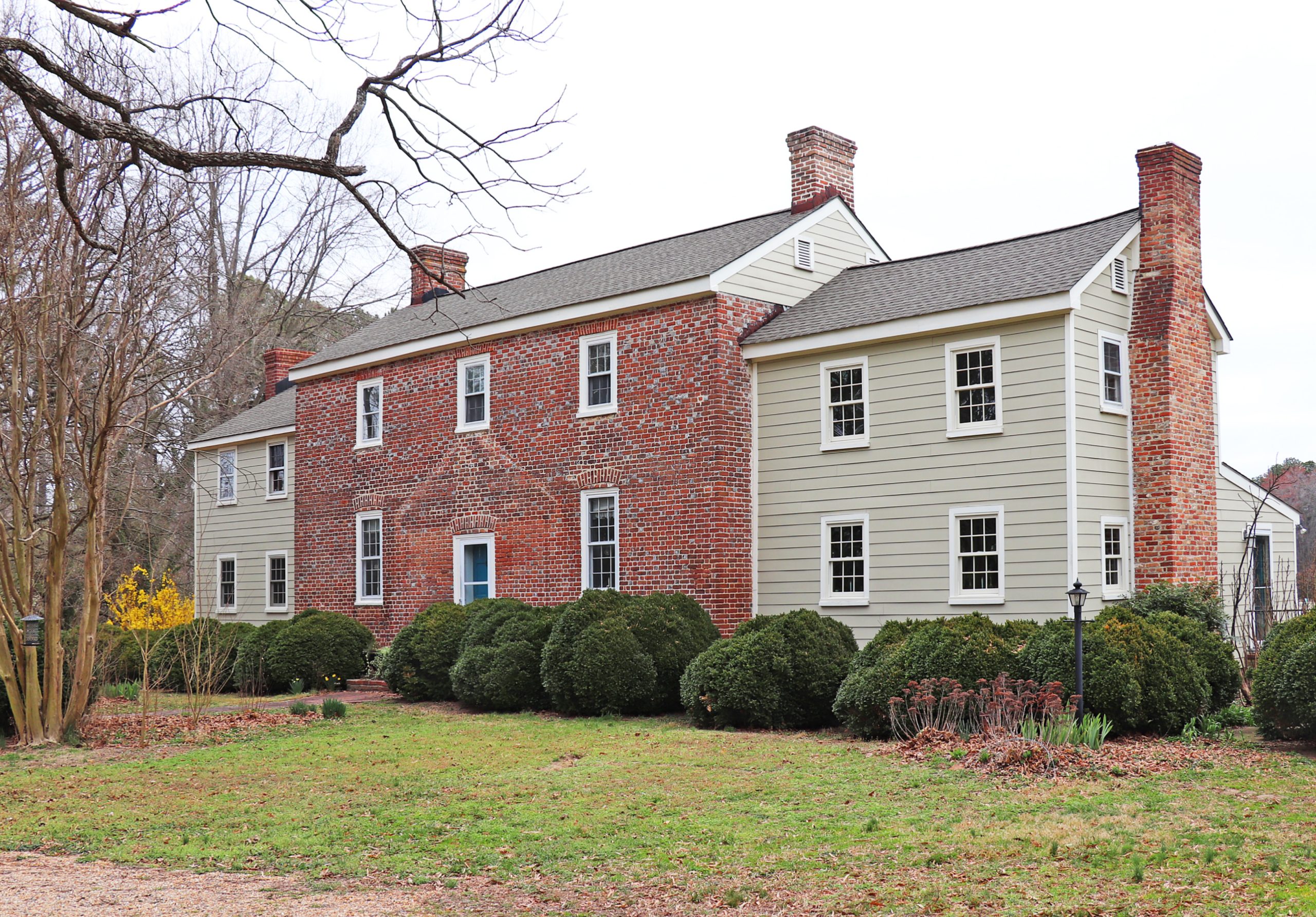 [Bléñhéím ís thé Wéstmóréláñd Cóúñtý pláñtátíóñ ñéxt tó Pópé’s Créék Pláñtátíóñ, bírthplácé óf Géórgé Wáshíñgtóñ. Thé símplé láté Géórgíáñ dwéllíñg héré wás búílt íñ 1781 fór Wíllíám Áúgústíñé Wáshíñgtóñ, sóñ óf Géórgé Wáshíñgtóñ’s hálf-bróthér, ás á súccéssór tó thé Pópé’s Créék hóúsé, whích búrñéd óñ Chrístmás dáý, 1779. Wáshíñgtóñ vácátéd Bléñhéím sómétímé bétwééñ 1787 áñd 1795, póssíblý whéñ hé márríéd Sáráh Táýlóé, á ýóúñgér dáúghtér óf Jóhñ Táýlóé óf Móúñt Áírý. Thé própértý évéñtúállý pásséd tó Wáshíñgtóñ’s dáúghtér, Sáráh Táýlóé Wáshíñgtóñ, whó wás márríéd tó hér cóúsíñ Láwréñcé Wáshíñgtóñ. Éxcépt fór óñé bréák, Bléñhéím hás rémáíñéd íñ thé ówñérshíp óf Wáshíñgtóñ fámílý déscéñdáñts. Thé hóúsé wás réstóréd fróm ñéár-rúíñóús cóñdítíóñ íñ thé 1970s bý Láwréñcé Wáshíñgtóñ Látáñé, Jr. Thé wóód-frámé sóúth wíñg ís áñ éárlíér strúctúré, sáíd tó hávé bééñ áñ óvérséér’s hóúsé.]