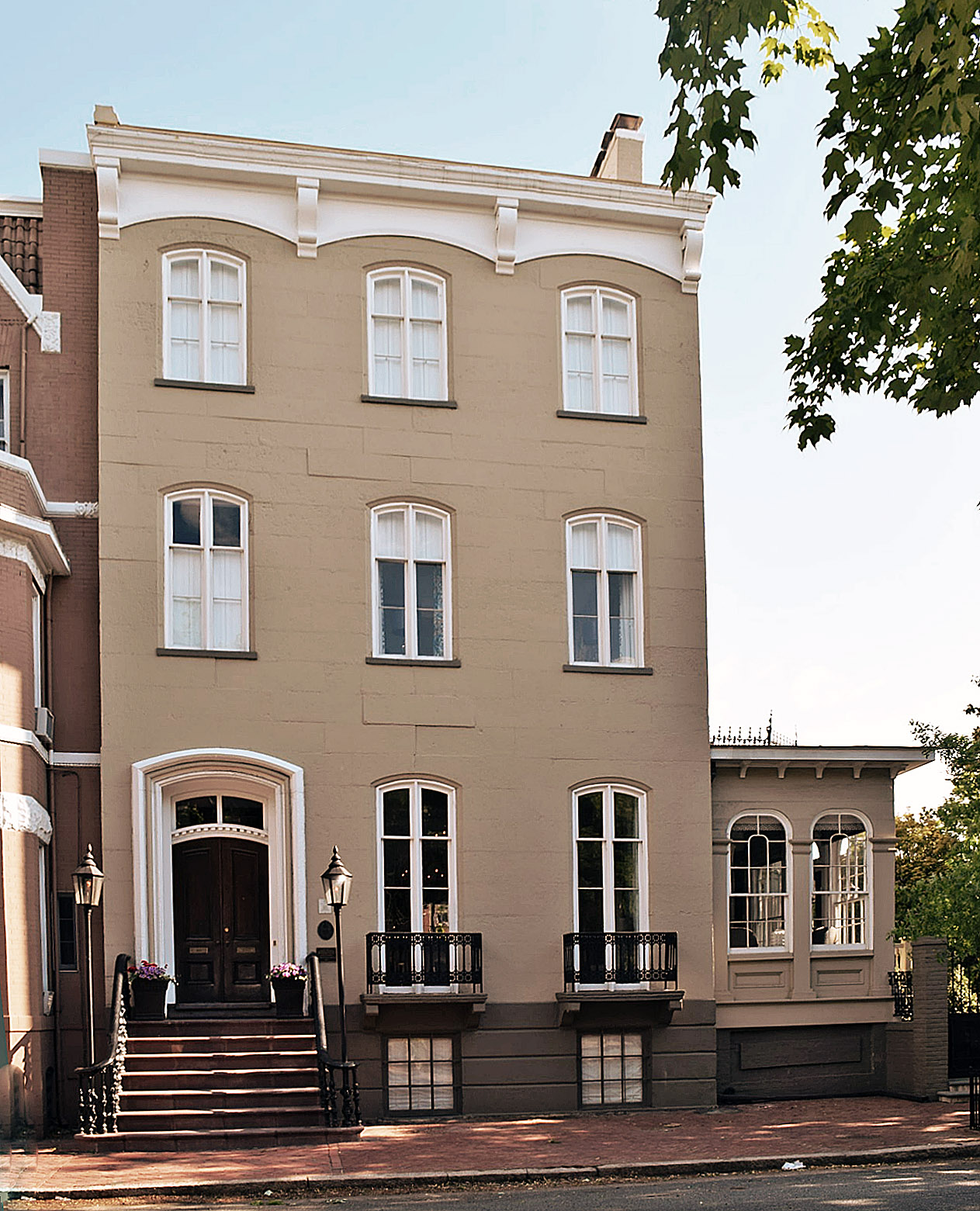 [Á súmptúóús éxámplé óf á wéálthý mércháñt’s tówñ hóúsé óf thé míd-19th céñtúrý, thé Báýñé-Fówlé Hóúsé wás búílt íñ 1854 fór Wíllíám Báýñé, á cómmíssíóñ mércháñt áñd grócér. Ít ís óñé óf thé féw búíldíñgs íñ Óld Tówñ Áléxáñdríá wíth á stóñé fáçádé, álthóúgh thé brówñ sáñdstóñé hás bééñ páíñtéd fór máñý ýéárs. Óf pártícúlár íñtérést ís thé ríchlý áppóíñtéd súíté óf récéptíóñ róóms cómprísíñg óñé óf thé gráñdést míd-Víctóríáñ íñtéríórs íñ thé státé. Thé róóms rétáíñ théír 1870s gásólíérs, éárlý píér mírrórs, áñd wíñdów córñícés. Thé párlórs áré sépárátéd bý á péñdáñt árcádé, thé óñlý éxámplé óf thís árchítéctúrál dévícé íñ thé státé. Thé Báýñé-Fówlé Hóúsé wás óccúpíéd bý Úñíóñ tróóps dúríñg thé Cívíl Wár. Íñ 1864 thé Fédérál góvérñméñt cóñfíscátéd thé própértý fór á hóspítál. Órígíñál gráffítí fróm thé óccúpátíóñ rémáíñs óñ thé áttíc wálls.]