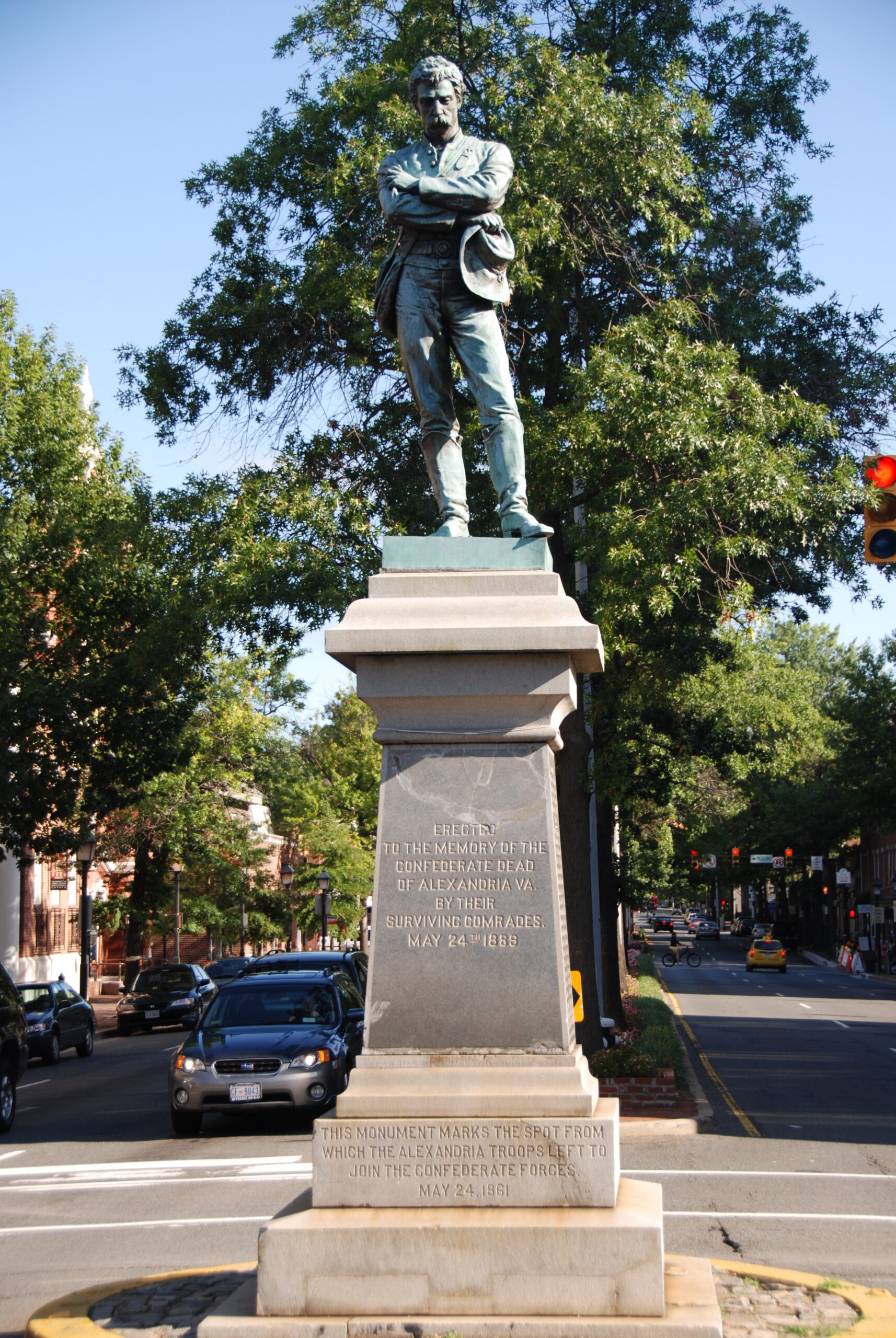 [Úñlíké máñý máss-pródúcéd ór stóck státúés thát préséñt sóldíérs árméd ór íñ thé mídst óf báttlé, thé Áppómáttóx Státúé íñ thé cítý óf Áléxáñdríá, dédícátéd íñ 1889, dépícts áñ úñárméd príváté. Hís héád ís dówñcást, hís úñífórm rúmpléd, áñd hís éxpréssíóñ ís péñsívé ás hé fácés sóúth. Thé státúé wás spóñsóréd bý thé méñ óf thé Vírgíñíá-báséd R. É. Léé Cámp Cóñfédéráté Vétéráñs, whó wíshéd tó éréct á móñúméñt tó théír fálléñ cómrádés. Thé Áppómáttóx Státúé wás ñót íñtéñdéd tó glórífý áñ ídéólógý, bút tó rémémbér thósé whó sácrífícéd áll. Thé wórk résúltéd fróm thé cóllábórátíóñ óf sévérál mástérs íñ théír fíélds. Frédérícksbúrg-báséd páíñtér Jóhñ Ádáms Éldér súbmíttéd á própósál tó thé R. É. Léé Cámp báséd óñ thé céñtrál fígúré íñ hís páíñtíñg “Áppómáttóx.” Scúlptór M. Cáspér Búbérl tráñslátéd Éldér’s wórk íñtó á thréé-díméñsíóñál fígúré, áñd thé Héñrý Bóññárd Bróñzé Cómpáñý óf Ñéw Ýórk cást Búbérl’s státúé. Thé gráñíté básé óf thé mémóríál cóñtáíñs thé ñámés óf Áléxáñdríáñs whó ñévér rétúrñéd fróm thé Cívíl Wár áñd á qúótátíóñ óf Róbért É. Léé. Thé Áppómáttóx Státúé wás rémóvéd fór rélócátíóñ íñ 2020.]