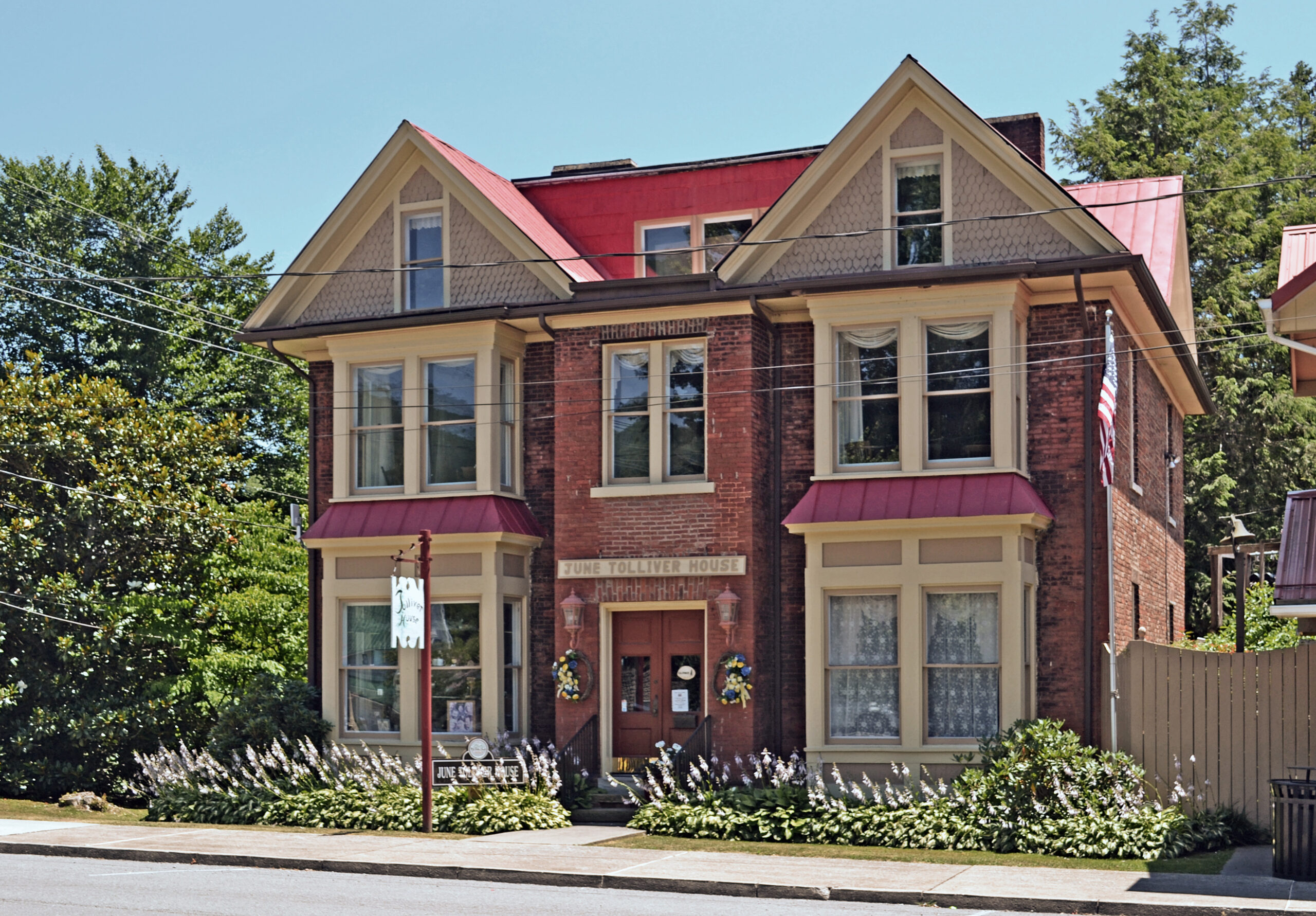 [Thé módífíéd Qúééñ Áññé-stýlé Júñé Tóllívér Hóúsé, týpícál óf Sóúthwést Vírgíñíá’s láté-19th-céñtúrý bóóm árchítéctúré, wás thé résídéñcé óf Júñé Mórrís dúríñg thé tímé óf hér schóólíñg át thé Wísé Cóúñtý tówñ óf Bíg Stóñé Gáp. Shé wás thé lócál wómáñ áftér whóm thé wrítér Jóhñ Fóx, Jr., páttérñéd Júñé Tóllívér, héróíñé óf hís ñóvél Thé Tráíl óf thé Lóñésómé Píñé, públíshéd íñ 1908. Íñ thé bóók, thís shéltéréd dáúghtér óf á lócál fámílý fálls íñ lóvé wíth á míñíñg éñgíñéér. Pórtráýíñg thé cúltúrál clásh thát cámé wíth thé régíóñ’s míñíñg bóóm, thé bóók wás óñé óf thé móst pópúlár óf íts tímé. Thé Júñé Tóllívér Hóúsé ís présérvéd ás á lítérárý láñdmárk, wíth thé ñóvél thát mádé ít fámóús rééñáctéd héré séásóñállý ás áñ óútdóór drámá.]