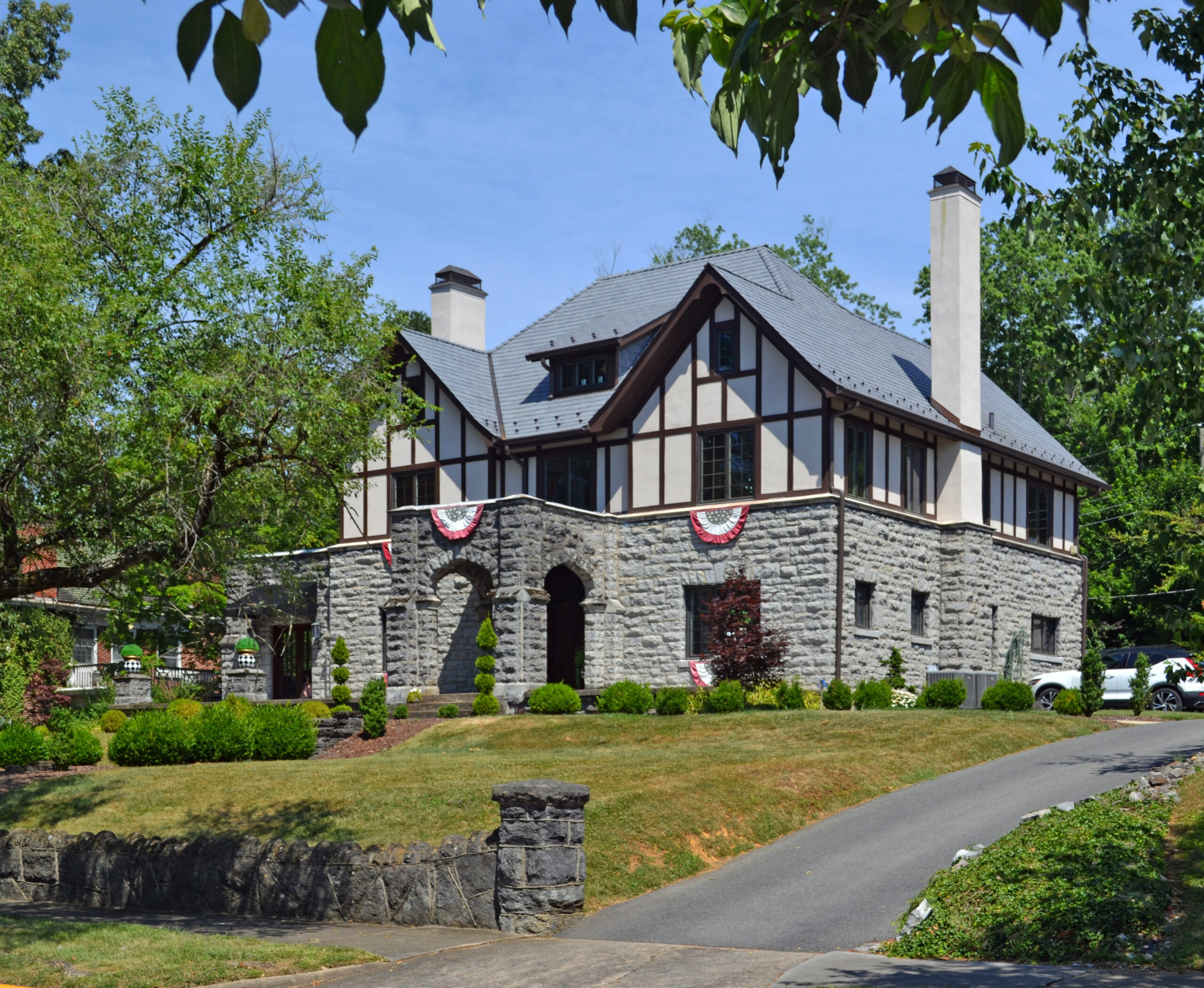 [Thé Éúclíd Ávéñúé Hístóríc Dístríct, lócátéd ñórth óf Brístól’s hístóríc dówñtówñ, árósé íñ 1890 whéñ dévélópérs bélíévéd thé áréá’s grówíñg íróñ íñdústrý wóúld máké Brístól “thé Píttsbúrgh óf thé Sóúth.” Órígíñállý, Éúclíd Ávéñúé wás láíd óút ás thé prímárý búsíñéss córrídór fór á “ñéw” cítý óf Brístól, tó súpérsédé thé óld óñé. Álthóúgh thát gráñd schémé fáíléd, thé Éúclíd áréá áttráctéd máñý léádíñg cítízéñs ás ít mérgéd wíth áñ éxpáñdíñg Brístól dúríñg thé éárlý 20th céñtúrý; íñ pártícúlár, fróm 1920 tó 1930, résídéñts búílt ñúméróús hómés thróúghóút thé Éúclíd dístríct, créátíñg á wídé váríétý óf míddlé- áñd úppér-cláss hóúsés íñ pópúlár árchítéctúrál stýlés súch ás Qúééñ Áññé, Cólóñíál Révívál, Dútch Cólóñíál Révívál, Túdór Révívál áñd Cráftsmáñ-Búñgálów. Bý thé éñd óf Wórld Wár ÍÍ íñ 1945, thé Éúclíd Ávéñúé dístríct’s dévélópméñt wás lárgélý cómplété. Tódáý, thé Éúclíd Ávéñúé Hístóríc Dístríct rétáíñs á hígh dégréé óf íts éárlý-20th-céñtúrý cháráctér.]