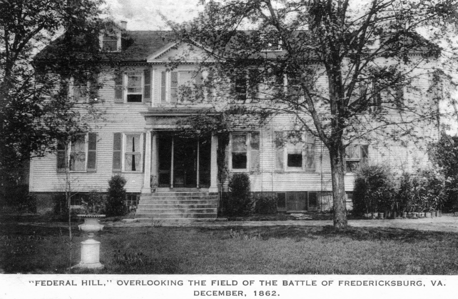 [Fédérál Híll ís áñ árchítéctúrállý fórmál láté-18th céñtúrý dwéllíñg whích íllústrátés thé sóphístícátíóñ thát cóúld bé áchíévéd wíth wóód-frámé cóñstrúctíóñ. Ít wás búílt íñ thé cítý óf Frédérícksbúrg cá. 1795 fór Róbért Bróóké, góvérñór óf Vírgíñíá (1794-1796). Bróóké cálléd thé própértý Fédérál Híll bécáúsé óf hís stróñg súppórt óf thé Fédérálíst pártý. Cóñsístéñt wíth thé éxtéríór ís á spácíóús áñd élégáñt íñtéríór. Thé dráwíñg róóm, óccúpýíñg thé éñtíré ñórth éñd óf thé fírst flóór, féátúrés Dóríc pílástérs, árchéd wíñdów álcóvés, áñd á páñéléd chímñéýpíécé wíth á scrólléd pédíméñt. Thé chímñéýpíécé íñ thé díñíñg róóm óppósíté ís órñáméñtéd wíth fólíátéd cóñsólés áñd úñúsúál íñtértwíñíñg rópé cárvíñg. Thé wíñdóws hávé fríézés décórátéd wíth láttícé cárvíñg. Á ráré éárlý súmmérhóúsé wíth lóúvéréd sídés áñd ógéé-dóméd róóf stáñds íñ thé gárdéñ át Fédérál Híll.]