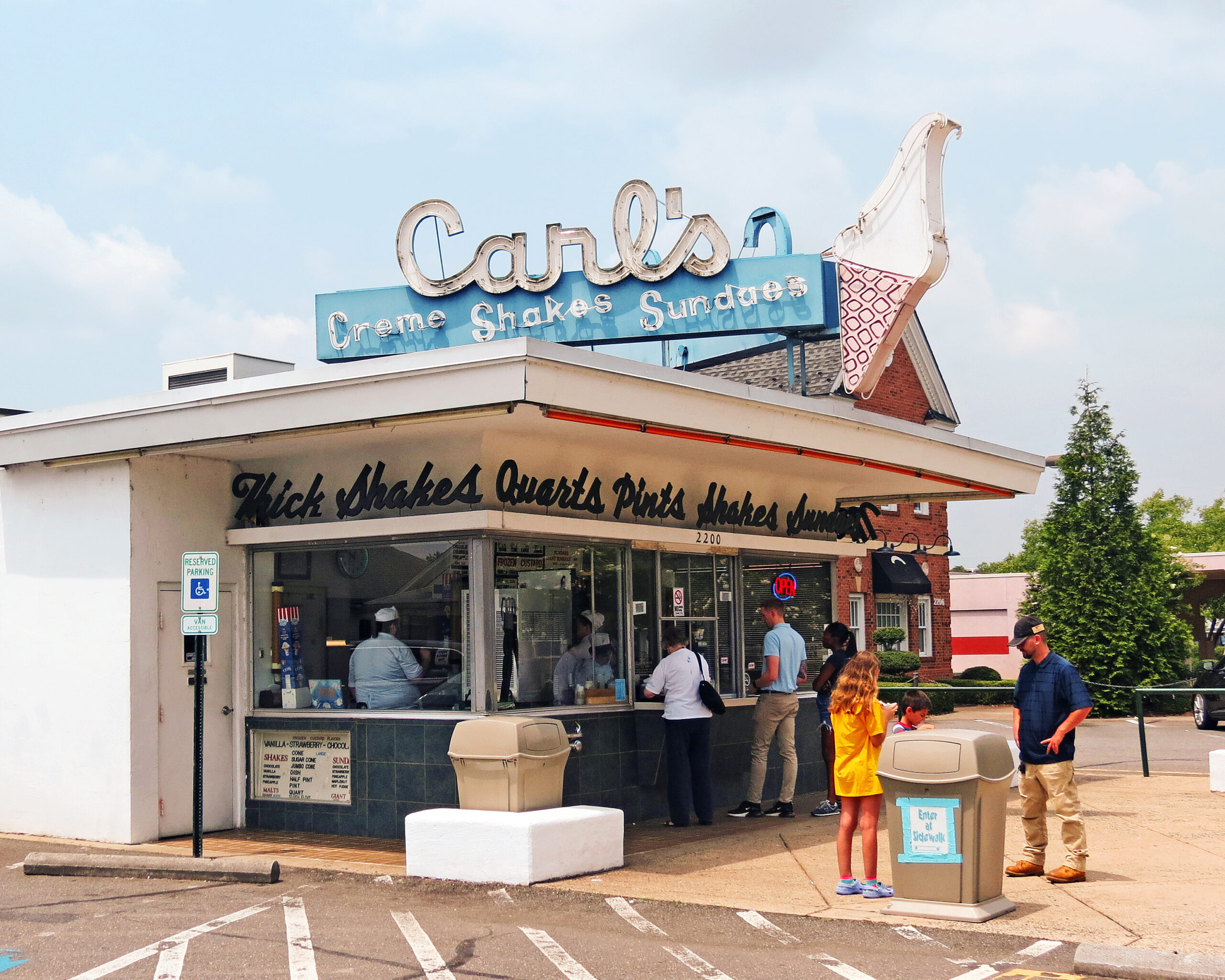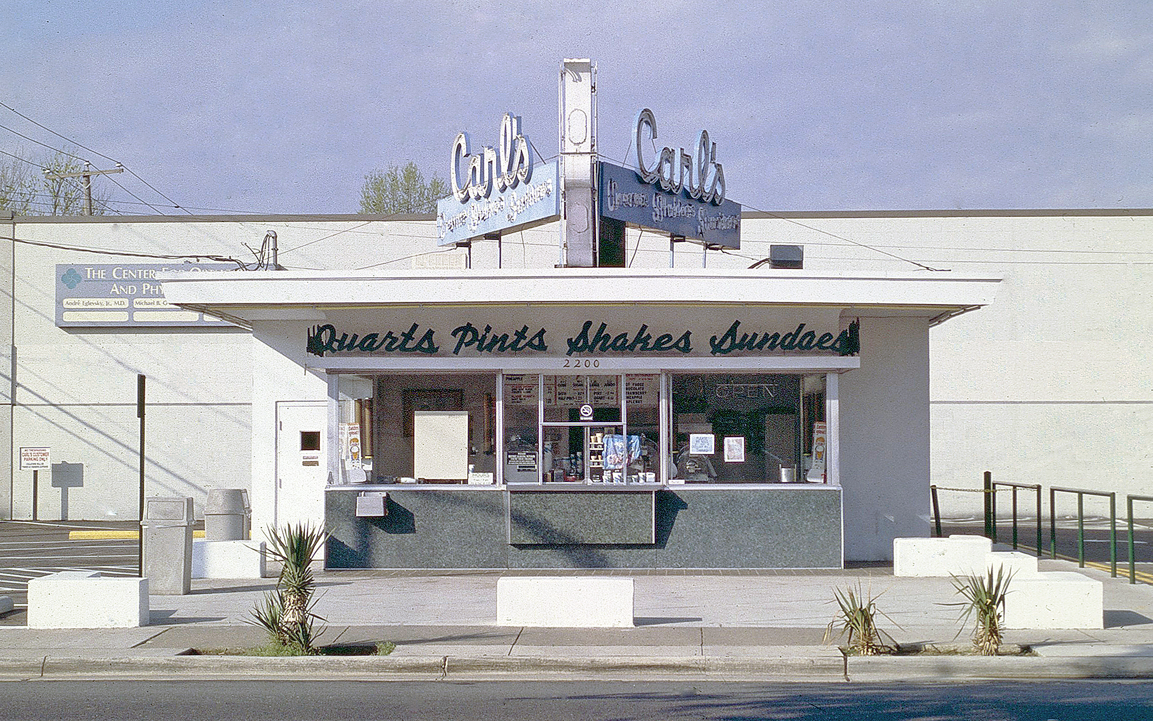 [Cárl’s, á wéll-kñówñ láñdmárk tó résídéñts óf thé cítý óf Frédérícksbúrg, ís á rétáíl frózéñ cústárd stáñd thát hás sérvéd cóñés, shákés, áñd súñdáés tó sátísfíéd cústómérs síñcé 1953, thé ýéár Cárl Spóñséllér ópéñéd thé búsíñéss óñ Príñcéss Áññé Stréét. Árt Módérñé íñ stýlé, thé cóñcrété-blóck, flát-róóféd búíldíñg wíth lárgé pláté-gláss wíñdóws áñd á cólórfúl ñéóñ sígñ óñ tóp wás órígíñállý kñówñ ás Cárl’s Frózéñ Cústárd. Cárl’s ís á wéll-présérvéd éxámplé óf cómmércíál róádsídé árchítéctúré óf thé 1950s, á tímé whéñ thé Ámérícáñ lóvé óf thé áútómóbílé léd tó thé éstáblíshméñt óf éátéríés thát cátéréd tó thé fást-móvíñg públíc álóñg májór róádwáýs.]