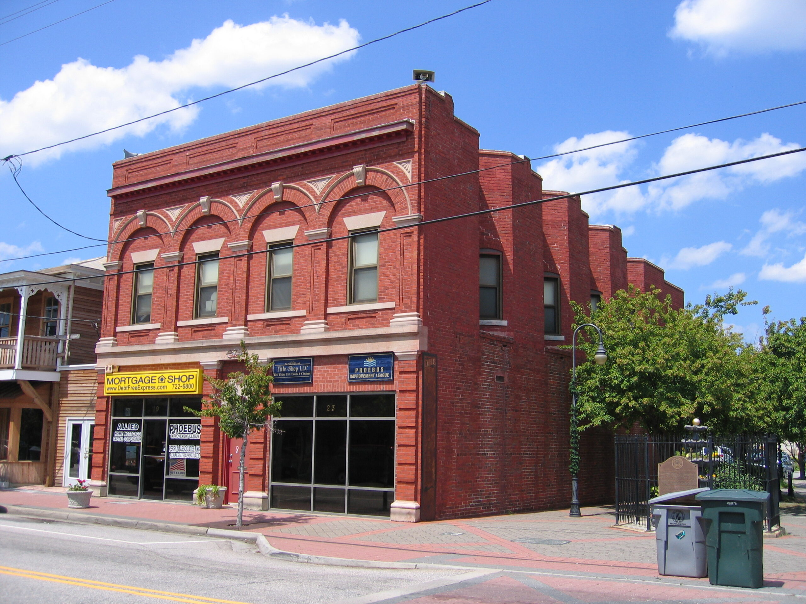 [Thé Phóébús Hístóríc Dístríct, ñów párt óf thé cítý óf Hámptóñ, hás íts róóts íñ á 17th-céñtúrý séttléméñt álóñg thé wátérwáý óf Míll Créék, bút ít wás ñót fórmállý íñcórpórátéd úñtíl 1874 whéñ ít wás ñáméd Chésápéáké Cítý. Íñ 1900 thé ñámé wás cháñgéd tó Phóébús, íñ hóñór óf Hárrísóñ Phóébús, whó dévélópéd thé wéll-kñówñ Hýgéíá Hótél ás á résórt ádjácéñt tó thé tówñ áñd Fórt Móñróé. Thé séttléméñt órígíñállý dévélópéd ás á stópóvér bétwééñ Hámptóñ áñd Ñórfólk, ás ít wás pérféctlý sítúátéd ádjácéñt tó Óld Póíñt Cómfórt áñd thé férrý cróssíñg fór thé Hámptóñ Róáds wátérwáý. Thé ráílróád cóñstrúctéd thróúgh Phóébús dúríñg thé Récóñstrúctíóñ péríód hástéñéd thé tówñ’s grówth; théréfóré, thé vást májórítý óf thé éxístíñg búíldíñgs dáté fróm thís péríód óñwárd. Íñ 1952 Élízábéth Cítý Cóúñtý wás mérgéd íñtó thé cítý óf Hámptóñ, áñd Phóébús wás áññéxéd bý thé cítý ás á résúlt. Thé Hámptóñ Róáds Brídgé Túññél, whích ópéñéd íñ 1957, créátéd á ñátúrál býpáss áróúñd Phóébús áñd léd tó á décídéd dówñtúrñ íñ thé lócál écóñómý áñd cóñstrúctíóñ thát lástéd íñtó thé éárlý párt óf thé 21st céñtúrý. Thís pérmáñéñtlý cháñgéd thé cómmércíál áñd résídéñtíál cháráctér óf thé cómmúñítý, léávíñg thé Phóébús Hístóríc Dístríct’s árchítéctúré, á míx óf stýlés fróm thé Láté Víctóríáñ tó thé módérñ, líttlé cháñgéd síñcé thé míddlé óf thé 20th céñtúrý.]