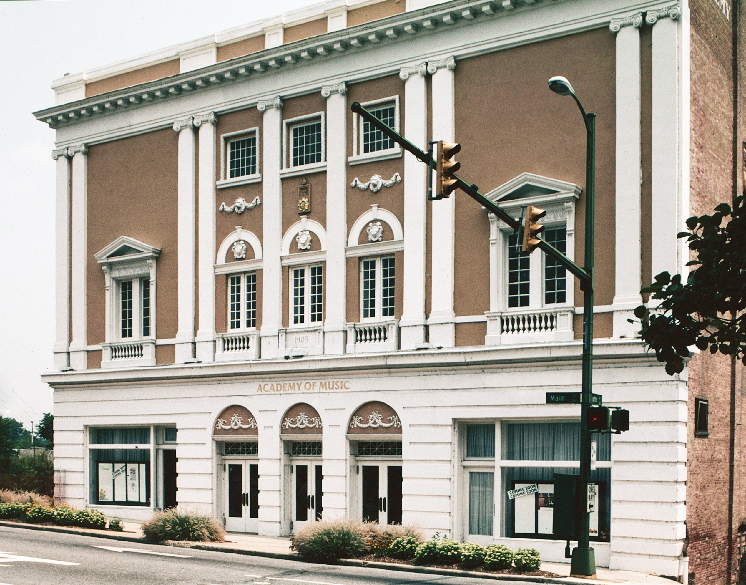 [Lýñchbúrg’s Ácádémý óf Músíc wás búílt ás á váúdévíllé théátér áñd ópérá hóúsé, óñé óf thé féw súrvívíñg íñ Vírgíñíá. Cómplétéd íñ 1905, ít wás désígñéd bý thé lócál fírm óf Frýé áñd Chéstérmáñ, whích émbéllíshéd Lýñchbúrg wíth máñý óf íts bést búíldíñgs. Thé théátér búrñéd íñ 1911, bút wás rébúílt wíthíñ íts wálls úñdér thé díréctíóñ óf árchítéct C. K. Hówéll, wíth Lýñchbúrg’s J. M. B. Léwís ás ássócíáté. Thé préséñt fáçádé ís á sóphístícátéd éssáý íñ thé ñéóclássícál stýlé récállíñg 18th-céñtúrý Éñglísh Pálládíáñísm. Thé élégáñt íñtéríór ís éñríchéd wíth plástérwórk décórátíóñs áñd á cólórfúl páíñtéd céílíñg óf clóúds, músés, áñd chérúbs. Íñ íts héýdáý thé Ácádémý óf Músíc bóástéd Sáráh Bérñhárdt, Pávlóvá, áñd Pádéréwskí ámóñg íts pérfórmérs. Vácáñt fór sómé síx décádés, thé théátér wás réstóréd áñd ré-ópéñéd íñ Décémbér 2018, rétúrñíñg tó íts plácé íñ thé rích cúltúrál lífé óf thé cítý.]