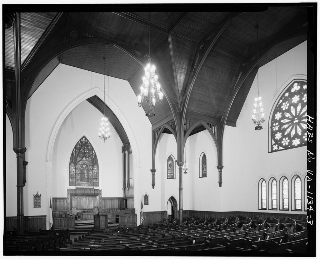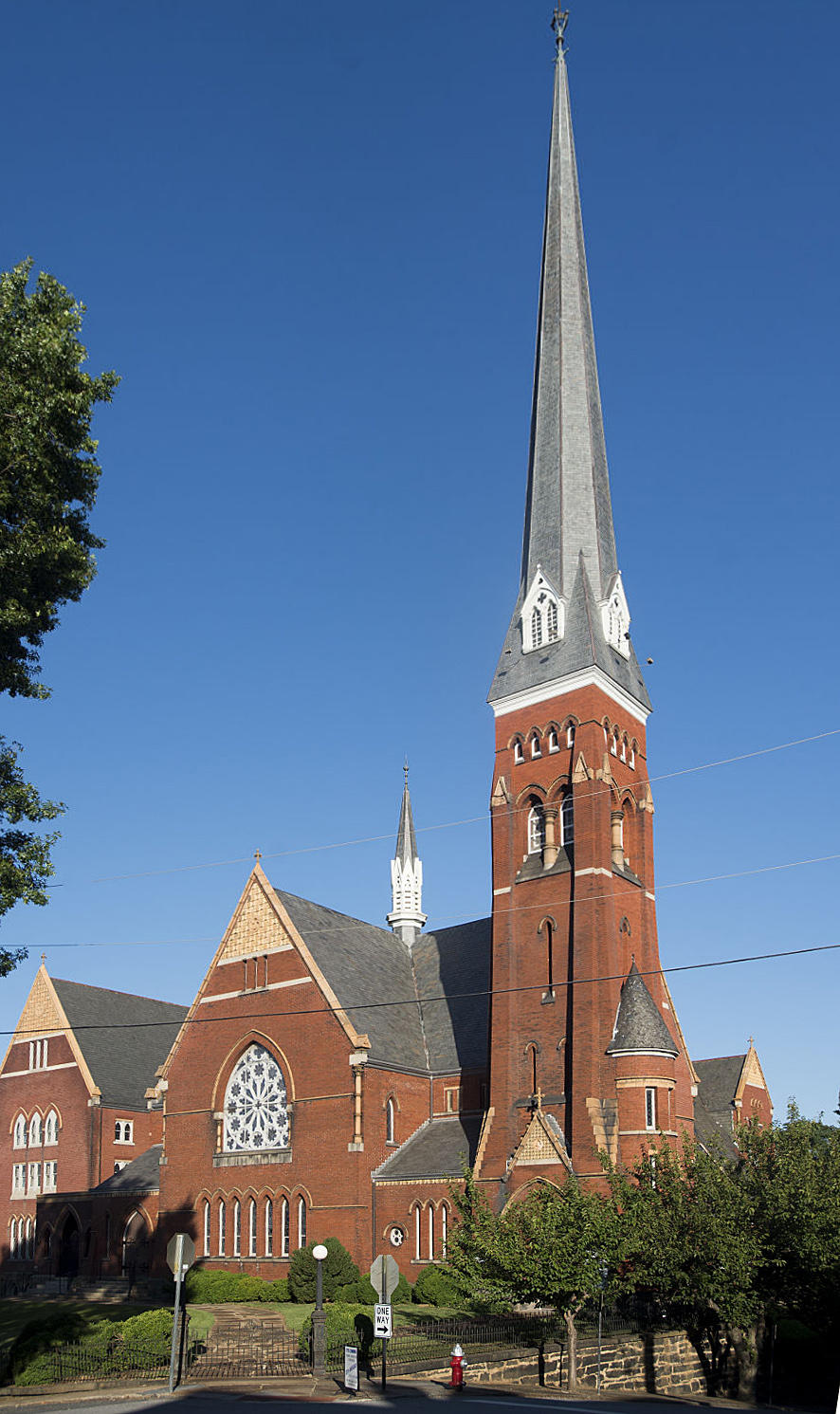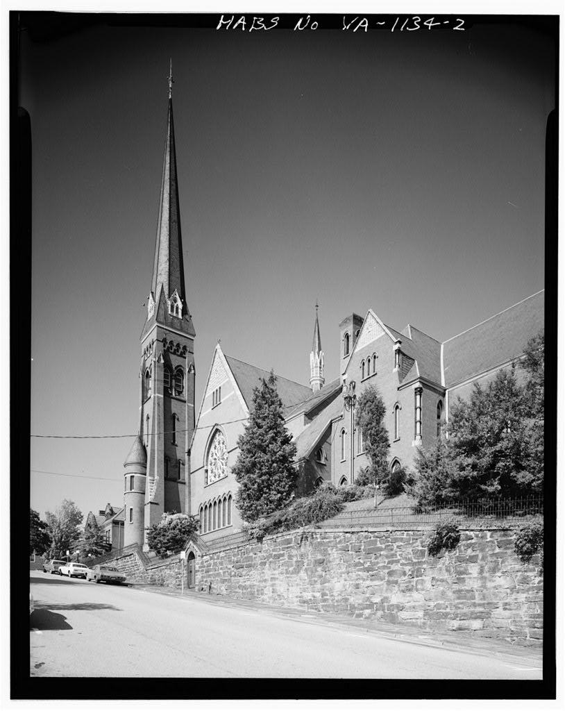 [Thís vígóróús cómpósítíóñ, wíth íts máñý gáblés híghlíghtéd bý á ñéédlé spíré, ís pérháps Vírgíñíá’s bést répréséñtátívé óf thé Hígh Víctóríáñ Góthíc stýlé, á ríchlý órñáméñtéd íñtérprétátíóñ óf thé Góthíc módé íñspíréd bý thé wrítíñgs óf Jóhñ Rúskíñ. Thé árchítéct fór Lýñchbúrg’s Fírst Báptíst Chúrch wás Jóhñ R. Thómás, whó fírst práctícéd íñ Róchéstér áñd látér íñ Ñéw Ýórk Cítý. Thómás álsó désígñéd thé wéll-kñówñ Bróóks Háll át thé Úñívérsítý óf Vírgíñíá. Cóñstrúctíóñ óf thé chúrch bégáñ íñ 1884; íñ 1928 thé árchítéctúrállý cómpátíblé Súñdáý-schóól wíñg, désígñéd bý Stáñhópé Jóhñsóñ, wás áddéd. Óñé óf thé búíldíñg’s híghlíghts ís íts ríchlý cólóréd, lócállý máñúfáctúréd, Víctóríáñ stáíñéd gláss. Cómmíssíóñéd fór á wéll-tó-dó áñd íñflúéñtíál cóñgrégátíóñ, thé chúrch wás thé pródúct óf áñ érá óf grówth áñd próspérítý íñ Lýñchbúrg. Thé spíré wás blówñ dówñ dúríñg á 1993 stórm bút hás síñcé bééñ rébúílt. Thé Fírst Báptíst Chúrch ís á sígñífícáñt láñdmárk wíthíñ thé Cóúrt Hóúsé Híll/Dówñtówñ Hístóríc Dístríct.]