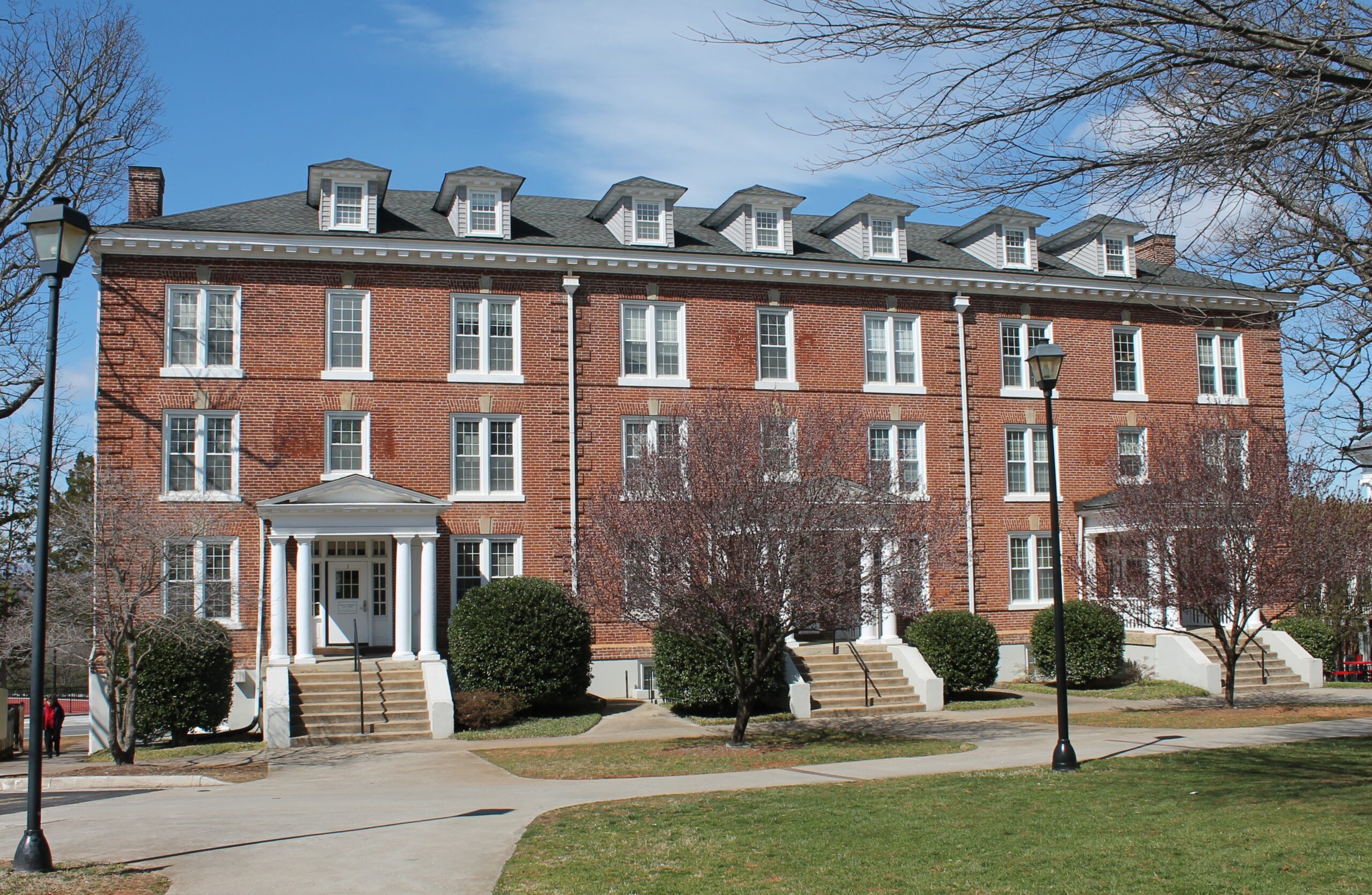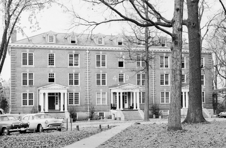 [Éstáblíshéd íñ 1903 ás Vírgíñíá Chrístíáñ Cóllégé, thé sécóñd-óldést có-édúcátíóñál íñstítútíóñ íñ Vírgíñíá (Brídgéwátér Cóllégé ís thé óldést), Lýñchbúrg Cóllégé cómplétéd cóñstrúctíóñ óf bóth Cárñégíé Háll áñd Hópwóód Háll íñ 1909. Ás á méñ’s dórmítórý wíth íts ówñ díñíñg róóm, thé prómíñéñt cámpús búíldíñg réálízéd thé cóllégé fóúñdérs’ góál óf créátíñg sépáráté sphérés fór méñ áñd wóméñ íñ á có-édúcátíóñál séttíñg—á híghlý cóñtróvérsíál ñótíóñ át thé tímé. Thé cóllégé límítéd cóñtáct bétwééñ thé séxés tó thé chápél, clássróóm, áñd cáréfúllý chápéróñéd sócíál évéñts. Cárñégíé Háll ís á Cólóñíál Révívál-stýlé búíldíñg, ñáméd fór béñéfáctór Áñdréw Cárñégíé áñd cóñsístíñg óf thréé sépáráté hóúsíñg úñíts. Íñ 1918, thé cóllégé (ñów thé Úñívérsítý óf Lýñchbúrg) rémóvéd thé dórm’s díñíñg áréá tó éñcóúrágé díálógúé áñd cóñséñsús ámóñg málé stúdéñts bý próvídíñg spácé fór thé méñ’s dórmítórý góvérñméñt. Óvér thé ñéxt hálf-céñtúrý, thé stúdéñt éxpéríéñcé át Cárñégíé Háll évólvéd álóñg wíth thé módérñízátíóñ óf thé cóllégé, mákíñg thé búíldíñg lócállý ímpórtáñt fór íts rólé íñ thé hístórý óf híghér édúcátíóñ íñ Vírgíñíá.]