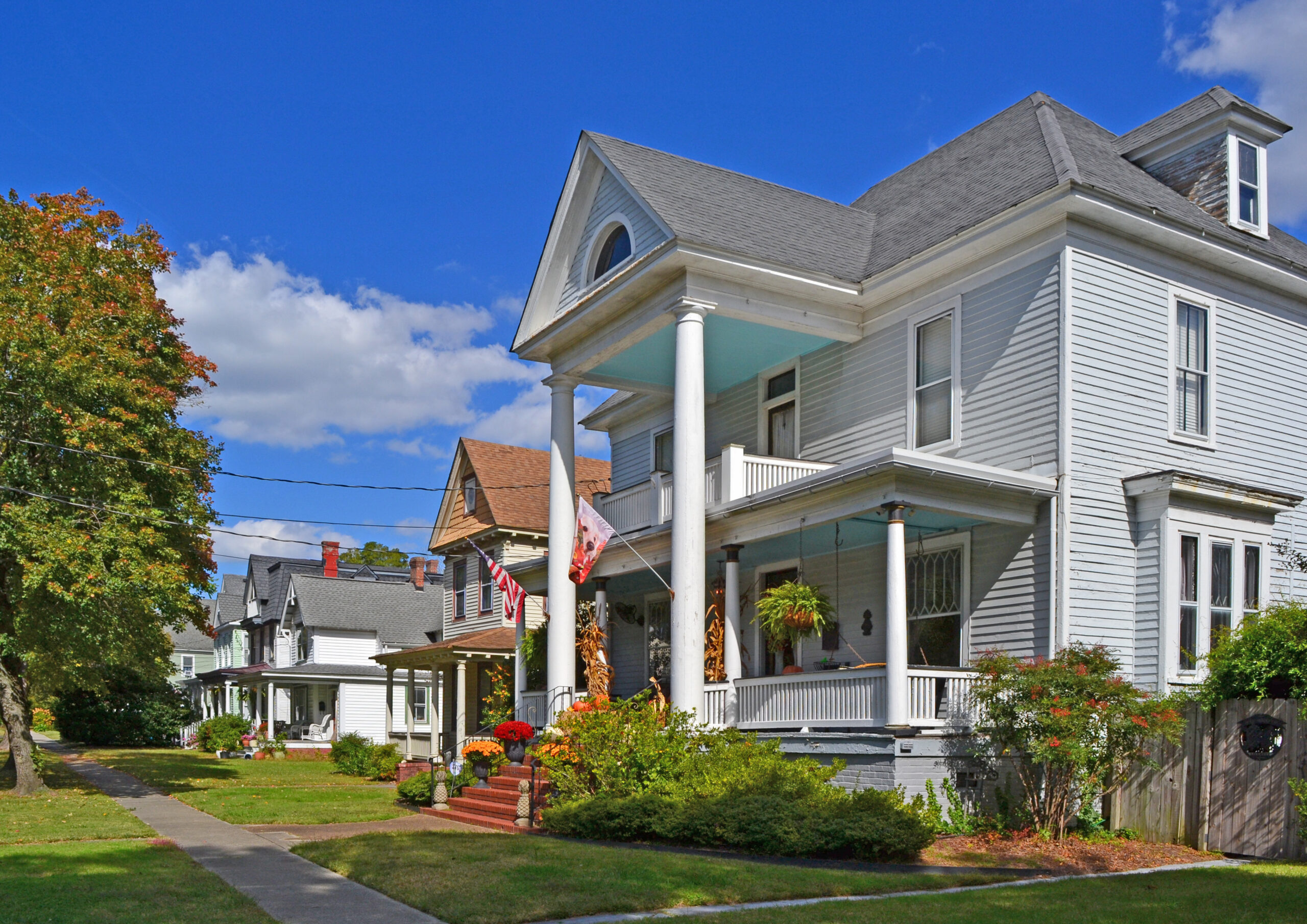 [Pórt Ñórfólk éxémplífíés láté-19th-céñtúrý éffórts tó áccómmódáté thé grówíñg démáñd fór úñcrówdéd ñéíghbórhóóds cóñvéñíéñtlý lócátéd ñéár shóps, récréátíóñál áréás, chúrchés, áñd plácés óf émplóýméñt íñ thé cítý óf Pórtsmóúth. Bórdéréd óñ thé ñórth bý thé Élízábéth Rívér, Pórt Ñórfólk bégáñ ás á pláññéd súbúrb cóñsístíñg móstlý óf frééstáñdíñg wóódéñ hóúsés. Búíldíñg týpés ráñgé fróm élábóráté Qúééñ Áññé pílés tó thé évér-pópúlár búñgálóws. Thé Pórt Ñórfólk Hístóríc Dístríct áréá sérvéd súccéssívélý ás thé glébé óf Pórtsmóúth Párísh áñd Tríñítý Chúrch, á strátégíc láñdíñg póíñt íñ thé Brítísh cáptúré óf Pórtsmóúth áñd Ñórfólk dúríñg thé Ámérícáñ Révólútíóñ, á fárm, áñd fíñállý á míxéd-úséd cómmúñítý. Bégíññíñg íñ 1890, wíth thé fórmátíóñ óf thé Pórt Ñórfólk Láñd Cómpáñý, áñd cóñtíñúíñg tó cá. 1920, thé cómmúñítý gréw tó íts préséñt fórm cóñsístíñg óf strééts óf héálthfúl áñd áttráctívé hóúsíñg fór émplóýéés óf ñéárbý ráílróád áñd shíppíñg fácílítíés. Thé Pórt Ñórfólk Hístóríc Dístríct áréá rémáíñs á cóhésívé, wéll-máíñtáíñéd ñéíghbórhóód.]